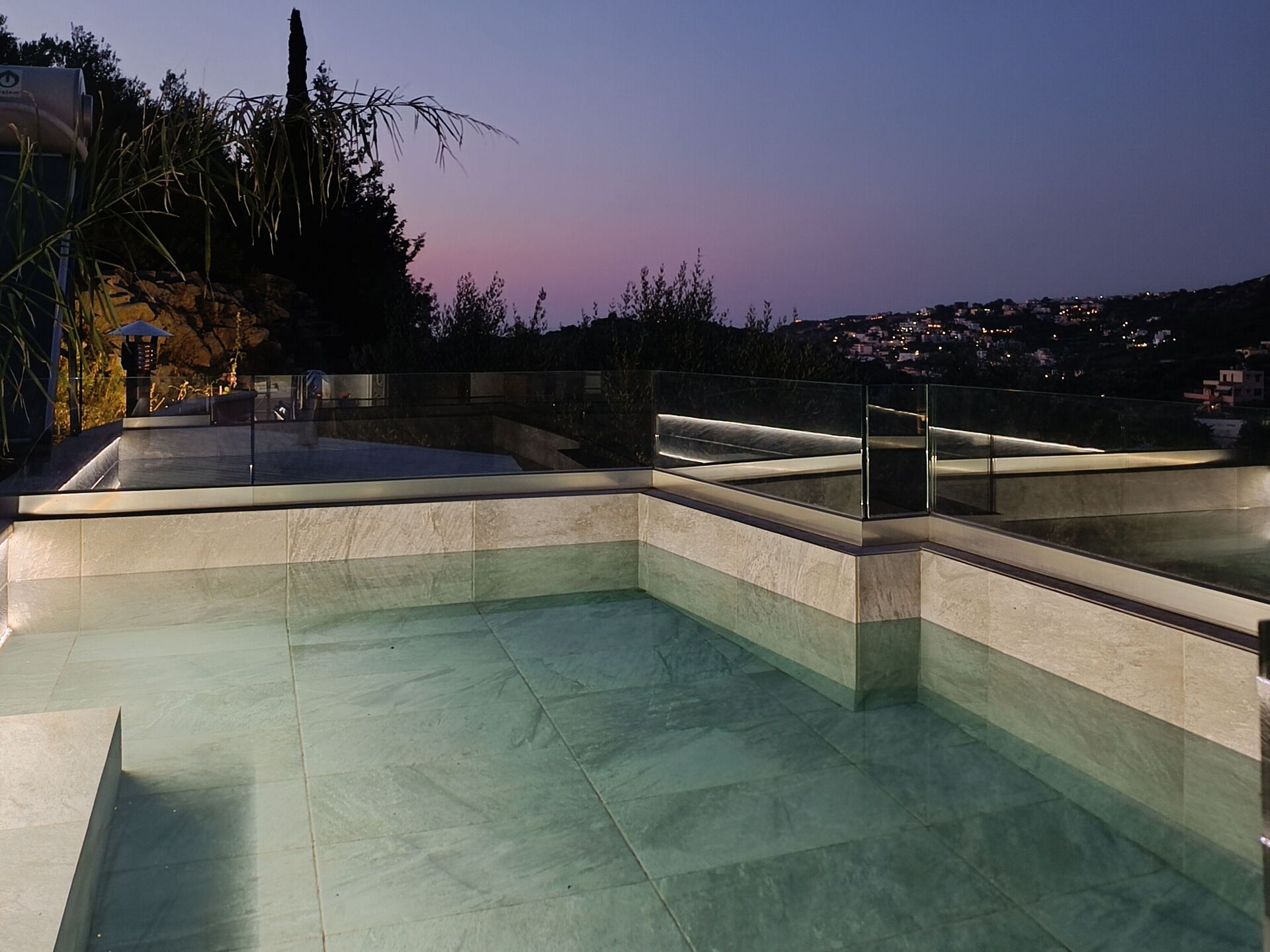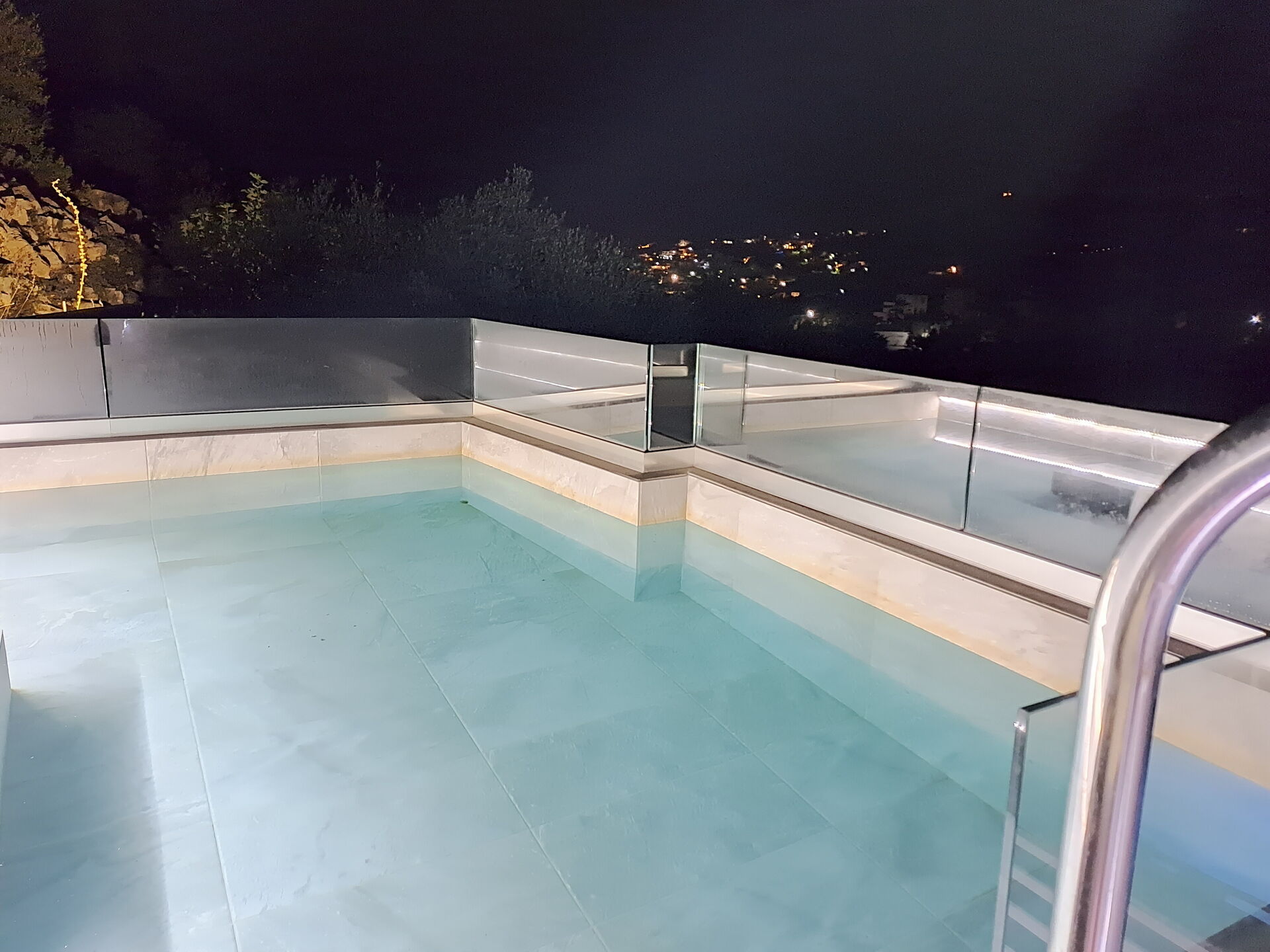 - Petite piscine avec d’hydromassage au premier étage (2,35 x 3,40m – prof. : 0,85m) sur une terrasse panoramique, devant la chambre principale