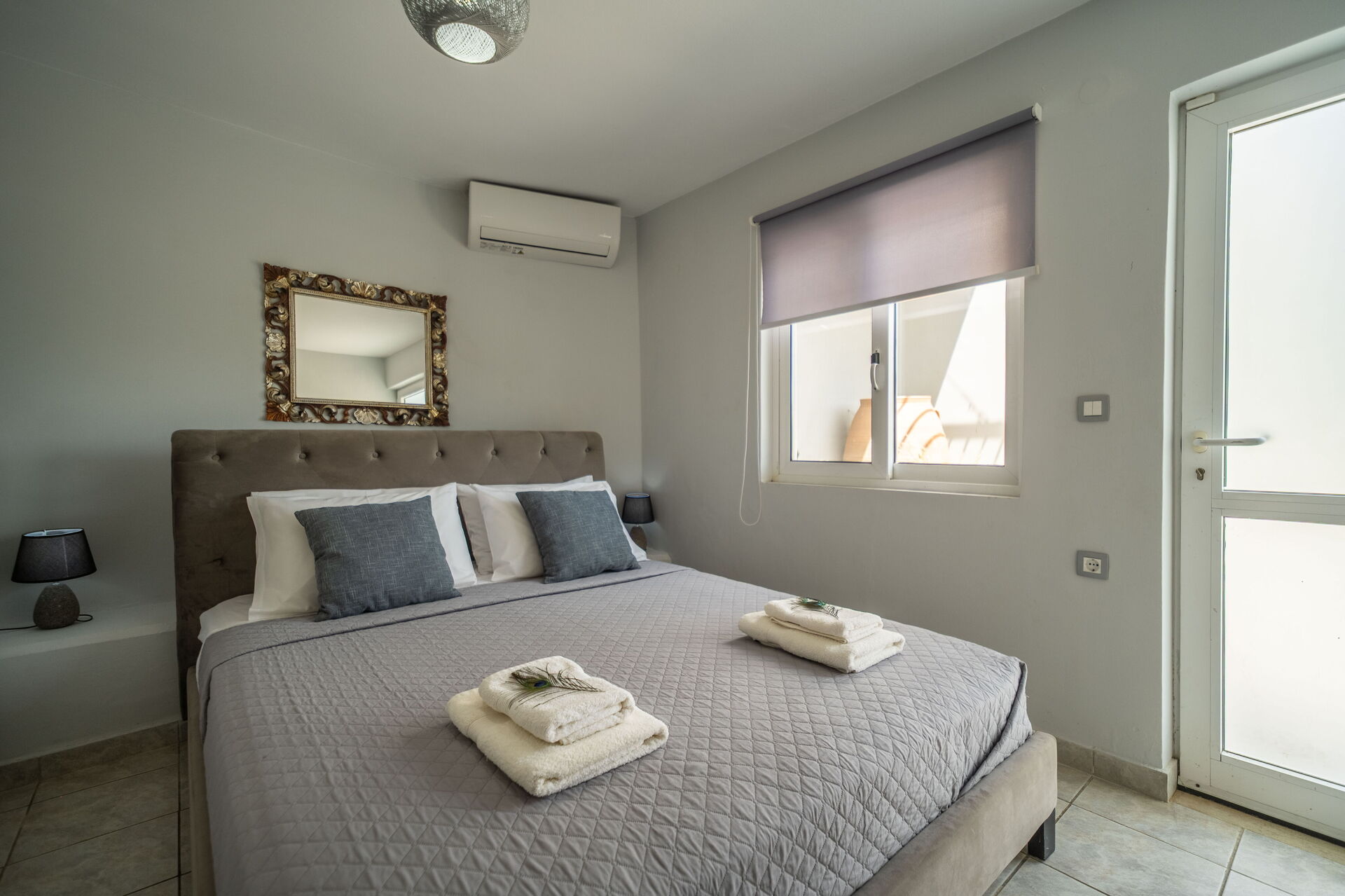 A peaceful paradise minutes from the sea! Everything about our vacation here was peaceful & relaxing, I would highly recommend both the villa & the hosts. Crete is a beautiful island & we’d love to come back!The house is set in spacious surroundings with hammocks, hanging chairs, plenty of seating options & comfortable sunloungers! Inside had luxury conveniences such as a washing machine, dishwasher, powerful showers & AC in the lounge area & all bedrooms. Also large TVs in all the rooms with Netflix & many other options. The decoration is a mix of modern inside & traditional outside with plenty of rustic features like old bicycles, radios or huge ceramic pots! There is a lovely BBQ area, play equipment & numerous places to soak up the sun. The Villa was very clean with hard floors throughout. There were towels for inside & others for the pool, plus the property was cleaned mid-way through our stay! The villa is about 4 minutes drive from Almyrida which is a small village but has plenty of essentials shops and a variety of restaurants. A hire car is essential as the house is a short distance up a short dirt track. Kalyves has a bigger supermarket around 10 minutes drive and then you have larger places about 30 minutes away such as Chania. The villa was as described, it has AC in the main lounge-kitchen and in all the bedrooms. In the villa was a welcome basket with wine and local luxuries! The fridge also had a selection of food and there were everyday essentials provided like toilet roll, hand soap and consumables. The kitchen was really well equipped with all the essentials and more! There was an oven, large fridge freezer, washing machine, dishwasher, utensils, even eggs provided from the owners chickens! The two swimming pools were both high quality & perfect size for water volleyball! There were plenty of sun loungers and places to sit, numerous options spread across the three outside floors of the villa. Excellent beds, with nice mattresses and good quality pillows and bedding. Excellent showers and sinks, nice decoration and clean. Nice touches like wash bins to collect your clothes up in.The decoration is a mix of modern inside & traditional outside with plenty of rustic features like old bicycles, radios or huge ceramic pots! There is a lovely BBQ area, play equipment & numerous patios and places to soak up the sun.Roxani & George own & host a beautiful villa set in the hills with great views. The hosts are excellent communicators available 24/7. They also gave good recommendations to keep us occupied throughout our stay!