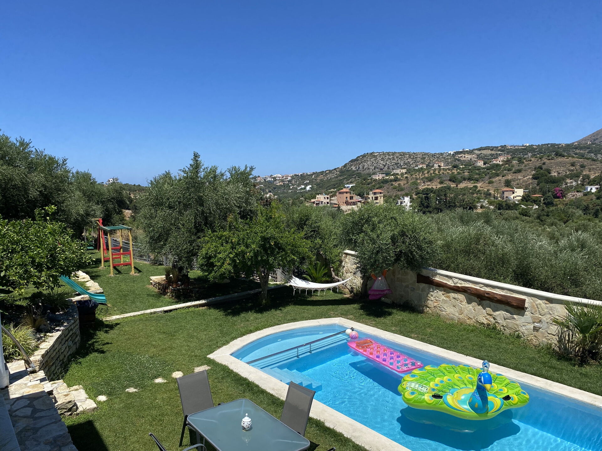 Wow, what a villa! The property was like our own slice of heaven on the wonderful island of Crete. The villa is only minutes away from the Almyrida beachfront by car, yet somehow seems secluded and private, allowing us to enjoy the best of both worlds. The owners, George and Roxanne, were simply the best hosts we have ever had. Always offering advice and tips for local attractions or the best tavernas, beaches, or supermarkets nearby. The little smallholding right next to the villa with hens, geese, rabbits, and even a beautiful peacock was a great bonus that gave the kids plenty of extra excitement, particularly each day as George would arrive and allow the kids to join him and help feed them, chase the hens, or occasionally provide us with the freshest eggs for breakfast.