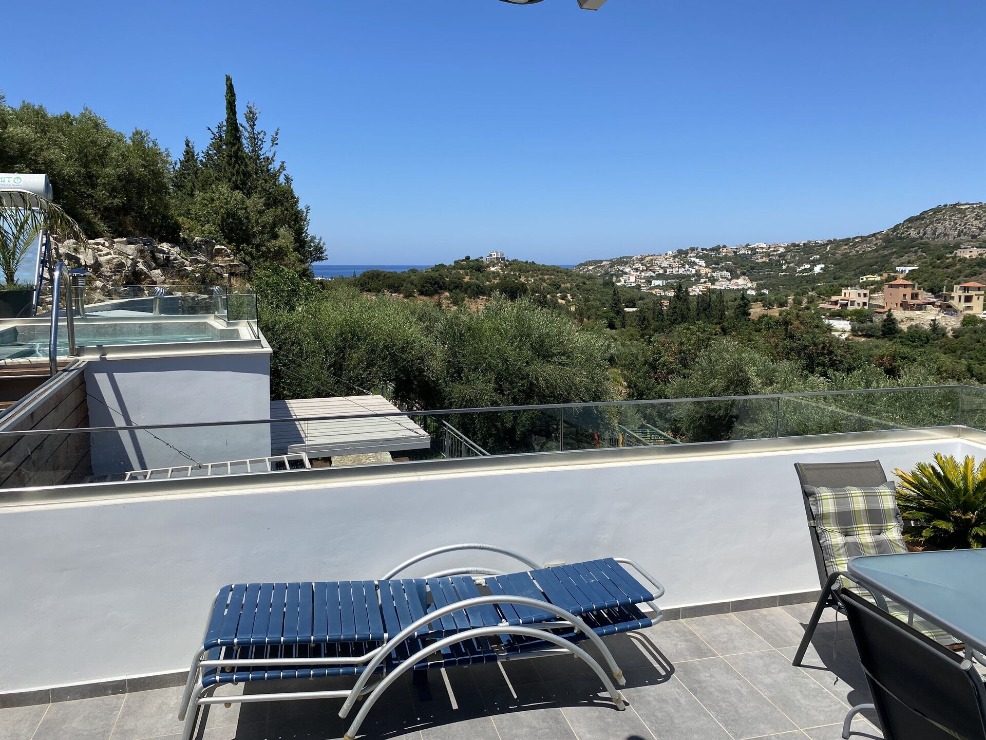 Highly recommended villa. Beautifully situated 20 mins walk from almyrida in total privacy surrounded by trees and wonderful gardens, we spent many happy days in the fantastic pool, and evenings enjoying the peace and quiet and the views across the countryside and to the sea in the distance. Loved walking to the bakery in almyrida each morning. Roxani and George were perfect hosts. Very helpful , we did not need to ask for help but the hosts went above our expectations providing wine, eggs, pastries and vegetables during our stay, and the villa was cleaned halfway through.We loved our holiday here and hope one day to be back!