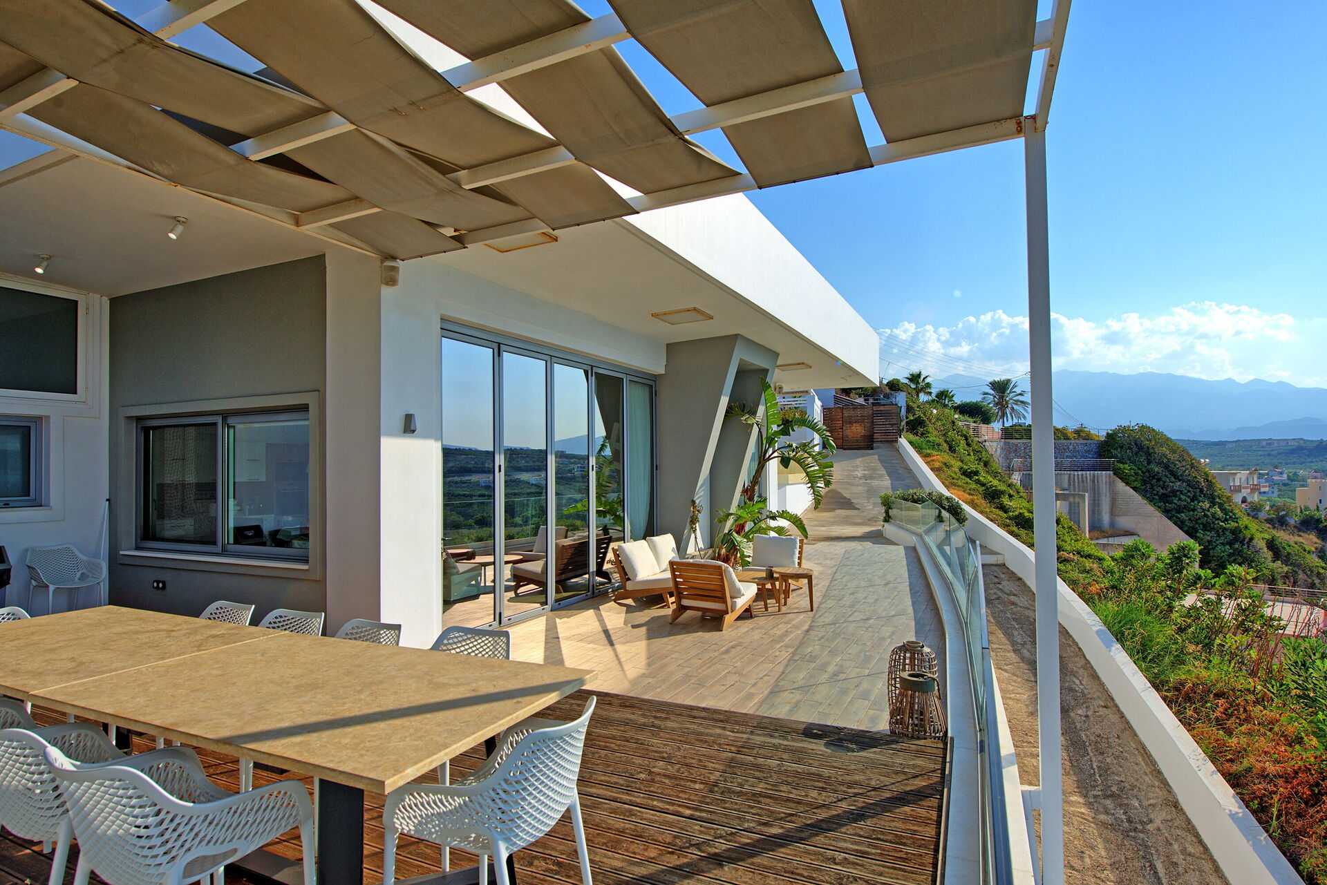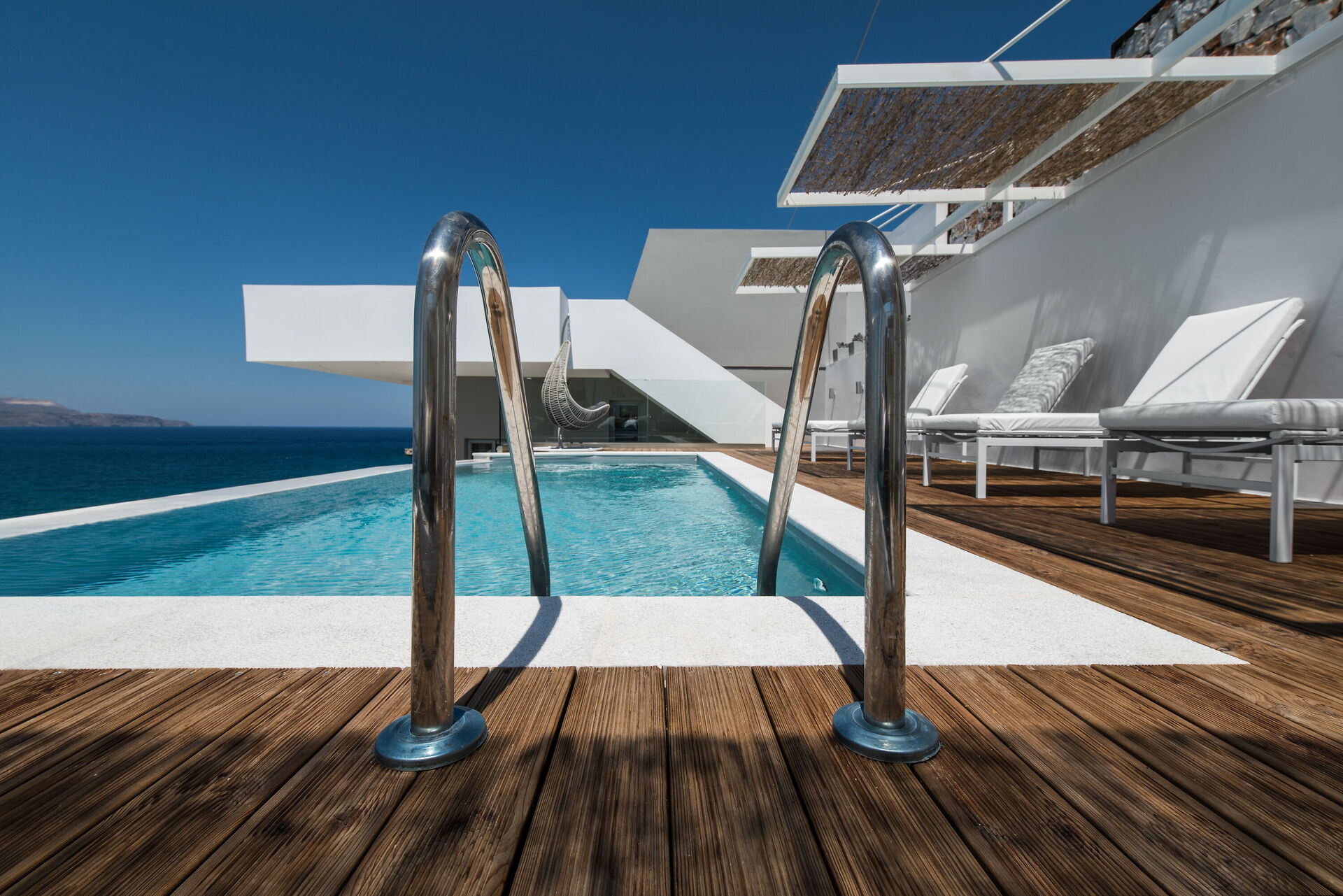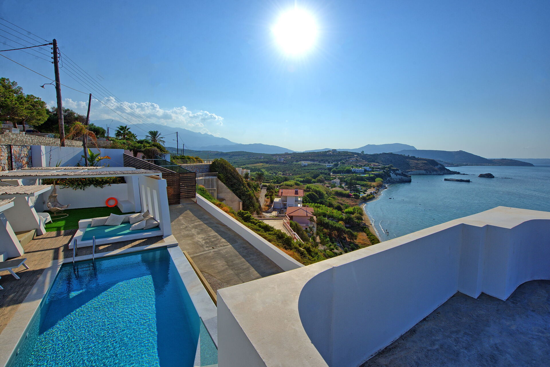 Villa Sapphire est une villa panoramique et élégante avec piscine privée et vue sur la mer à louer pour des vacances en Crète.