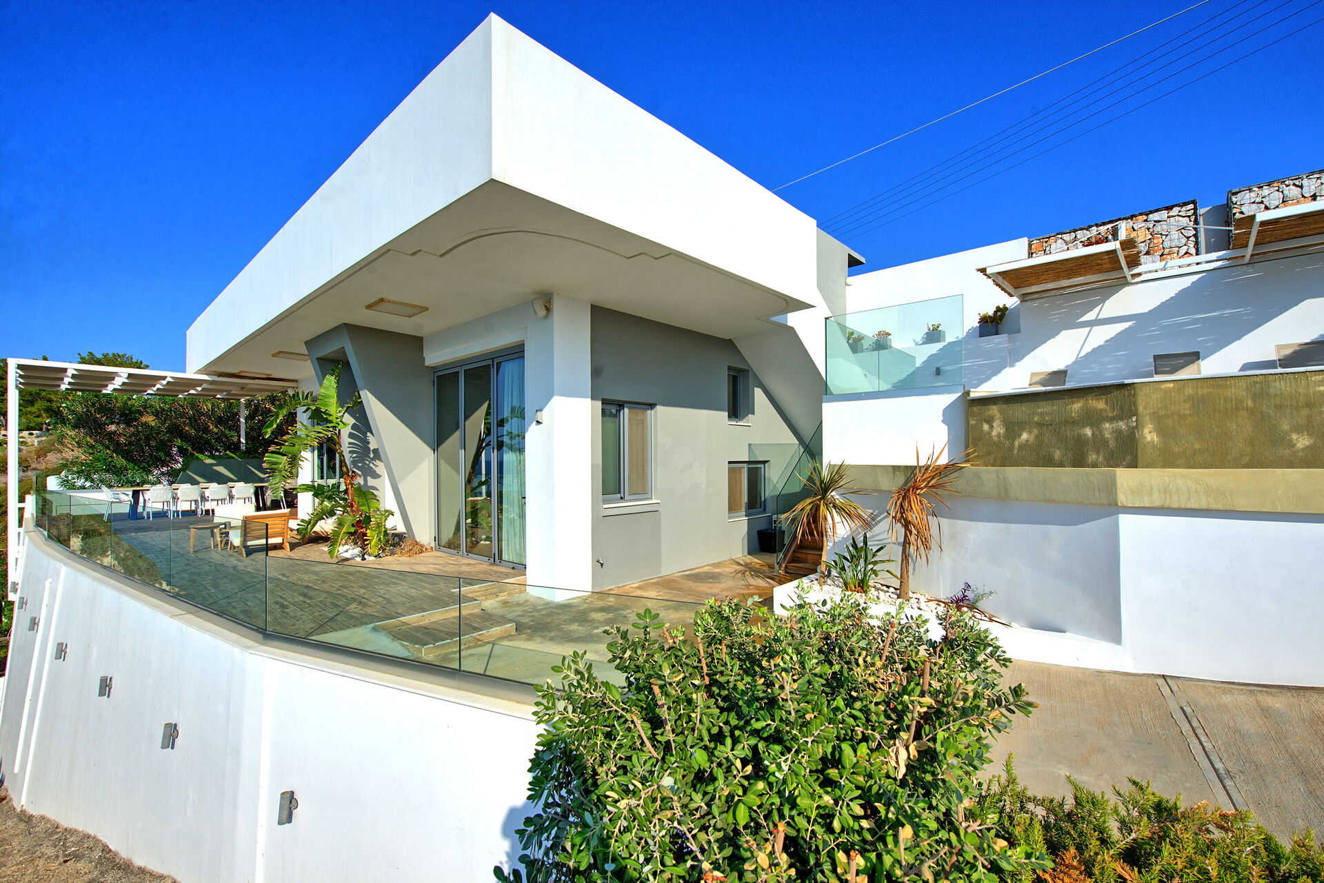 Veldig fint og moderne hus, med fantastisk utsikt. Vi kunne ikke vært mer fornøyd! gange til liten, sjarmerende strand. Nydelig vann, strand uten solsenger. 10-12 min. til sentrum med restauranter og tavernaer, og strender med solsenger. God og vennlig kontakt gjennom oppholdet.