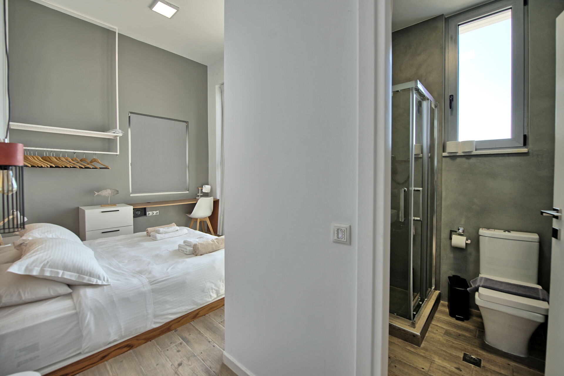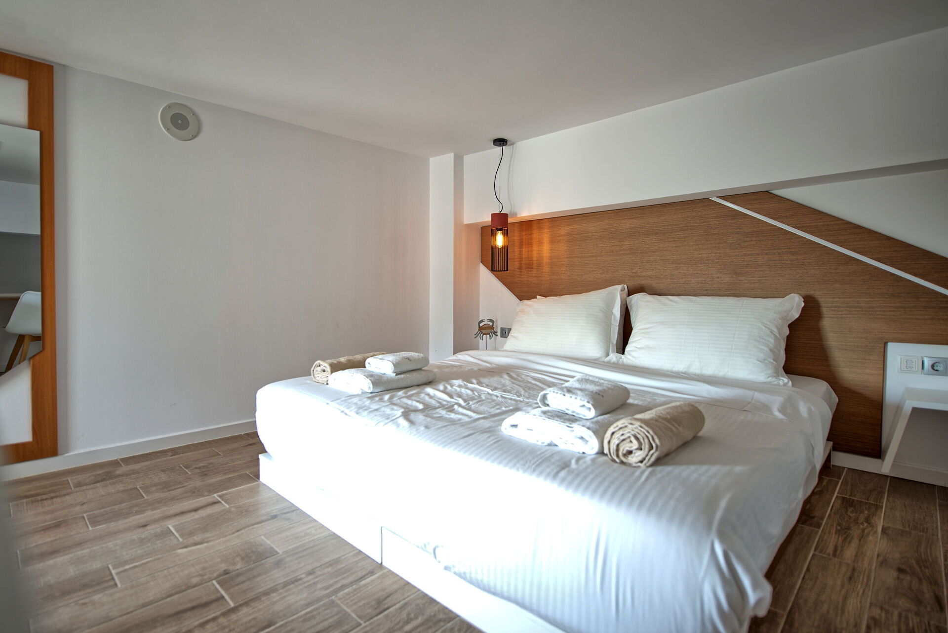 1 marche vers le bas: chambre double (transformable sur demande en 2 lits simples).