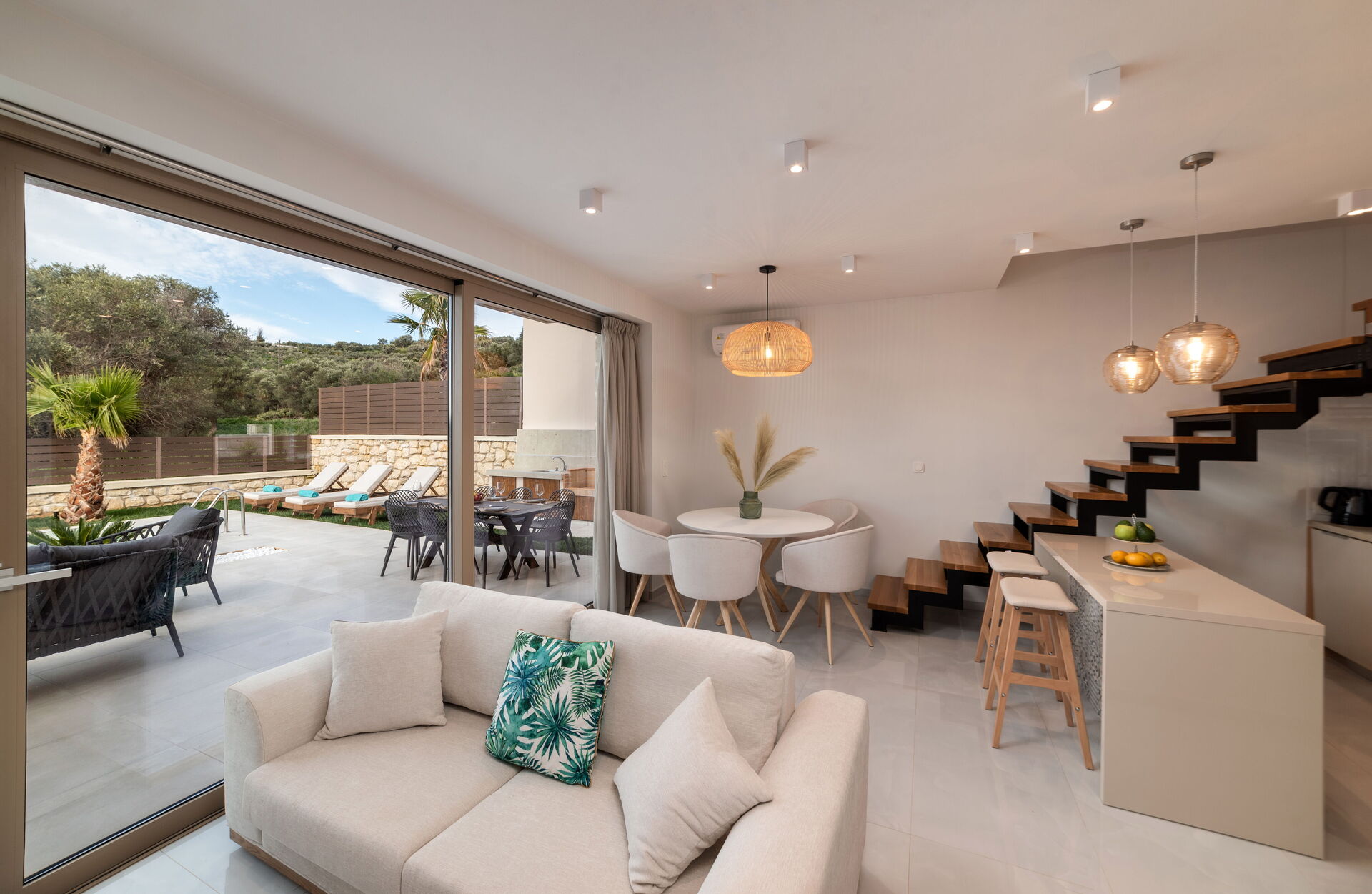 Villa Silentium Olia est une villa avec piscine privée à louer pour des vacances dans le petit village d’Argyroupoli sur l’île de Crète. Elle est située à seulement 8 km de la mer et bénéficie de la tranquillité de la campagne crétoise.