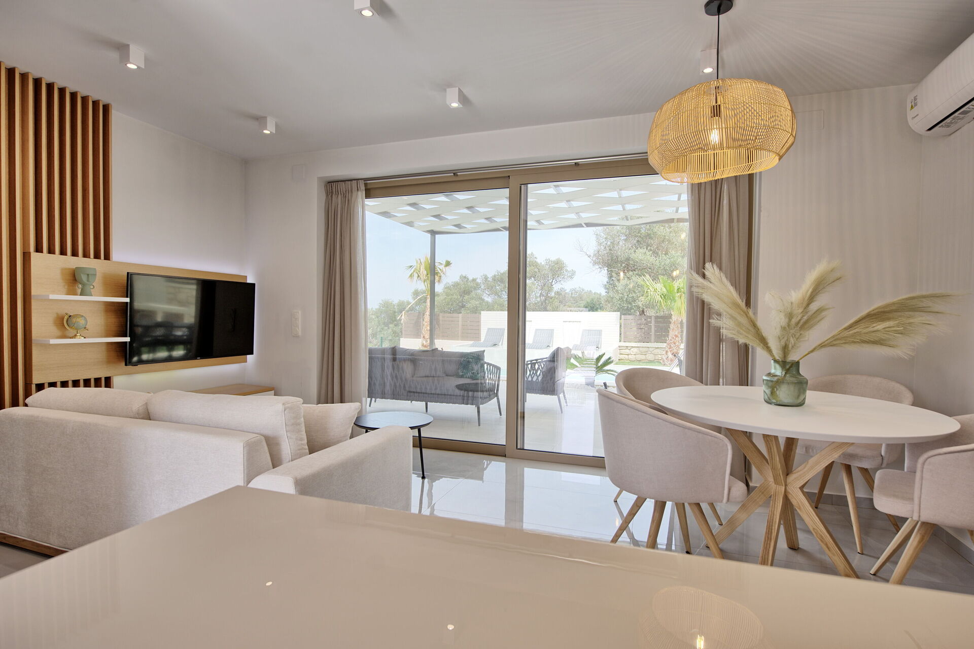 La villa vient tout juste d’être construite et est très accueillante: le mobilier est moderne et l’ensemble est lumineux et confortable. Aménagée sur deux étages, elle peut accueillir jusqu’à 7/8 personnes grâce à ses 3 chambres doubles et 1 chambre avec un lit superposé; Villa Silentium Olia est parfaite pour des vacances en famille ou entre amis.