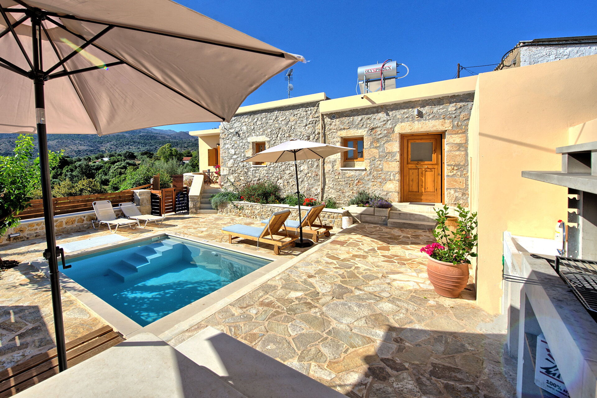 An amazing property in the hills of crete with stunning views. The owner was fantastic even when we locked ourselves out of the villa and helped us even though she was at her sisters wedding. Great English as well.