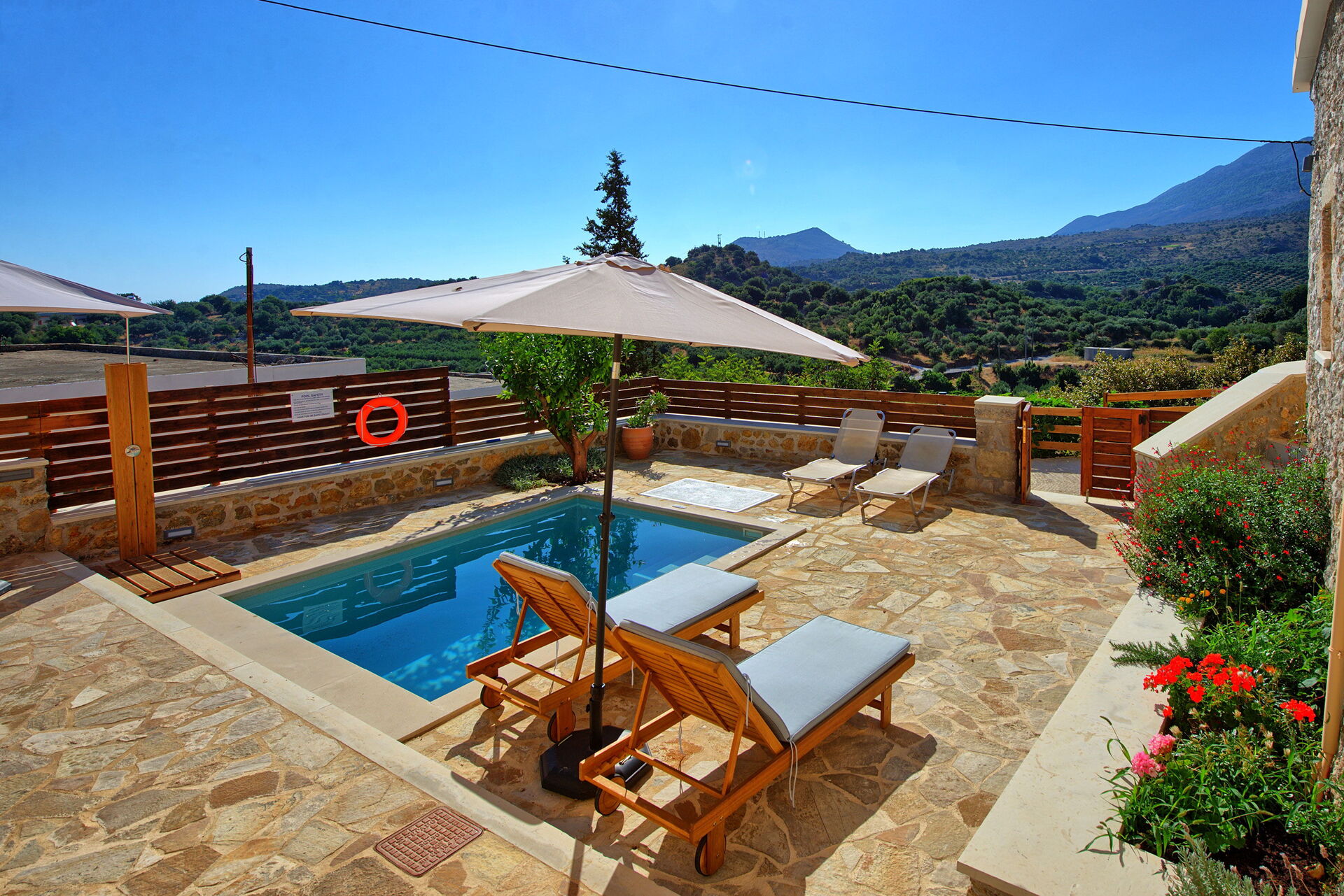 We had an amazing stay at this beautiful and peaceful place. The private pool was a fantastic feature, and the property was well-equipped with everything we needed. The view of the mountains is relaxing , and the village is nice with friendly people. The welcome kit was incredibly generous – we arrived late, but everything had been thoughtfully provided, from olive oil to bread, eggs, wine, pie, and more. We truly felt at home. we will definitely come back! Highly recommended!