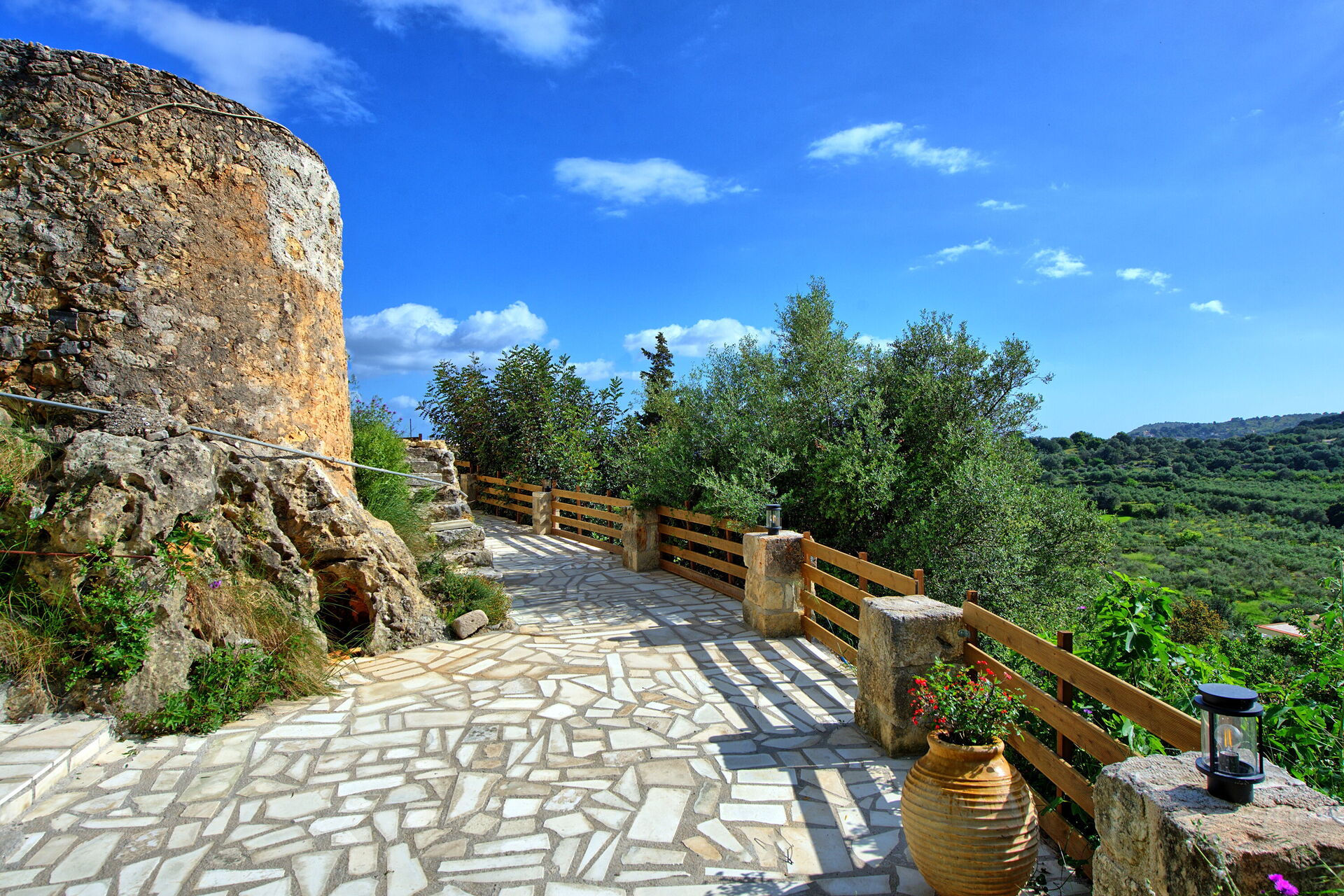 Distances: Embrosneros avec restaurant et épicerie à 900m ; Vrysses avec magasins variés à 6km ; Georgioupoulis avec plages à 12km ; Almyrida à 24km ; Xania à 40km ; aéroport à 48km.