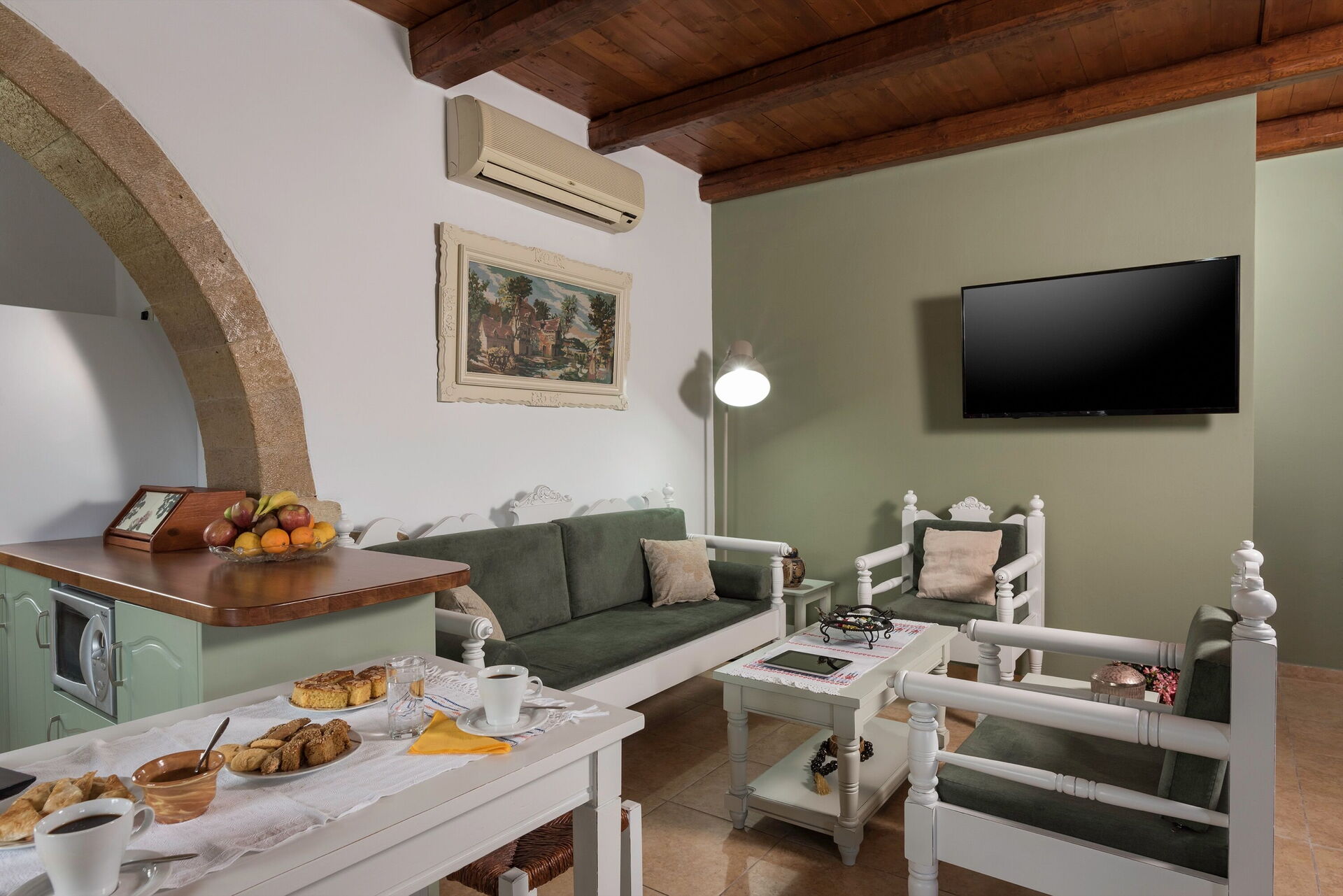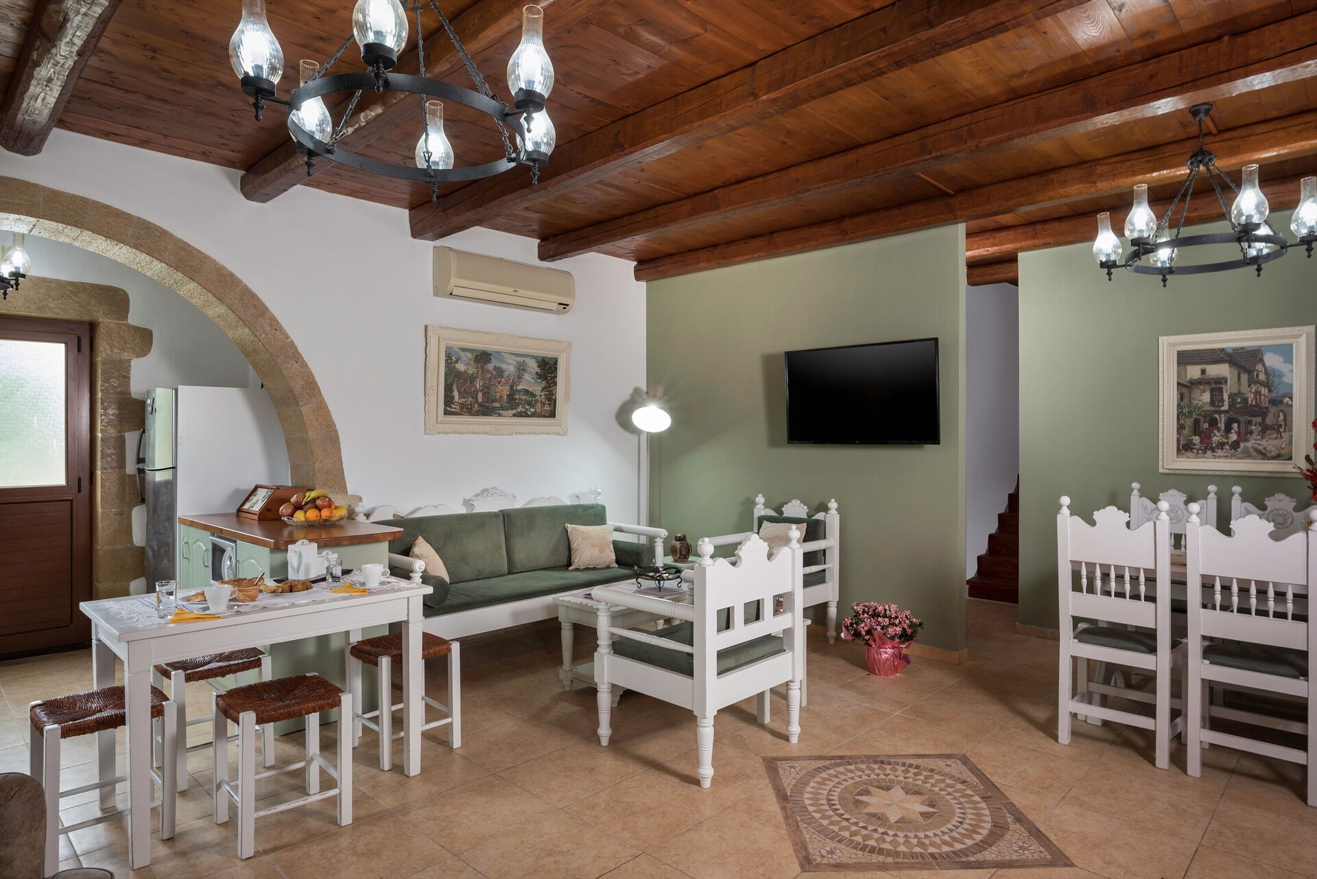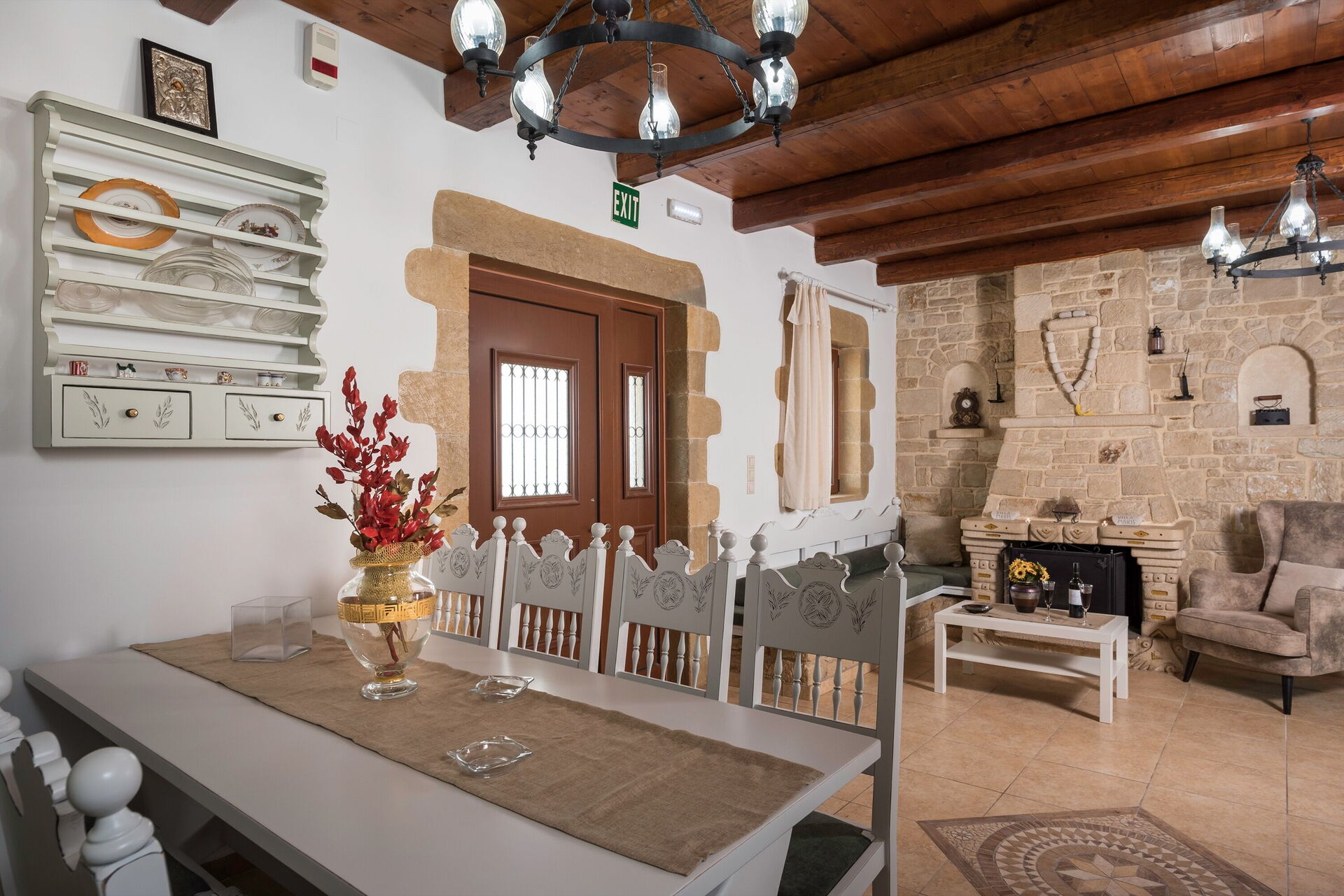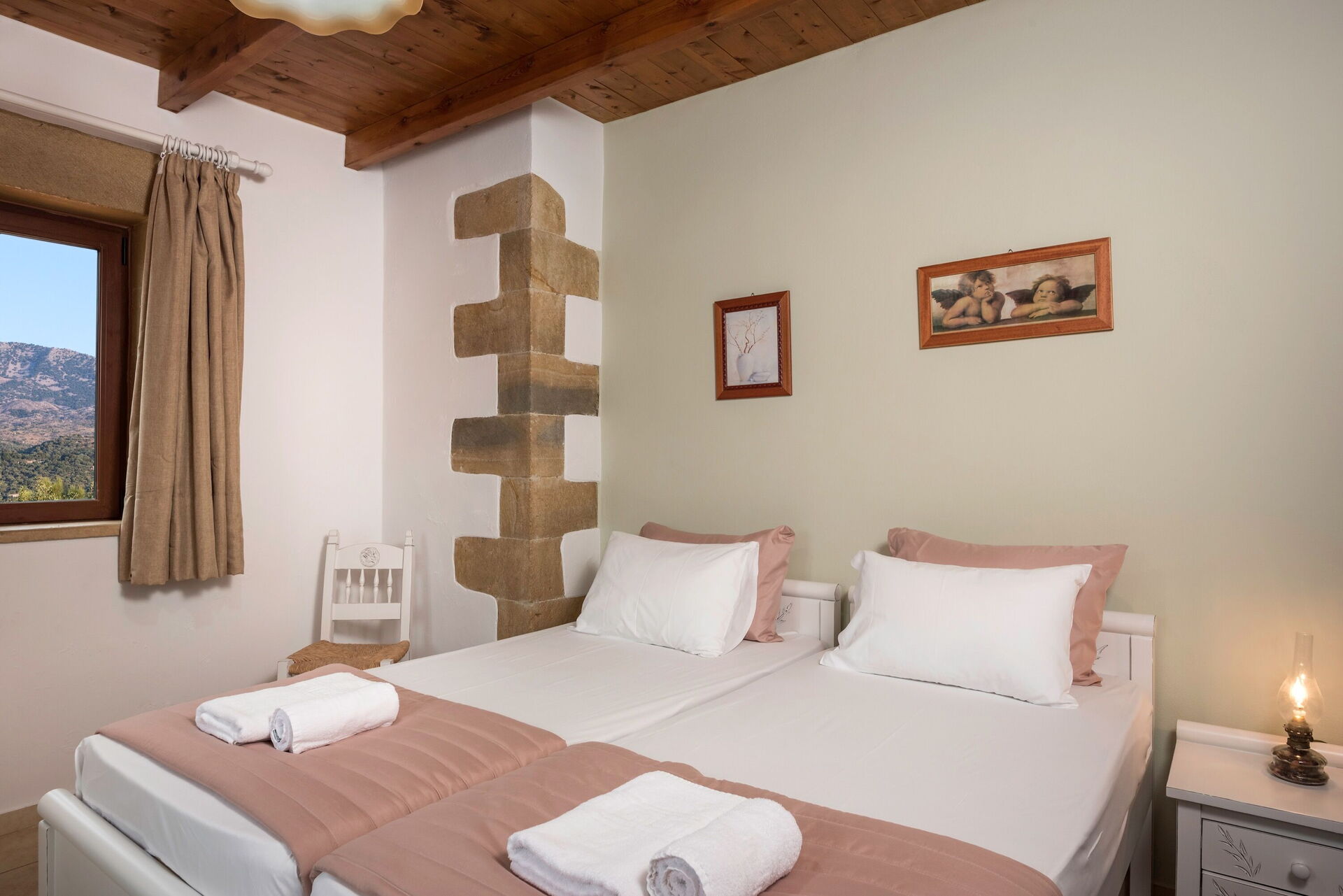Distances: Vrisses (magasins de toutes sortes) à 3 km, Georgioupoli (mer) à 8 km, Vamos à 10 km, Réthymnon à 39 km, La Canée à 35 km, aéroport à 47 km, Héraklion à 114 km, Agios Nikolaos à 173 km.