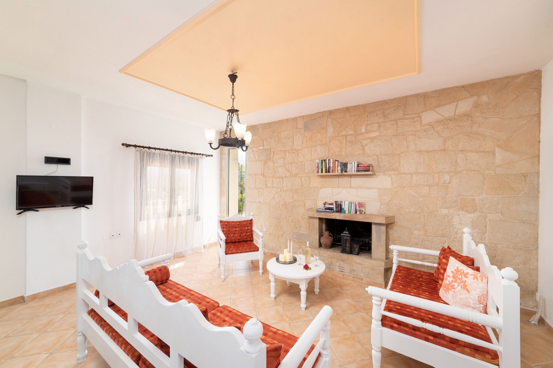 La villa est très confortable et idéale pour des vacances en famille ou entre amis. elle est composée de deux étages et les intérieurs sont climatisés et meublés avec goût en utilisant des pierres locales et des éléments traditionnels crétois.
