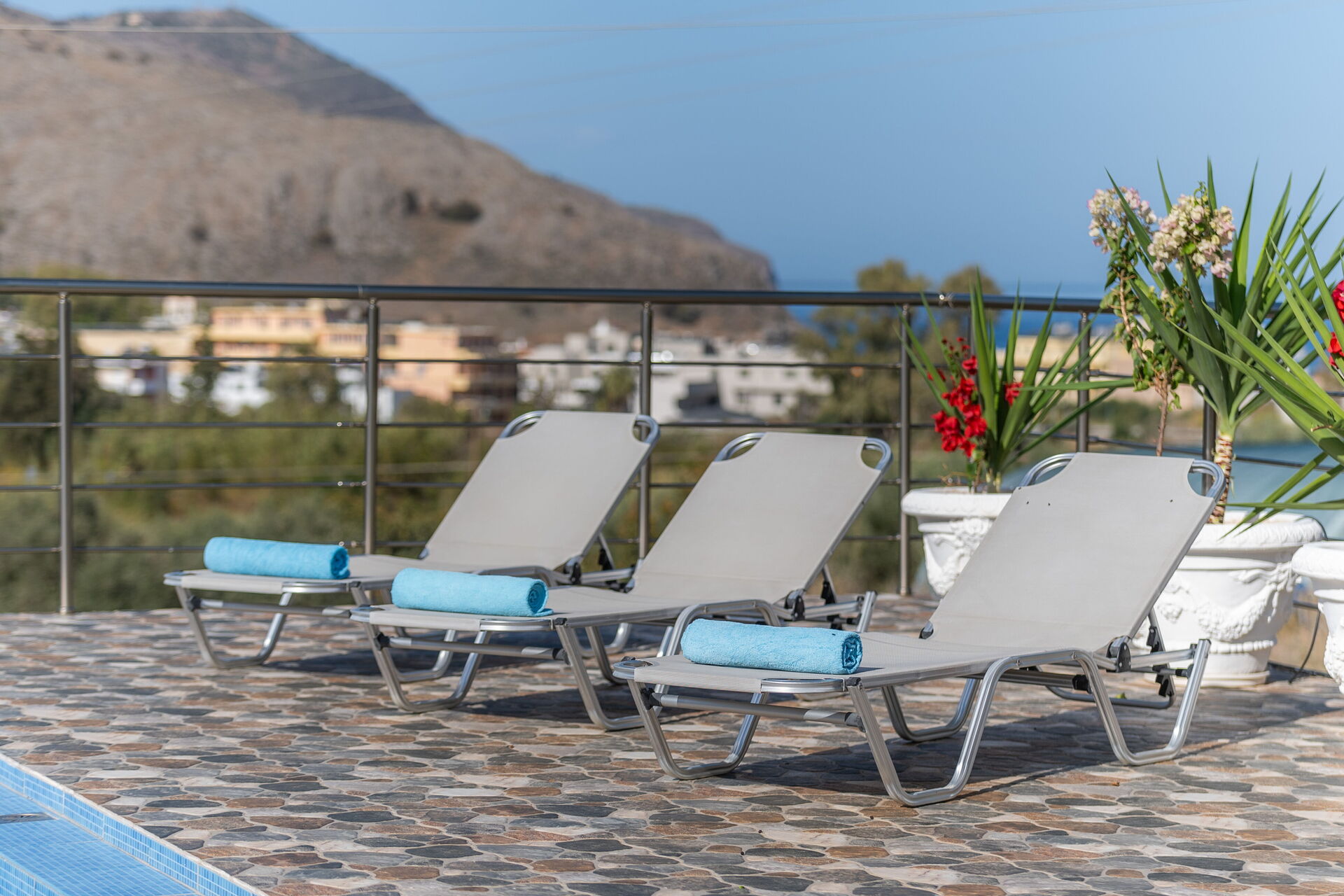 Distances : Georgioupoli (commerces en tout genre et plages) à 1,5 km, plage de Peristeras (plage de sable) à 2 km, lac de Kournas (commerces et tavernes) à 4 km, Vrisses à 8 km, Vamos à 12 km, Almyrida à 17 km, Rethymno à 22 km, Chania à 41 km, aéroport à 47 km, Héraklion à 104 km, le célèbre Palais de Cnossos à 105 km.