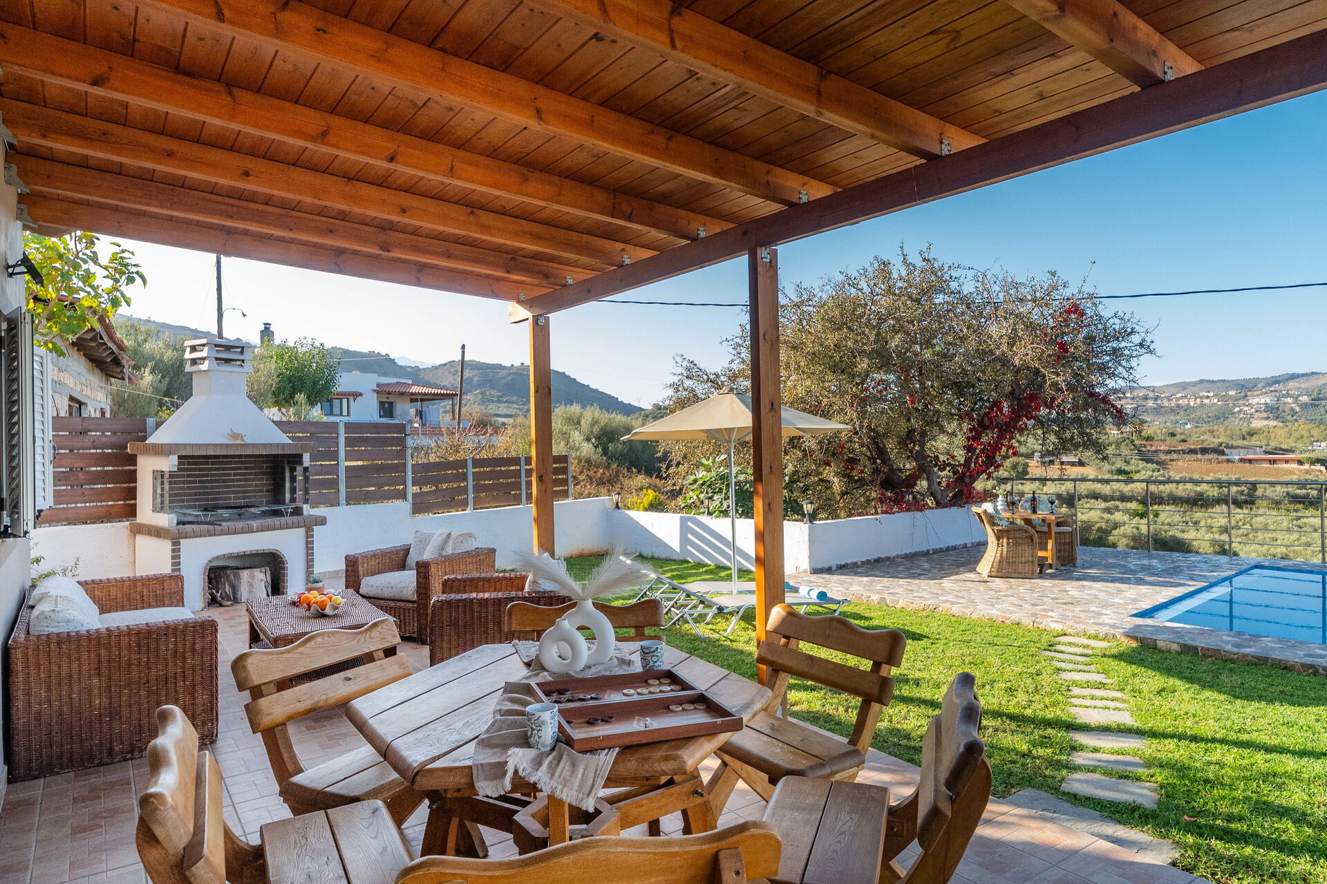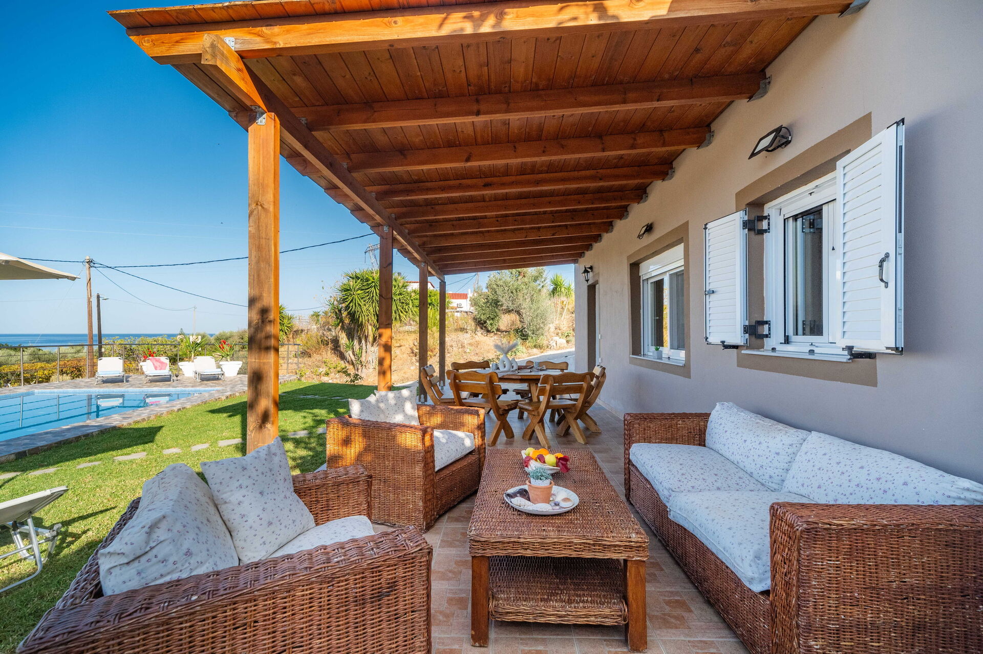 Cette villa en Grèce avec vue sur la mer est parfaite pour celles et ceux qui souhaitent passer des vacances en bord de mer sous le signe de la tranquillité: vous pourrez vous détendre au bord de la piscine en prenant le soleil ou en lisant un bon livre. Grâce à sa véranda aménagée, les hôtes pourront profiter de dîners agréables en plein air.