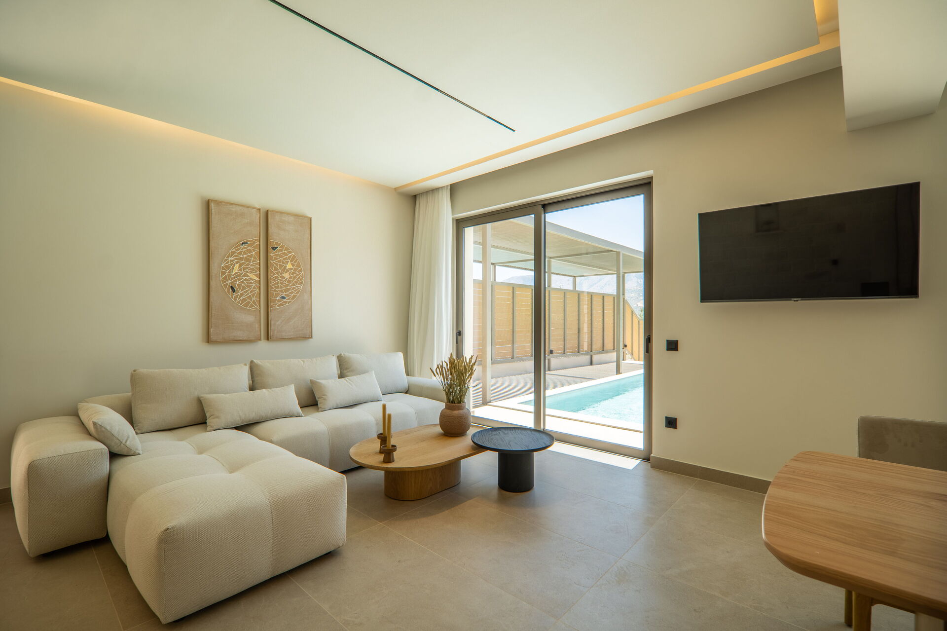 Chaque villa dispose de 3 chambres, 3 salles de bain, d’un agréable espace de vie équipé avec cuisine, air conditionné dans toutes les pièces et d’un superbe espace extérieur doté d’une piscine réservée à l’usage exclusif des hôtes de chaque villa.