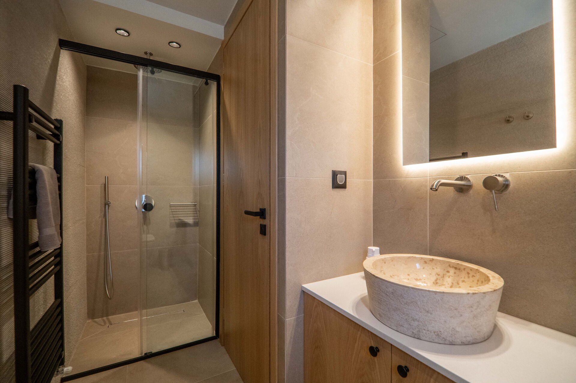 Premier étage: 2 chambres doubles chacune avec salle de bain privée avec douche.