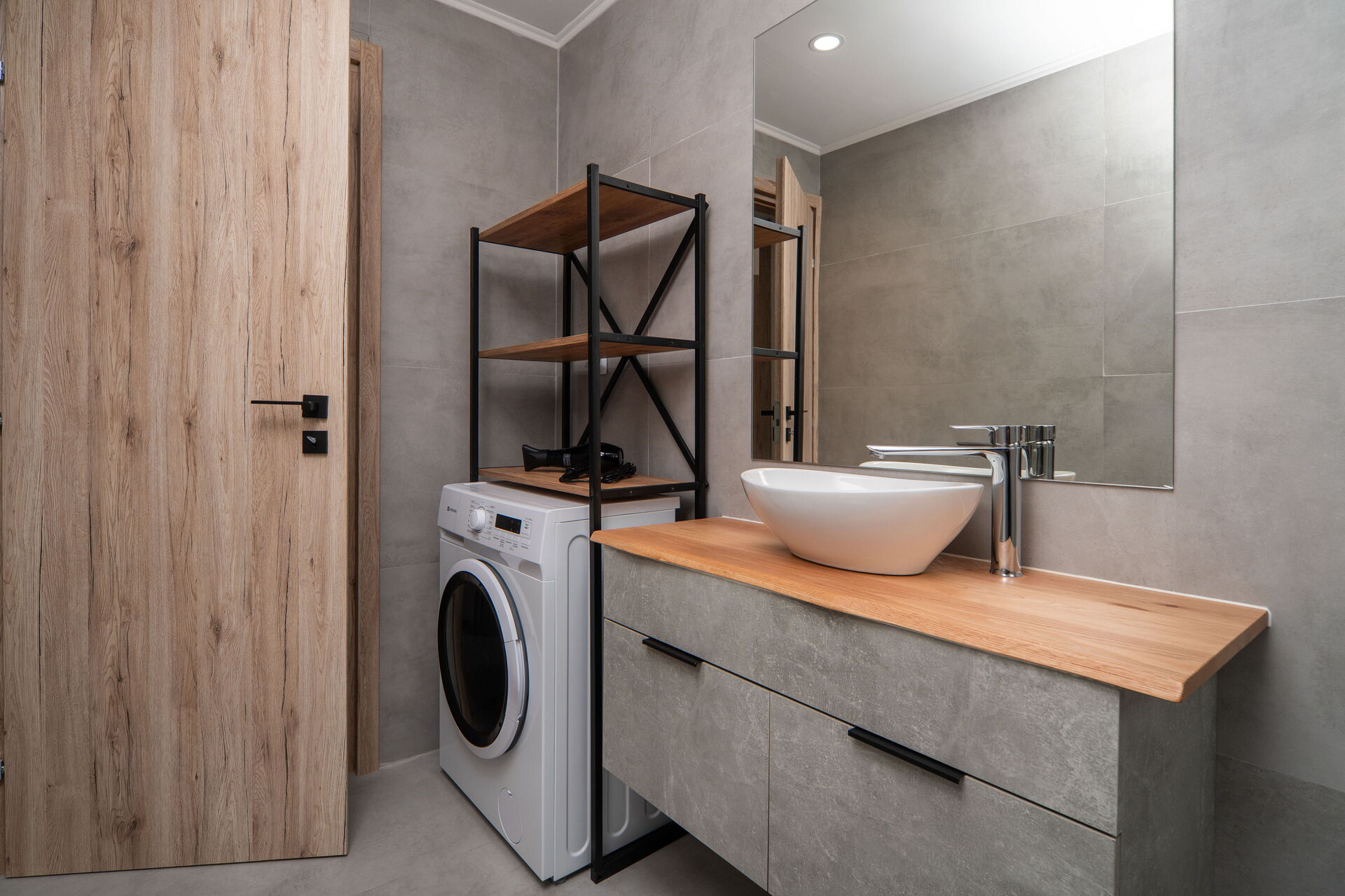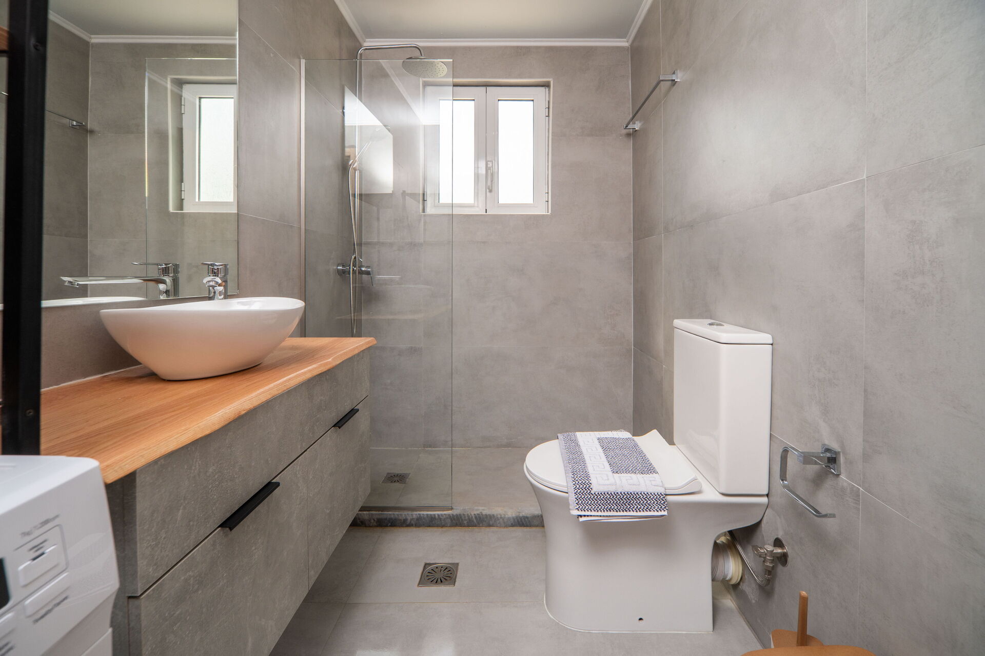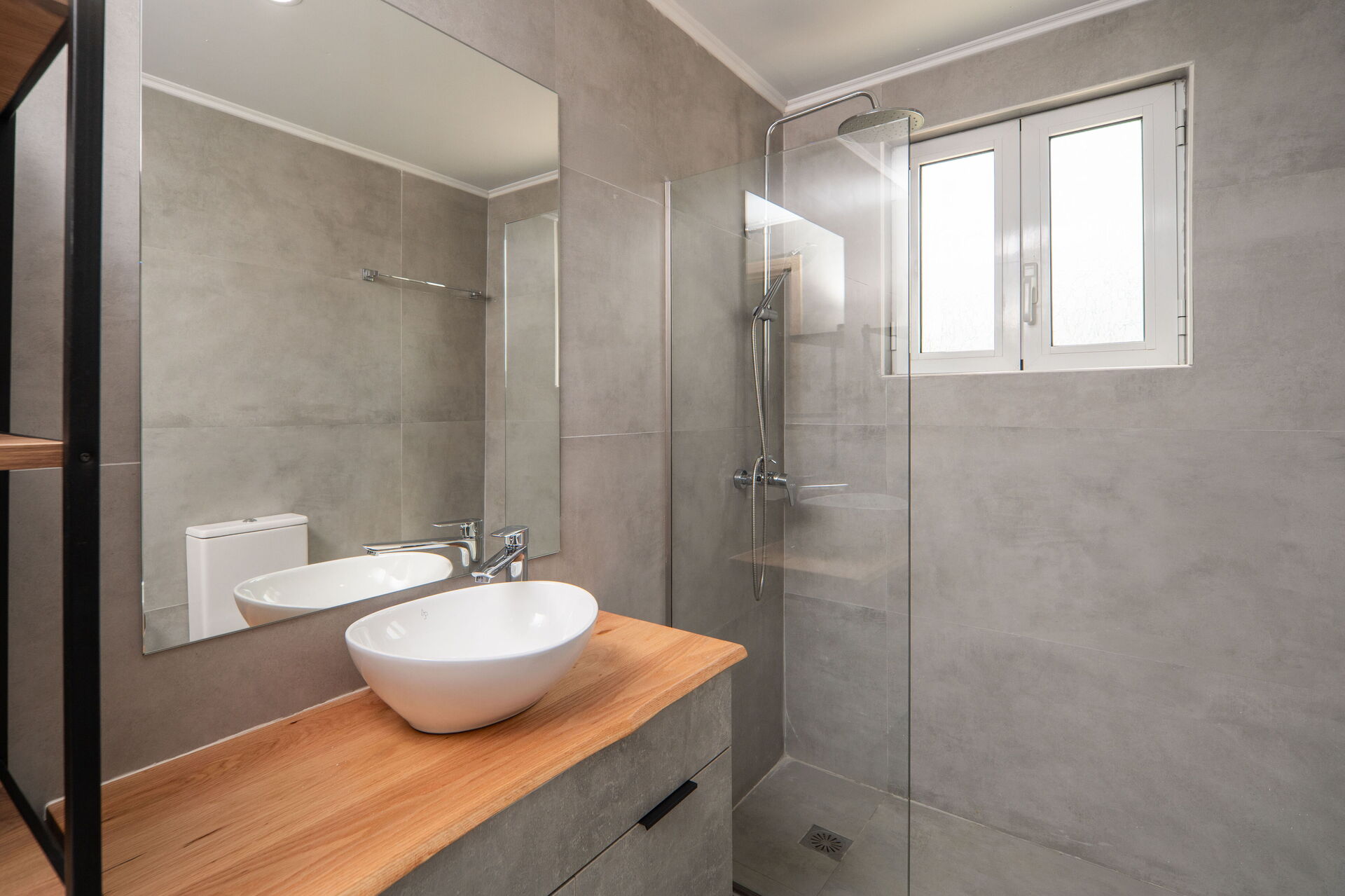 Rez-de-chaussée: salon (Smart-TV) avec coin repas et cuisine (four, congélateur, machine à café, grille-pain et bouilloire), 3 chambres doubles, 2 salles de bain chacune avec douche.