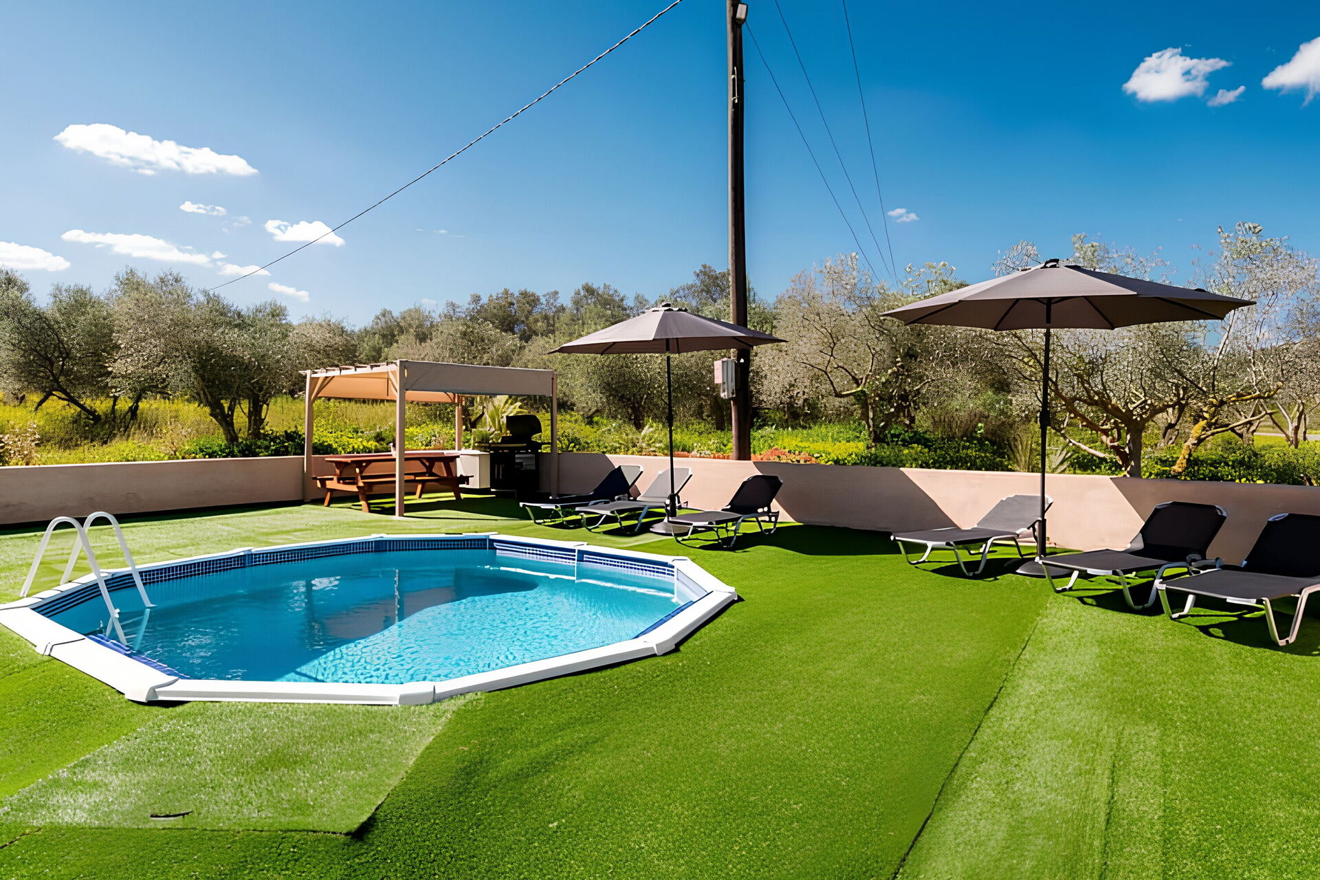 La maison dispose de 3 chambres et de 2 salles de bain. Tout est neuf et aménagé afin d’offrir des vacances confortables en famille ou entre amis. À l’extérieur se trouve une piscine récente permettant de se rafraîchir durant les journées ensoleillées typiques de cette magnifique île de la Méditerranée.