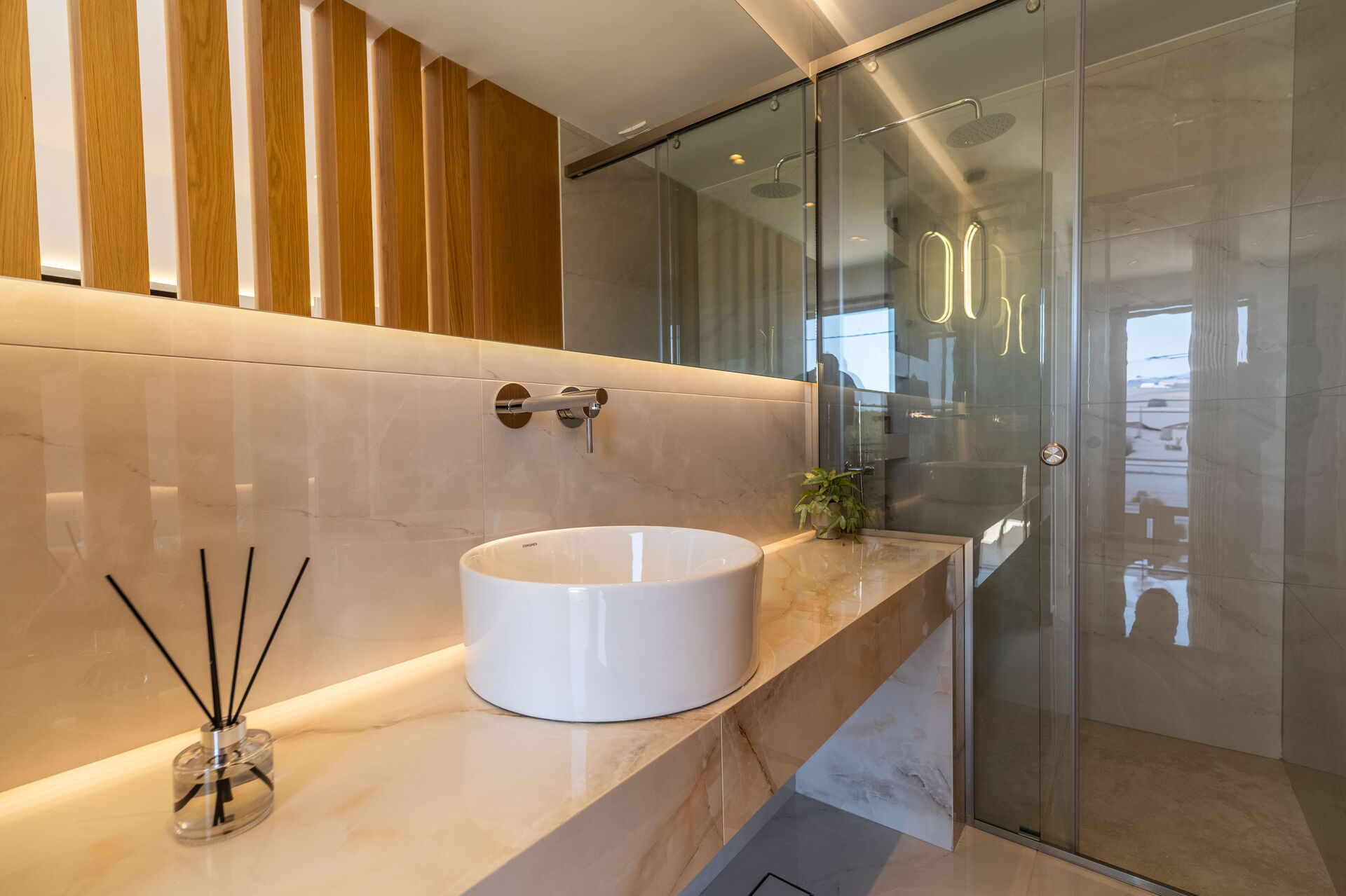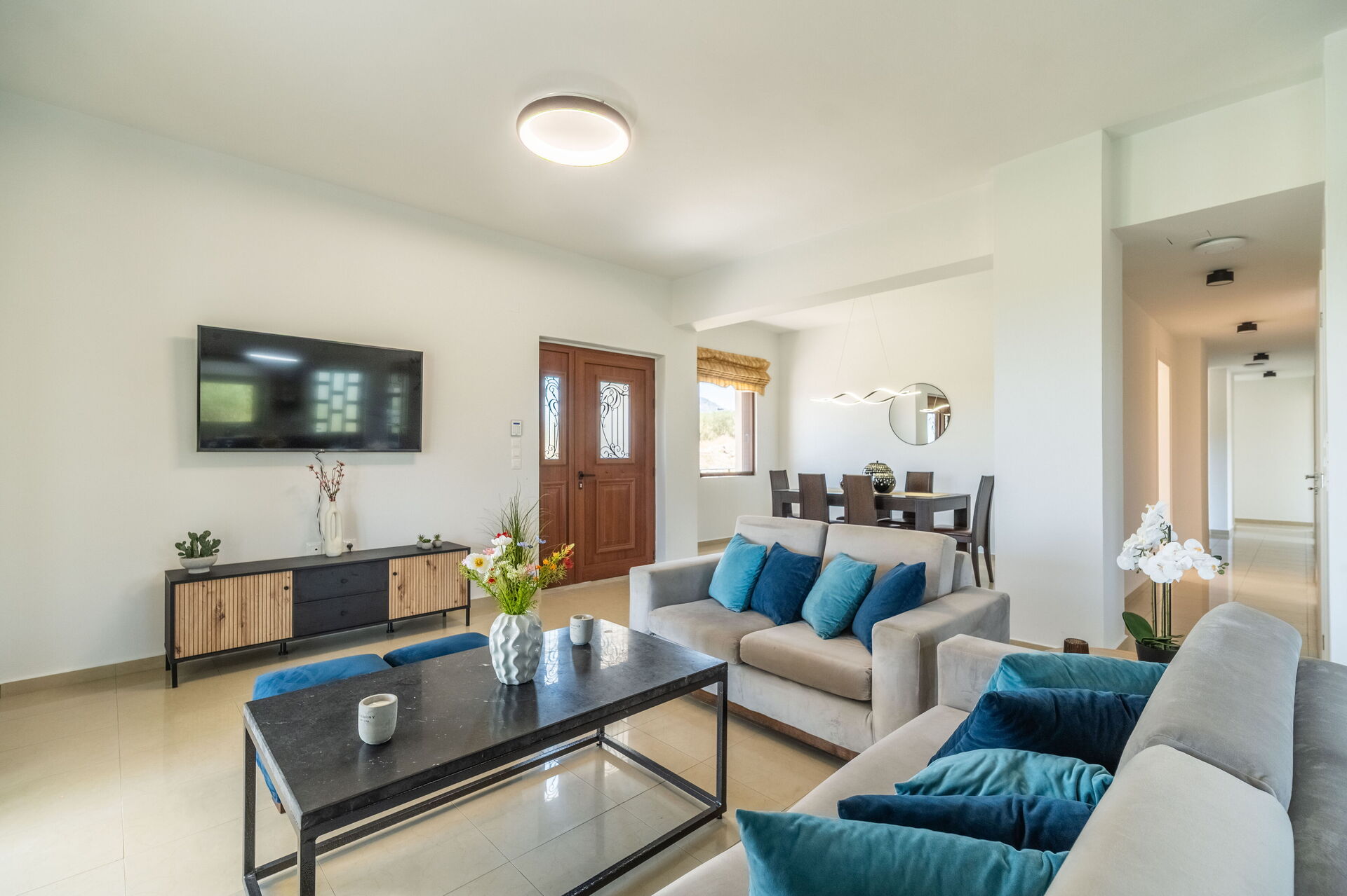 Villa Aetheria est idéale pour les familles ou un groupe d’amis: les intérieurs de la demeure sont élégants et chaleureux, très lumineux et aménagés sur un seul niveau; avec ses 4 chambres elle peut accueillir confortablement jusqu’à 8 personnes.