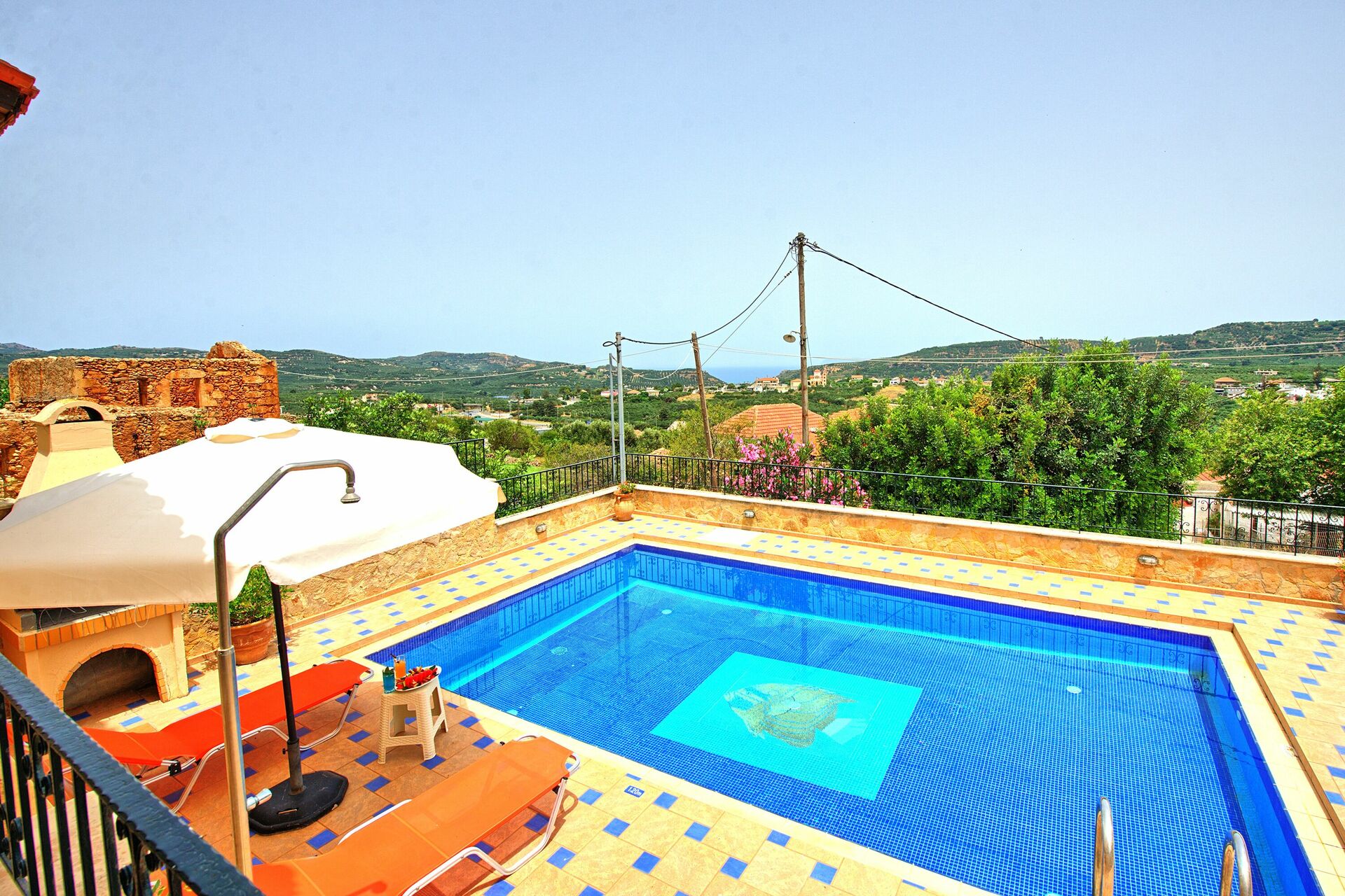 A really lovely villa with a beautiful pool. It has a wonderful view and is very relaxing. It is situated in a small village without shops or taverna and a car is essential to get anywhere, including the nearest beach , which although only 3kms away is not walkable.