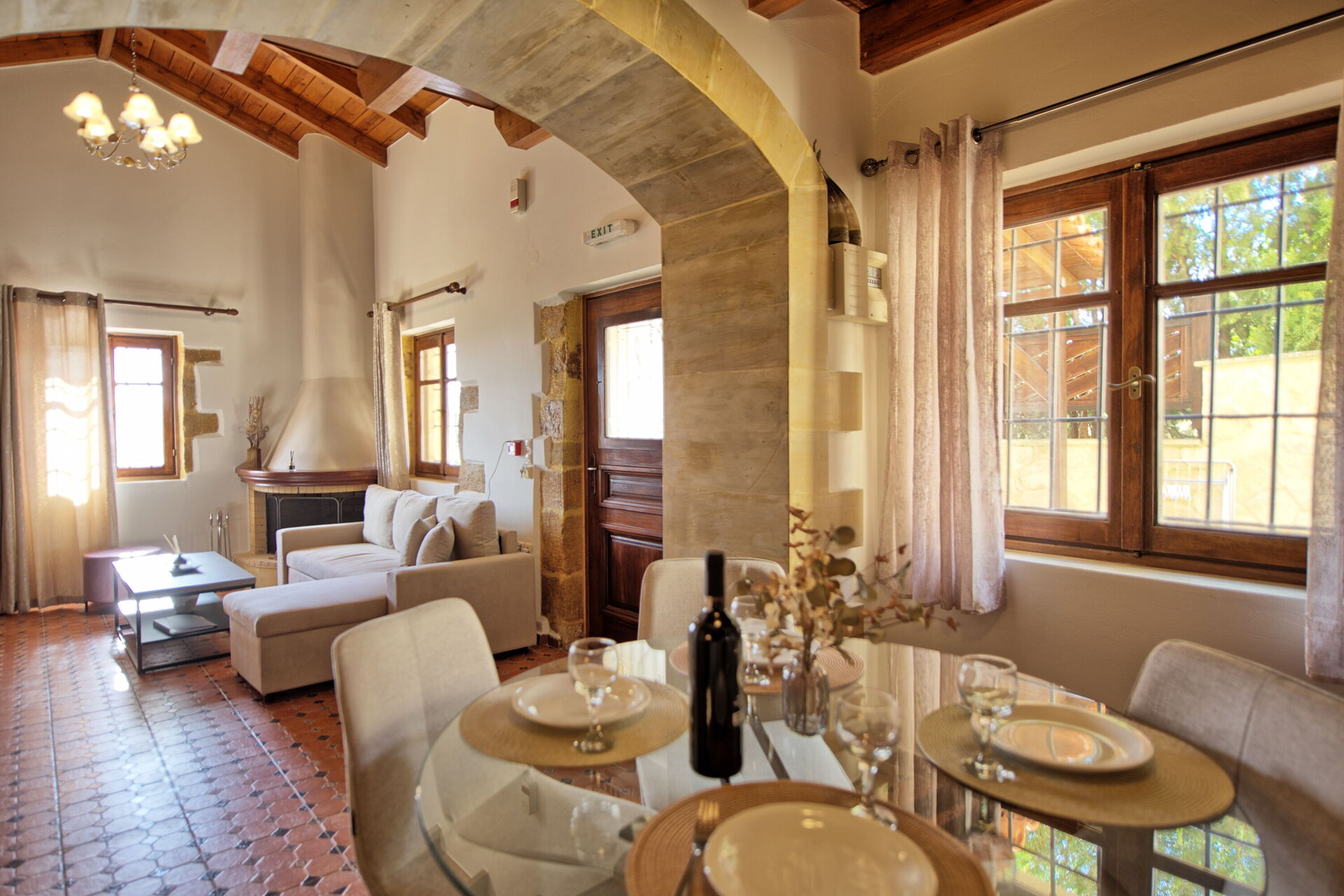 La villa a été restaurée et transformée en une villa de haut standing avec air conditionné. Le propriétaire a choisi personnellement les matériaux, le style et a voulu recréer l’atmosphère d’une ancienne demeure de charme de l’île dotée de tous les conforts modernes et équipements nécessaires.