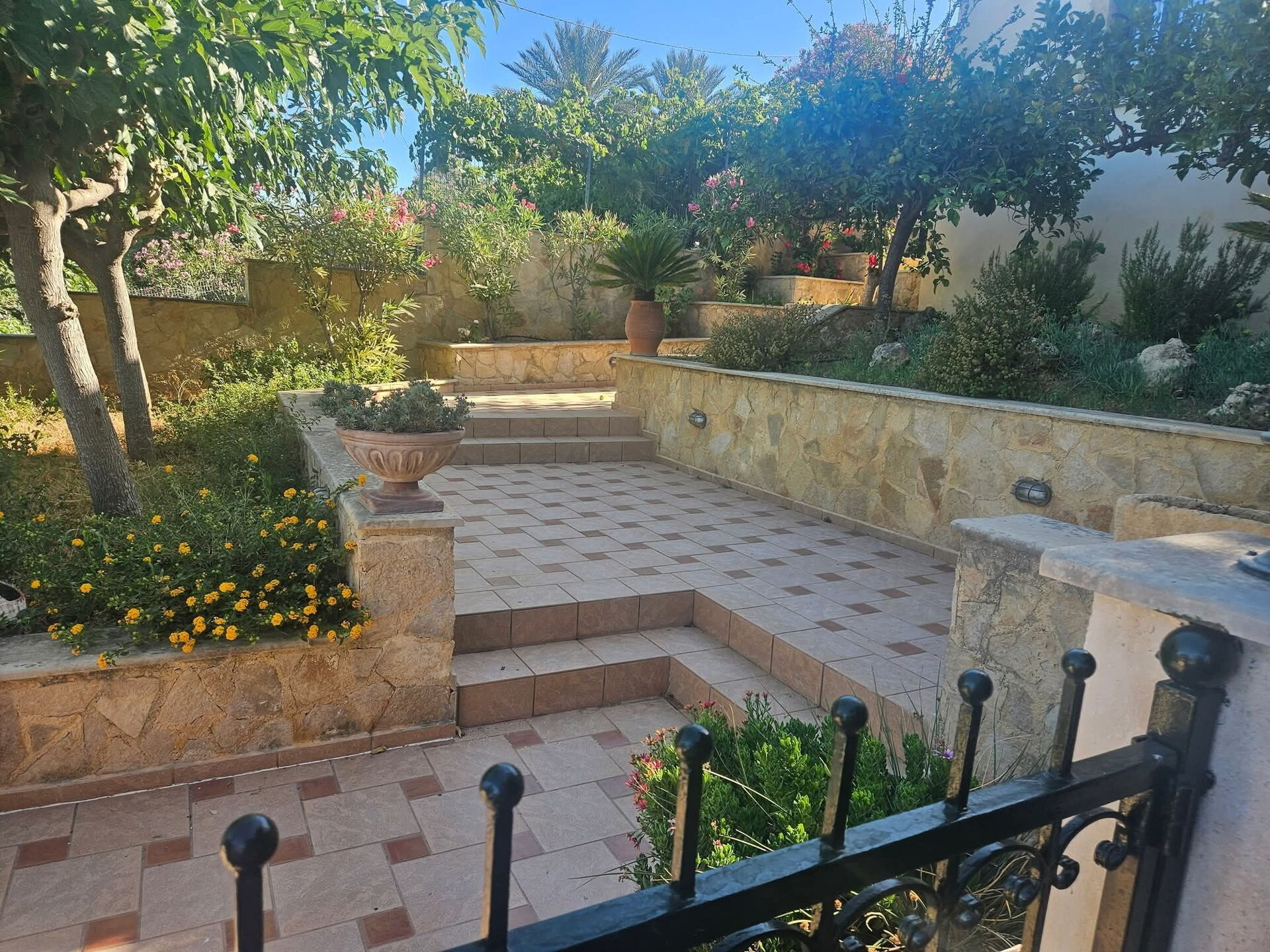 • Terrasse et jardin avec fleurs et arbustes