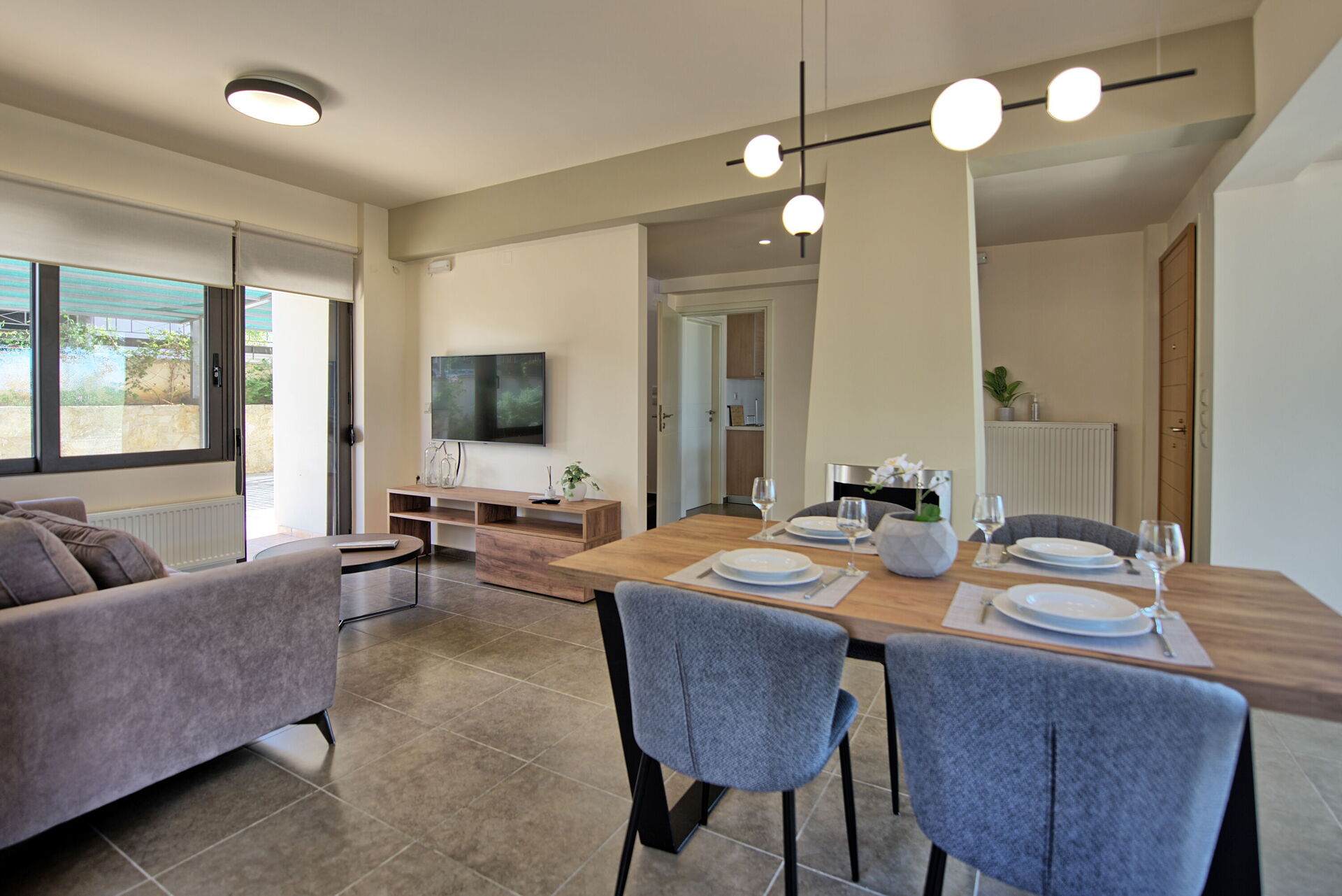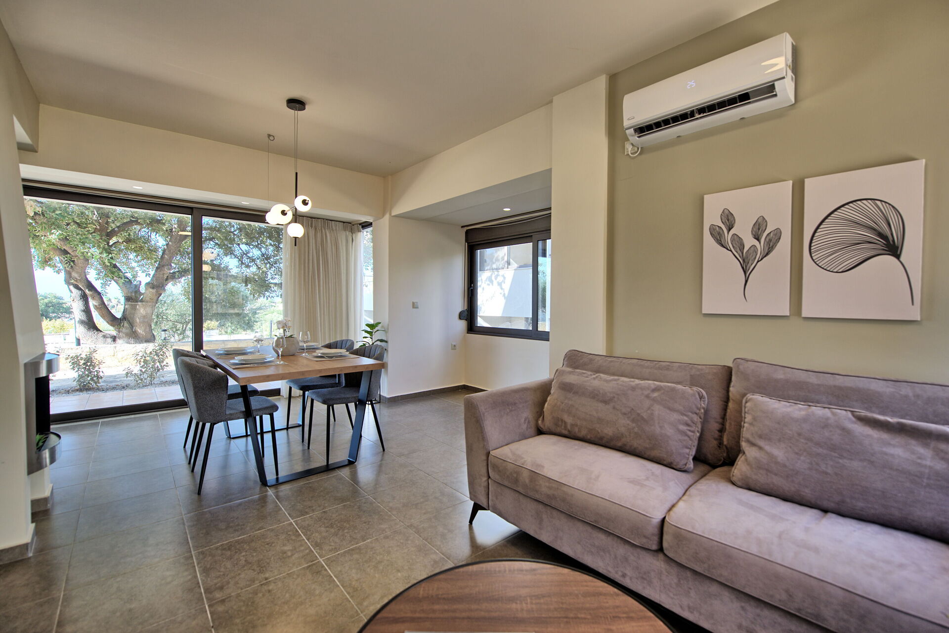 La position stratégique vous permet de rejoindre rapidement les plus belles plages de Crète, les principales destinations touristiques et les principaux services (port, aéroport et autoroute).