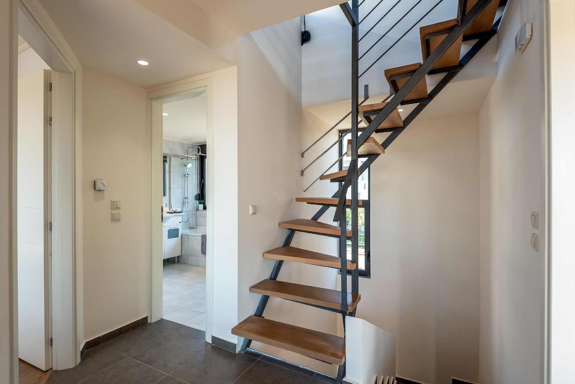 Iris dispose de divers espaces extérieurs: à l’entrée de la maison se trouve une table avec des chaises dans un espace couvert, au premier étage il y a une grande terrasse avec un coin repas supplémentaire et enfin une charmante terrasse sur le toit avec solarium (accessible depuis la chambre au dernier étage). Depuis le toit, la vue à couper le souffle sur le paysage environnant et la mer enrichira vos journées.