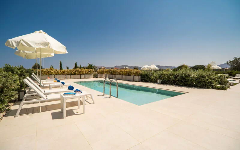 Iris est une portion de villa à louer avec piscine privée dans le petit village de Kounoupidiana en Crète.