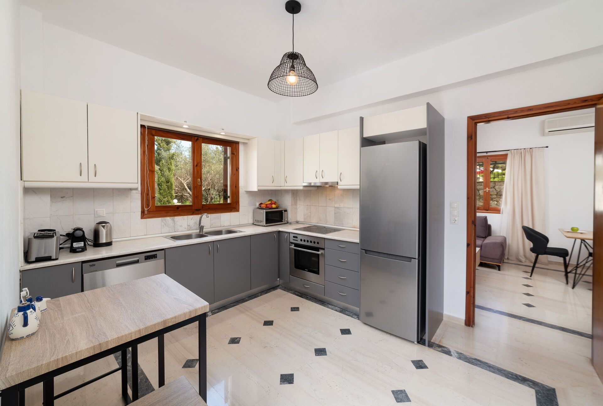 Distances: Vrisses (commerces en tout genre) à 2,5 km, Vamos à 8 km, Georgioupoli (commerces en tout genre et plages) à 8 km, Almyrida à 14 km, Réthymnon à 35 km, La Canée à 38 km, aéroport à 42 km, le célèbre Palais de Cnossos à 110 km, Héraklion à 111 km.