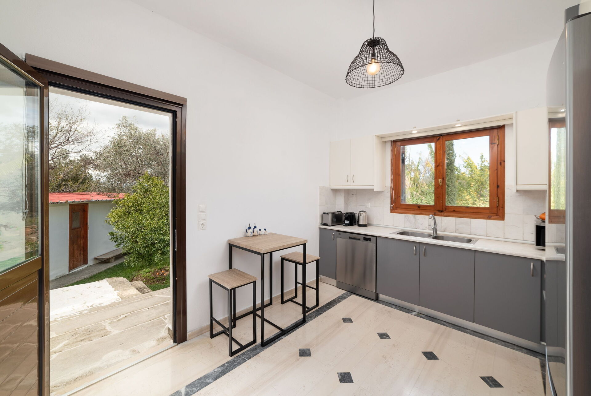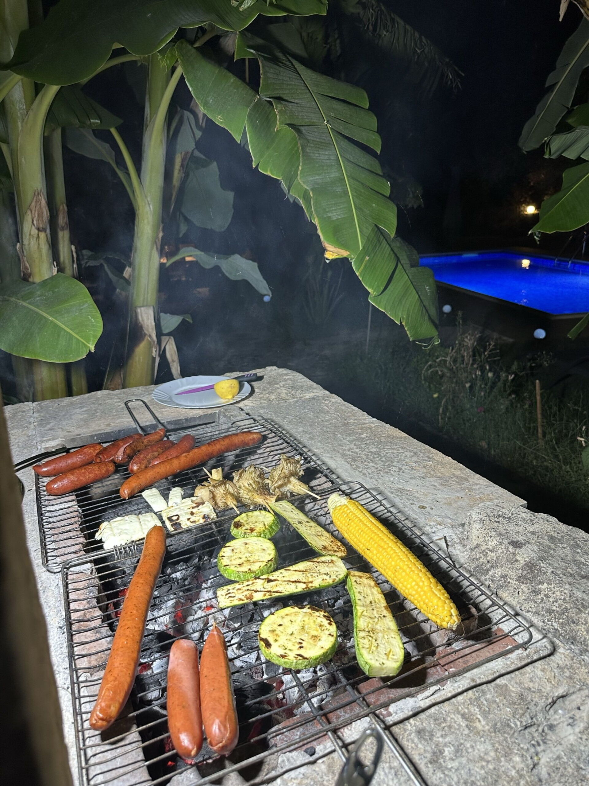 Excellent place for a family vacation. The hosts, Silvia and Jorgos, are most friendly and welcoming, they made sure we had a great time staying at their house. They came with gifts to us during our stay, like olive oil, wine, eggs and spices. The villa is situated in a beautiful garden which provides a wide range of fruits, vegetables and herbs that can be used freely. The stone grill is perfect for a nice barbecue, and the pool area is relaxing. The house is very clean and has everything you need. It is necessary to have a car to get around, to the beaches, and for shopping. We warmly recommend this place to everyone, and would like to come back some day!