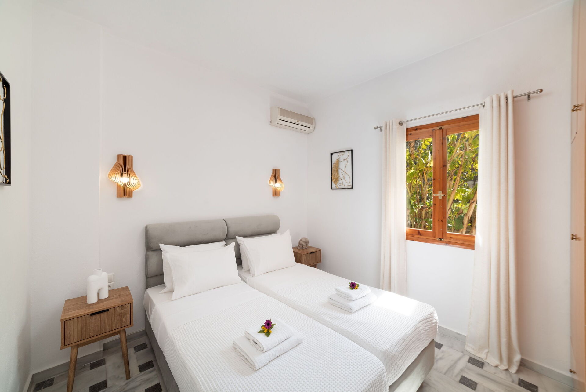 La villa a été récemment rénovée et est de plain-pied; elle dispose de trois chambres et de grands espaces communs. Klapas peut accueillir confortablement jusqu'à 6 personnes.