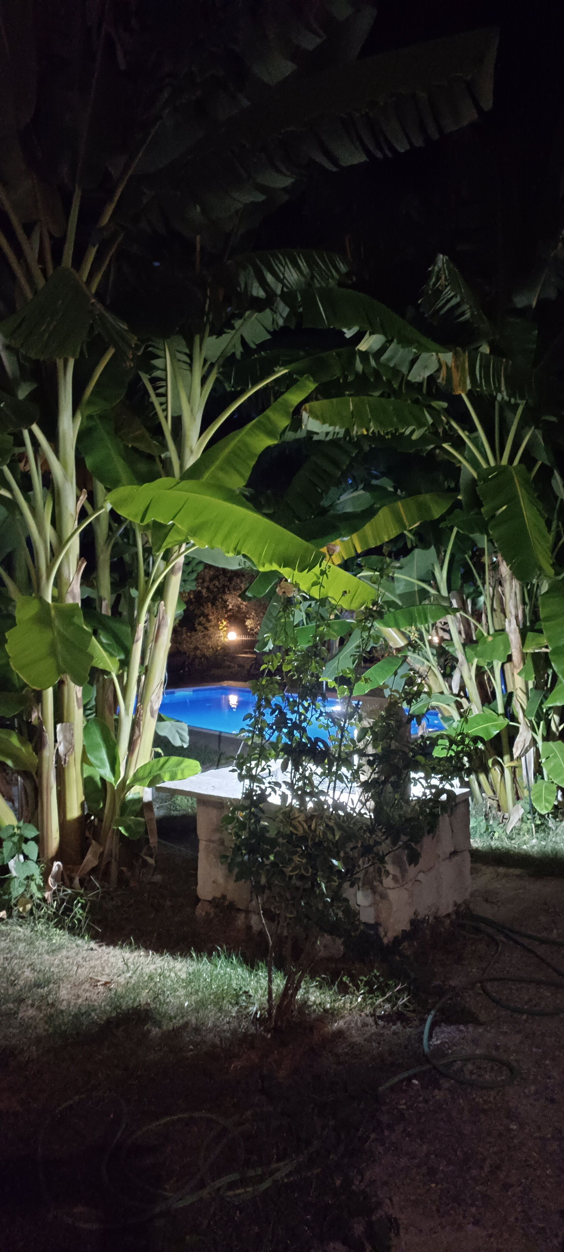 Sehr schönes Haus mit extrem schönem Garten und Pflanzen. Eigenes Ernten von z.B. Bananen und Weintrauben möglich. Ausreichend großer Pool. Im Garten kann man sowohl sonnige als auch schattige Plätzchen unter Olivenbäumen finden.