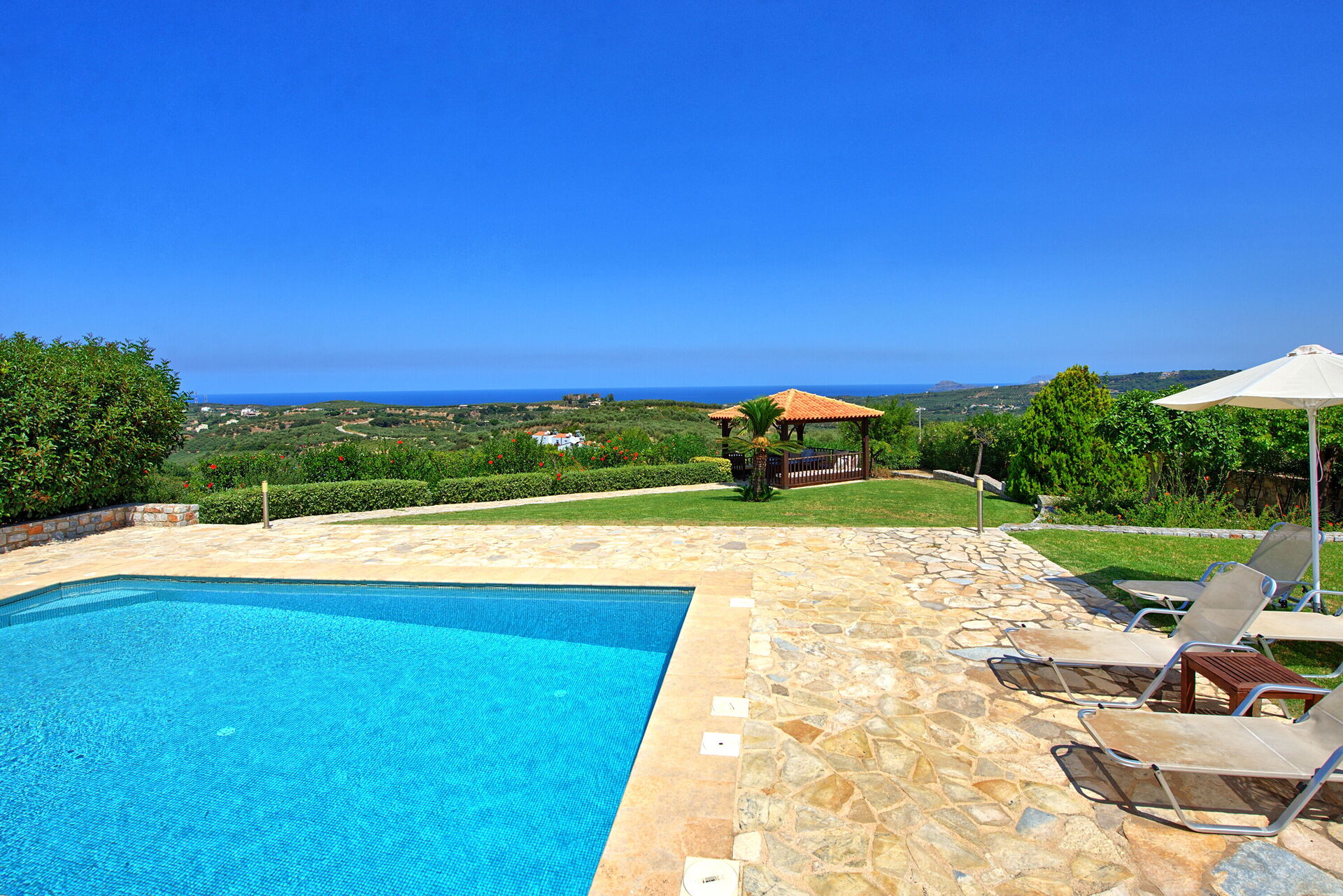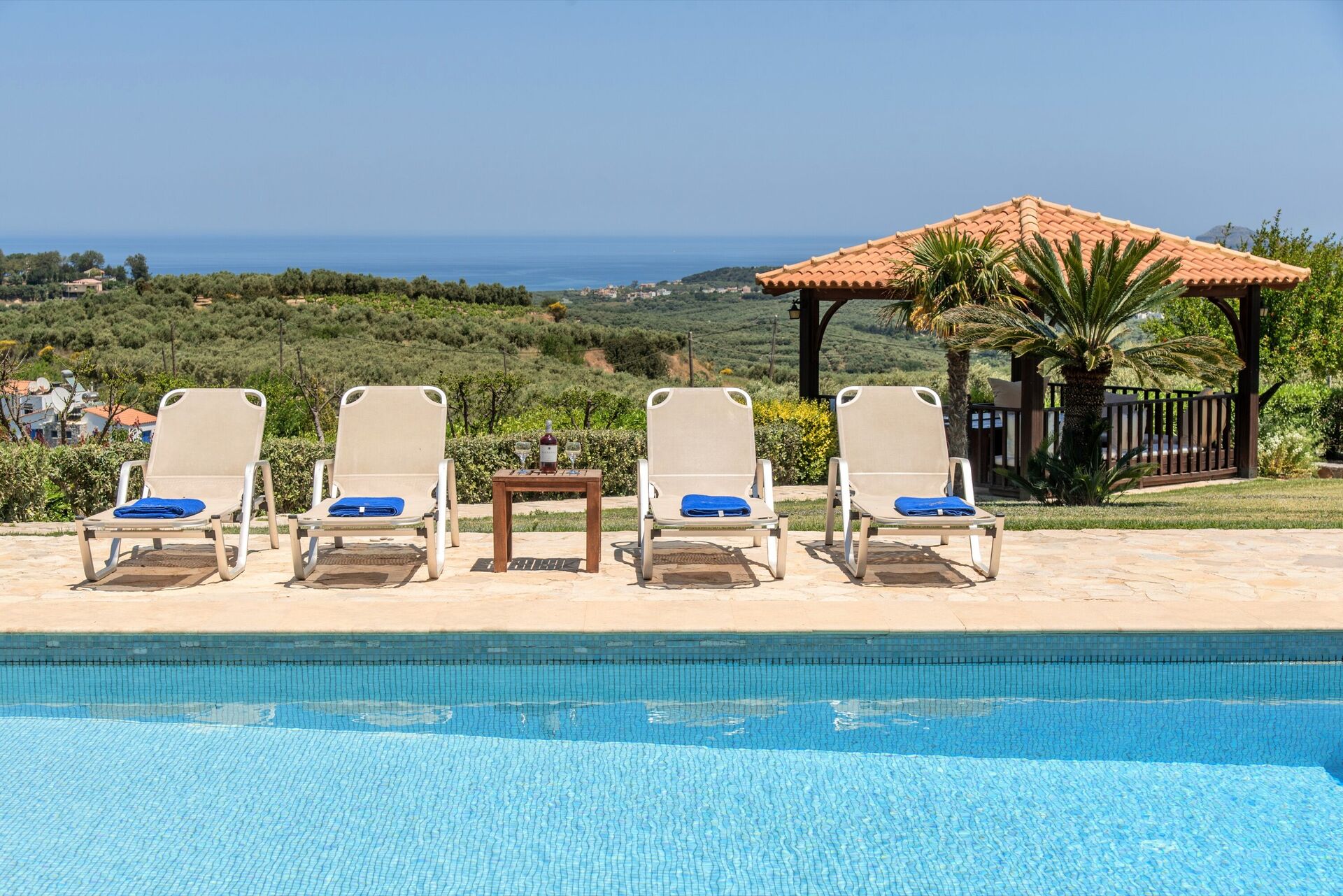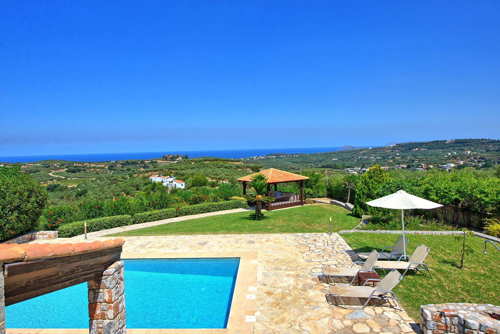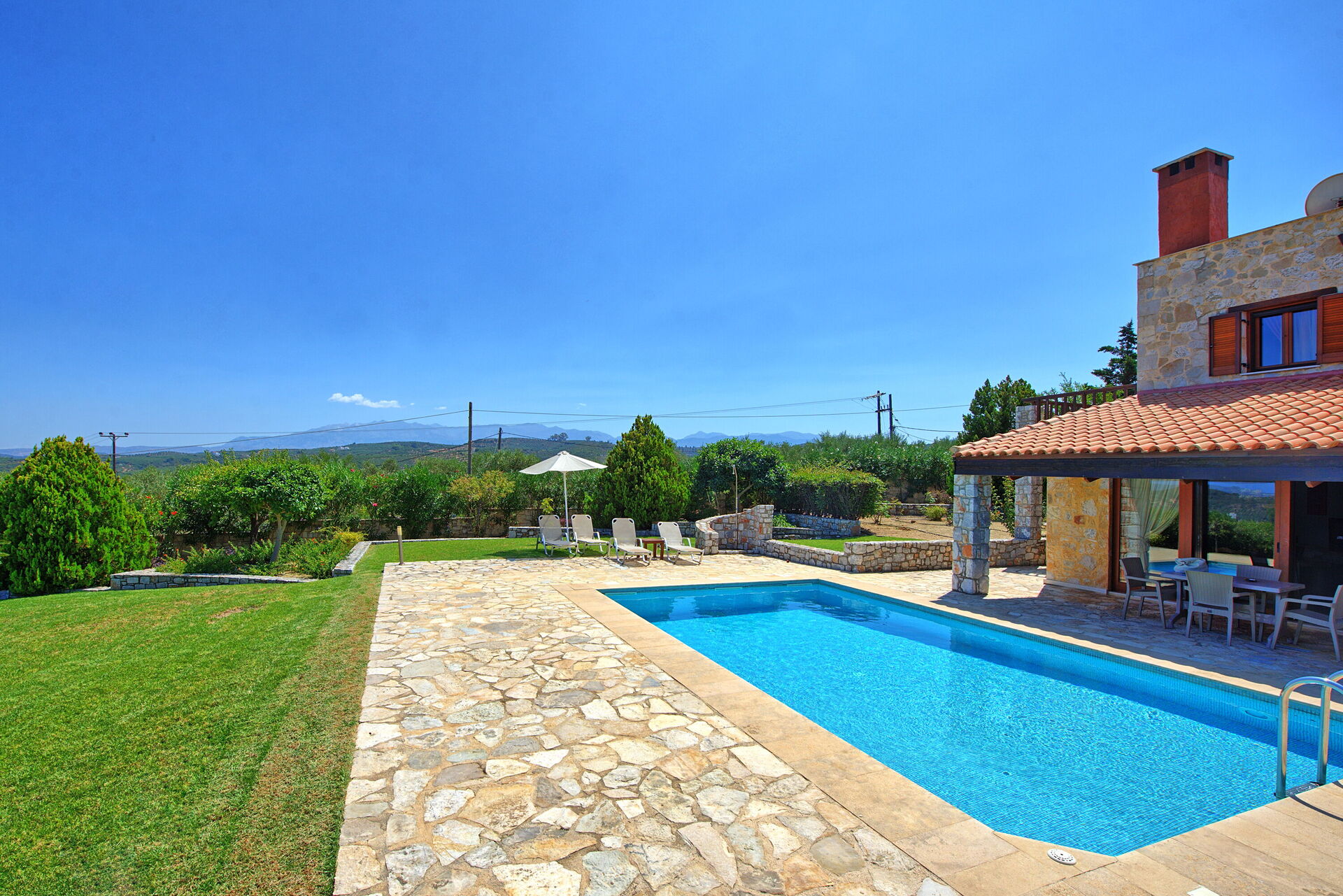 The villa and the yard is wonderful. The view is also very beautiful and the surrounding villages are filled with tavernas and wineries so you can find every night some where new to eat and drink.