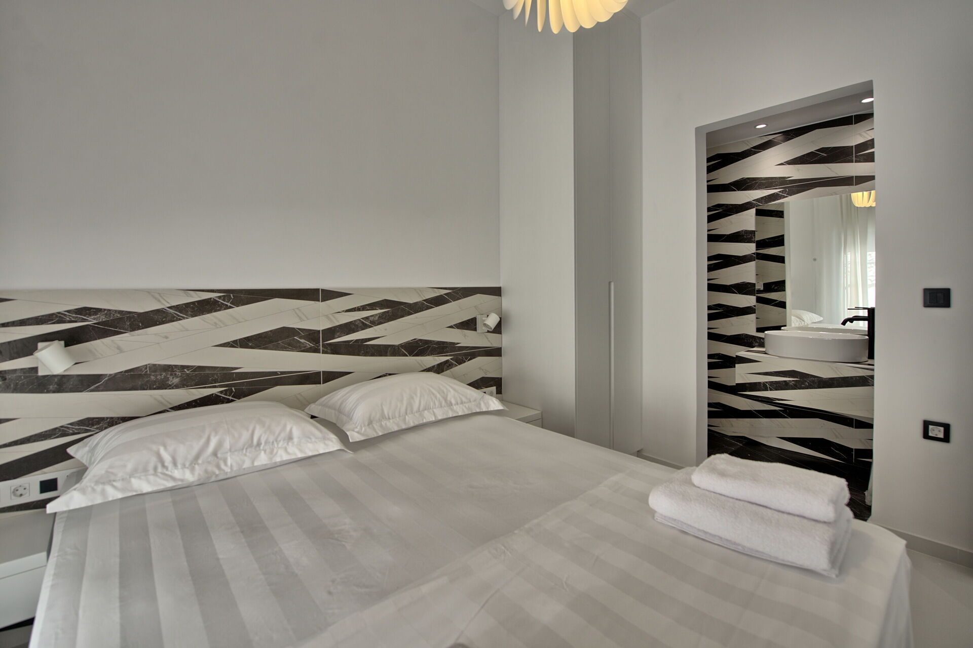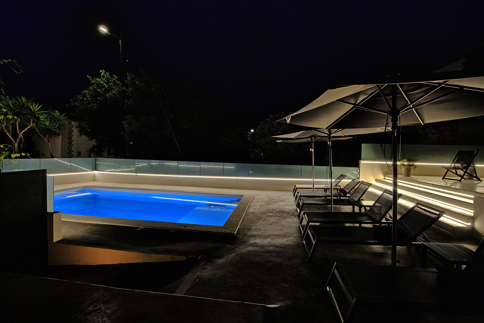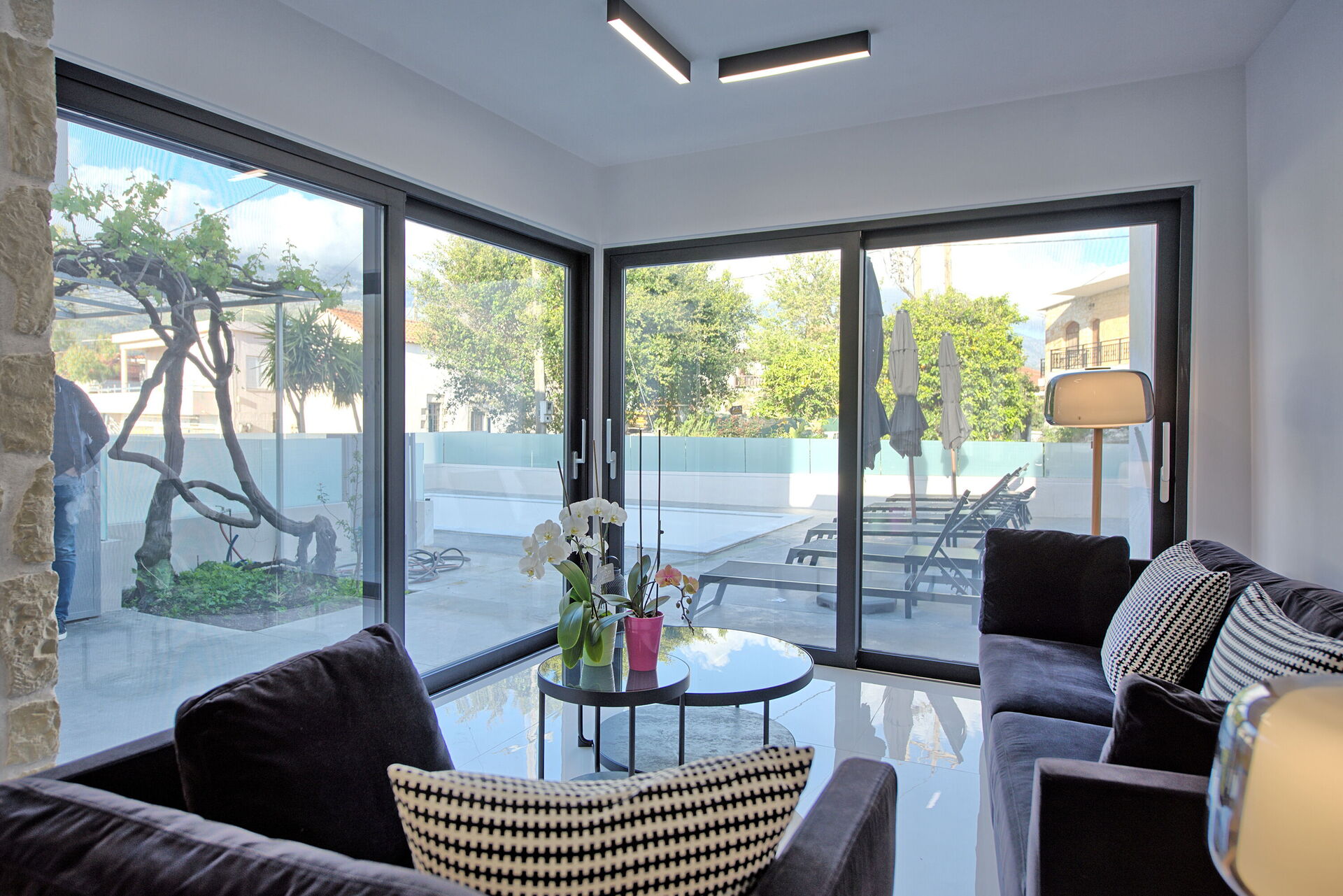 À quelques pas du portail d'entrée se trouvent un café grec traditionnel et une excellente taverne locale : une véritable extension de la maison pour ceux qui aiment la cuisine locale. Passé l'entrée privée, les clients sont accueillis dans un espace extérieur isolé. Le patio surélevé, protégé par une grande voile d'ombrage, abrite un coin repas avec barbecue, idéal pour manger en plein air. Le solarium entoure la piscine privée réservée à l'usage exclusif des clients : un atout rare dans un centre historique.