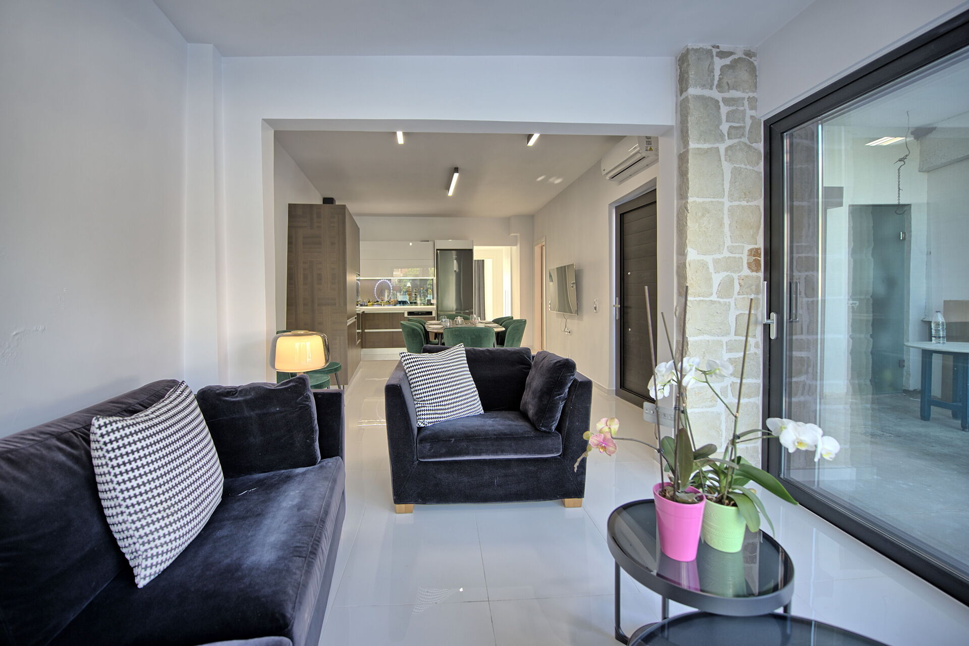 Répartie sur un seul niveau pratique, la villa est conçue pour accueillir confortablement jusqu'à 6 personnes. L'espace de vie ouvert est accueillant, doté d'une cuisine moderne entièrement équipée, tandis que l'espace nuit climatisé garantit un confort maximal.
