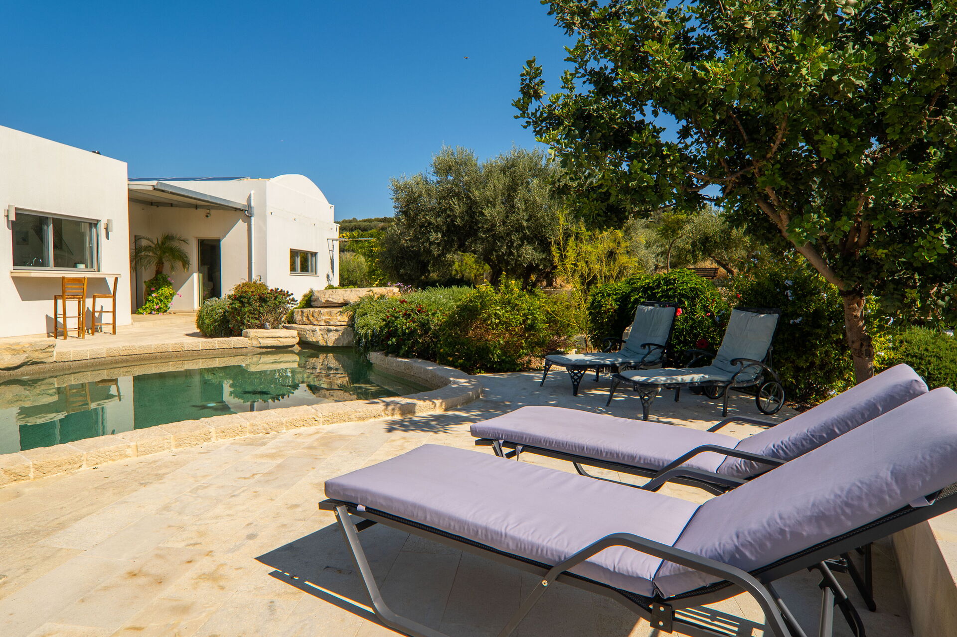 Villa Lucy est une belle villa avec piscine privée à louer pour des vacances en Crète: elle est située sur une colline panoramique remplie d’oliviers et d’orangers près de Platanias, une station balnéaire renommée.