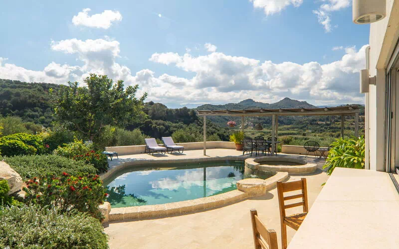 The villa offers amazing privacy. Situated on a hilltop location overlooking the beautiful valley and sea of Crete. Breathtaking.