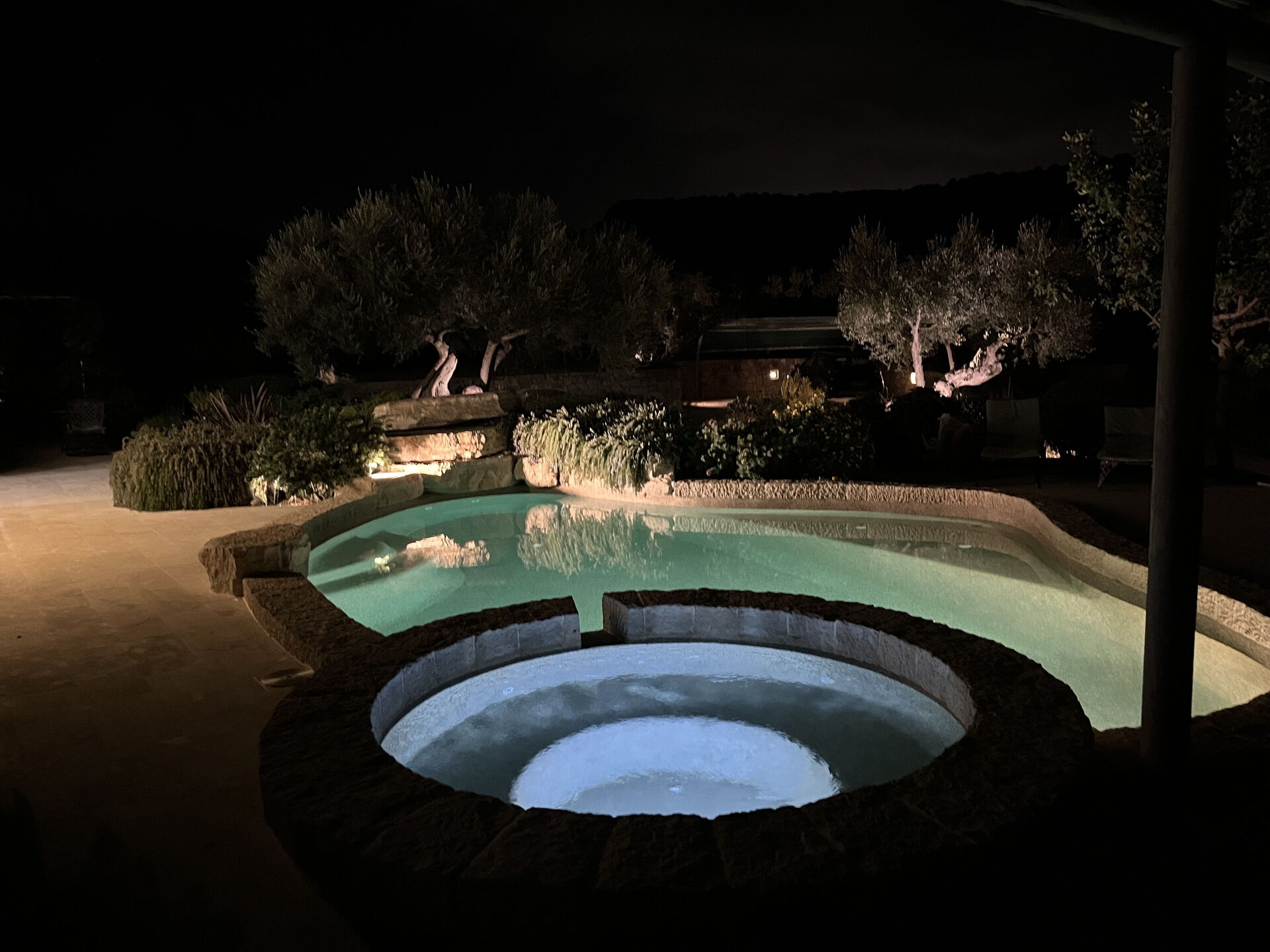 Cette splendide villa dispose d’une piscine particulière avec cascade et baignoire circulaire avec hydromassage. Le confort de la piscine est assuré par les terrasses panoramiques et un gazebo équipé de mobilier d’extérieur et d’une table à manger pour les repas en plein air et profiter des beaux jours.
