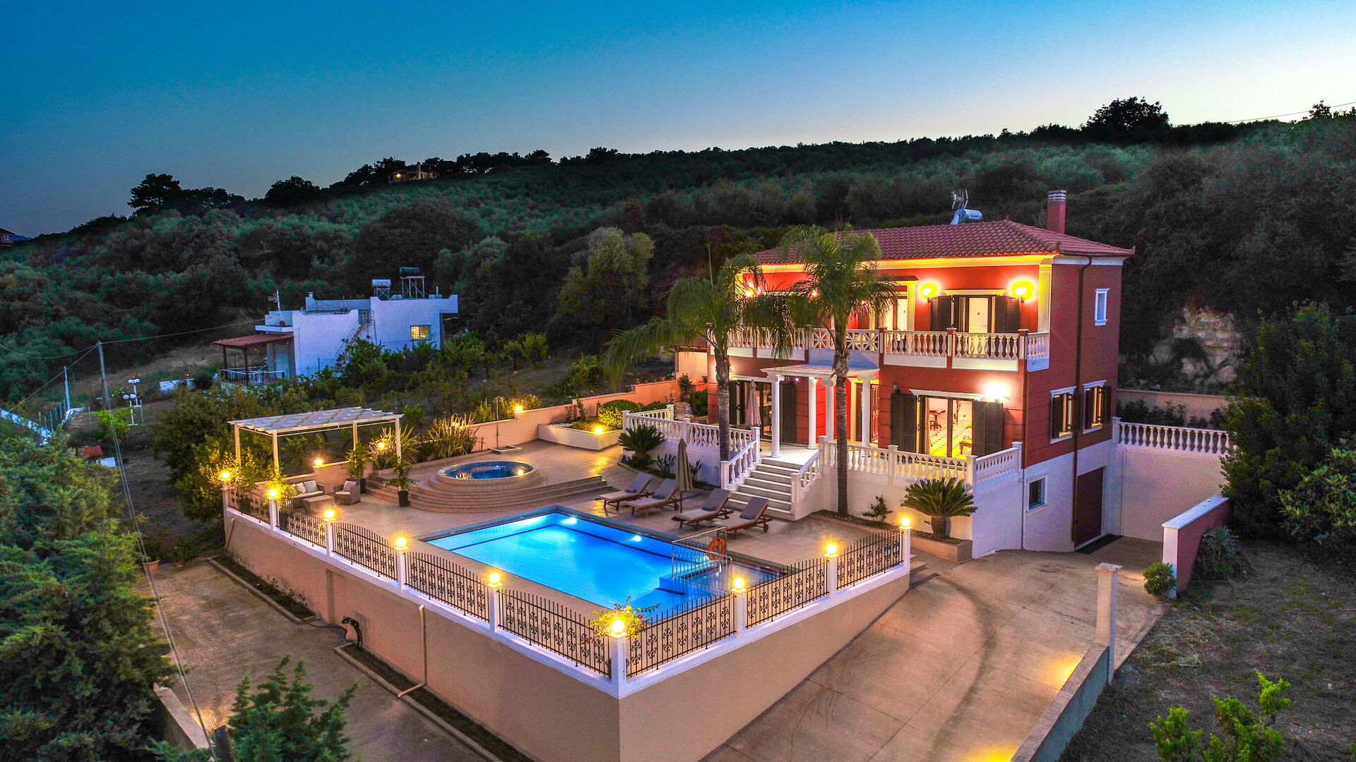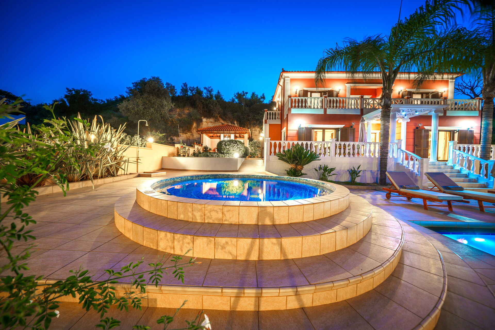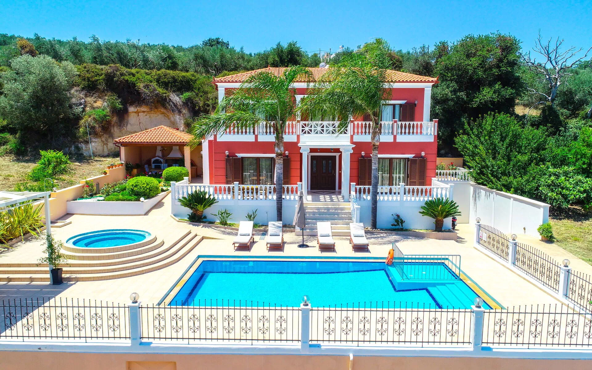 Son architecture classique et son mobilier raffiné vous permettront de passer un séjour très agréable en profitant de tout le confort moderne; une piscine panoramique avec un espace séparé et dédié aux plus petits et une baignoire à hydromassage extérieur (non chauffée) est à votre disposition ainsi qu’un jacuzzi, de grandes terrasses avec mobilier de jardin et le gazebo avec espace équipé d’une table pour les repas en plein air.