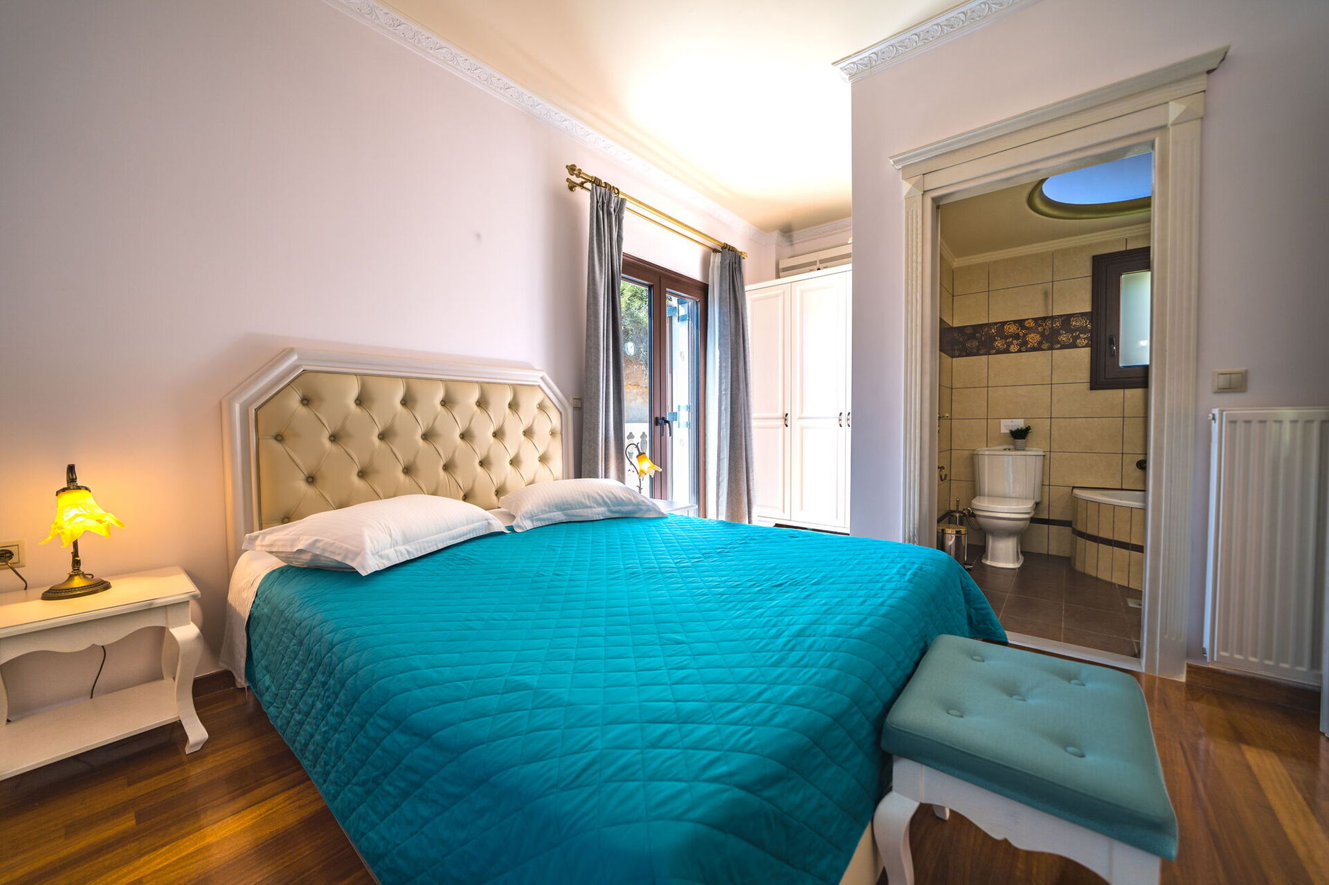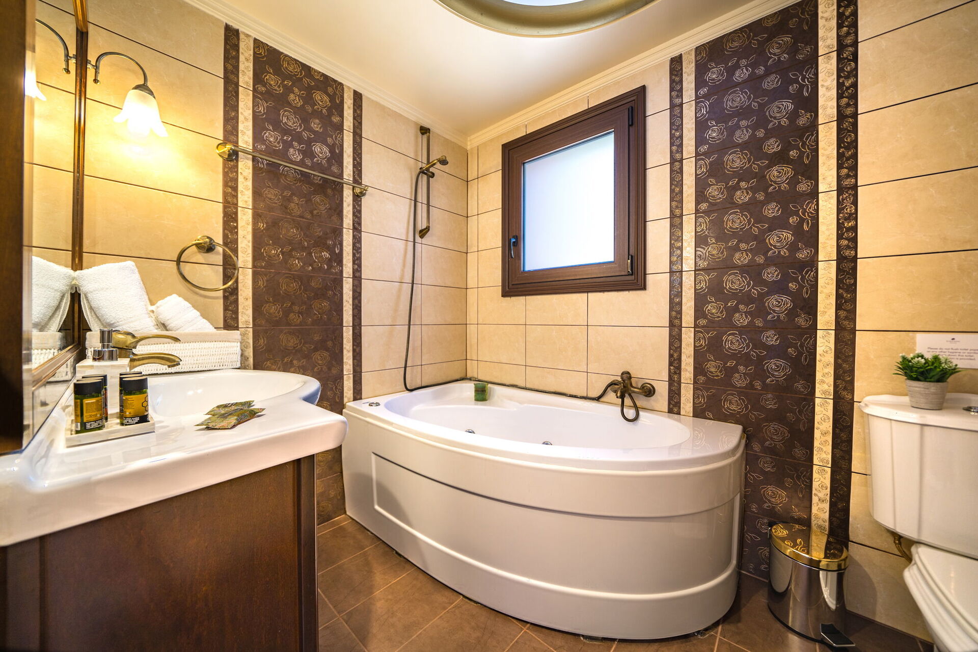 We were very pleased about our stay in Iro Royal Villa. It was super clean and beautifully decorated on the inside and a wonderful pool area and breathtaking views on the outside. It's a bit windy because it's higher up on the mountainside and you will need a car. Supermarkets and restaurants are all within 10 min. drive. There was a nice welcome basket with different foods and drinks. The hosts were very nice and helpful and very responsive. We really highly recommend this place. It's truly a beautiful villa.