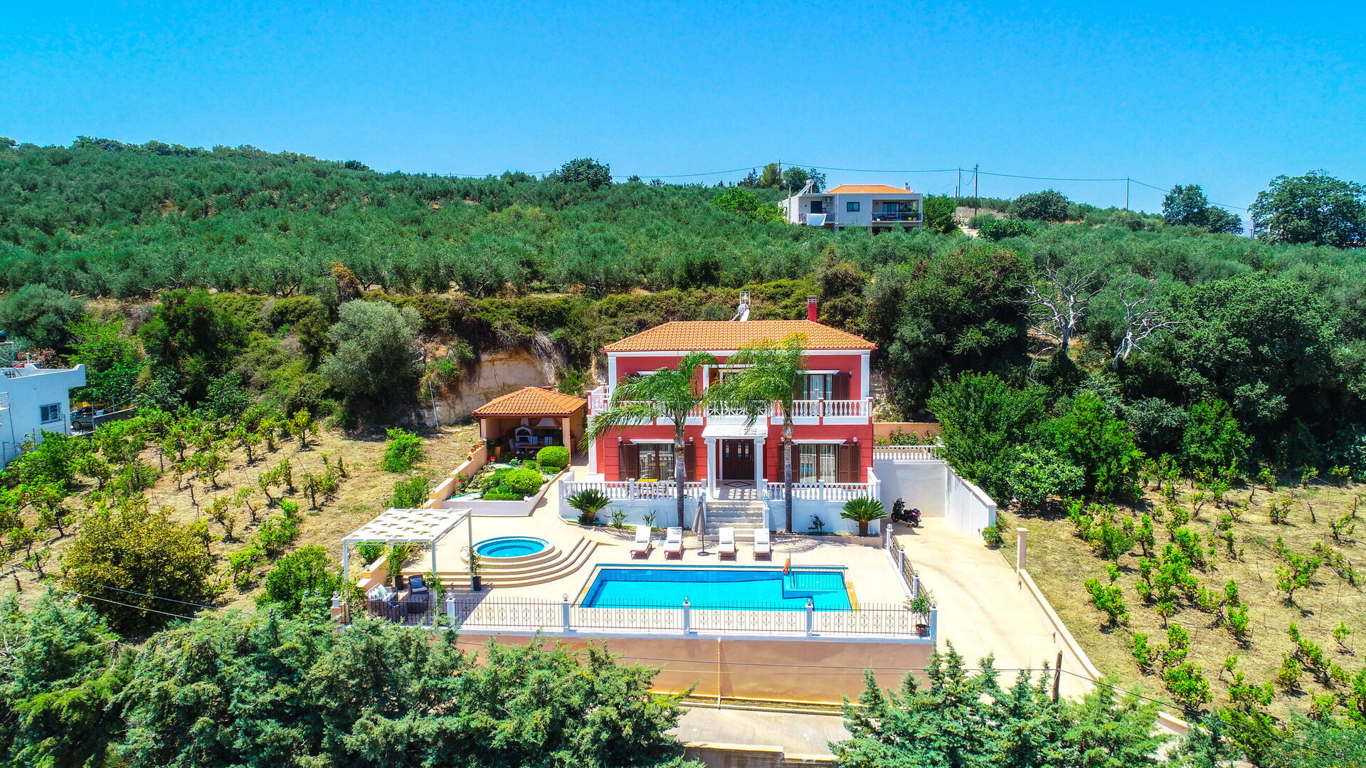 This was an amazing villa. It is up in the mountains a bit so you need a car but we knew this. Its very quick to drive to the next town and there is a lovely taverna less than 5 minutes walk down the hill.