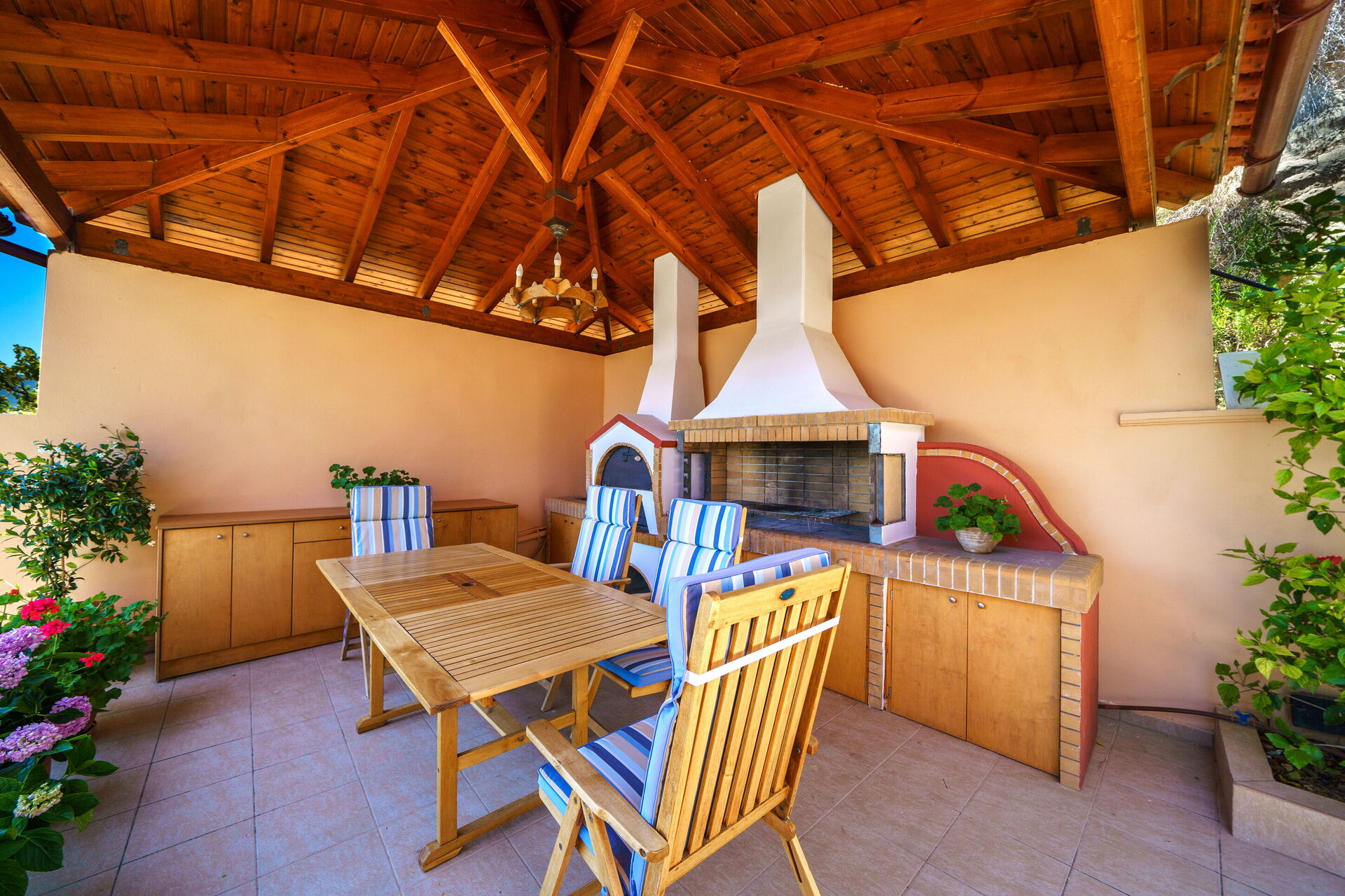 - gazebo couvert et équipé avec grand barbecue, four à bois