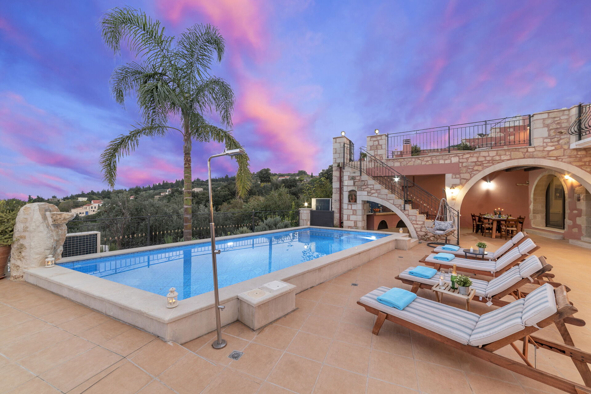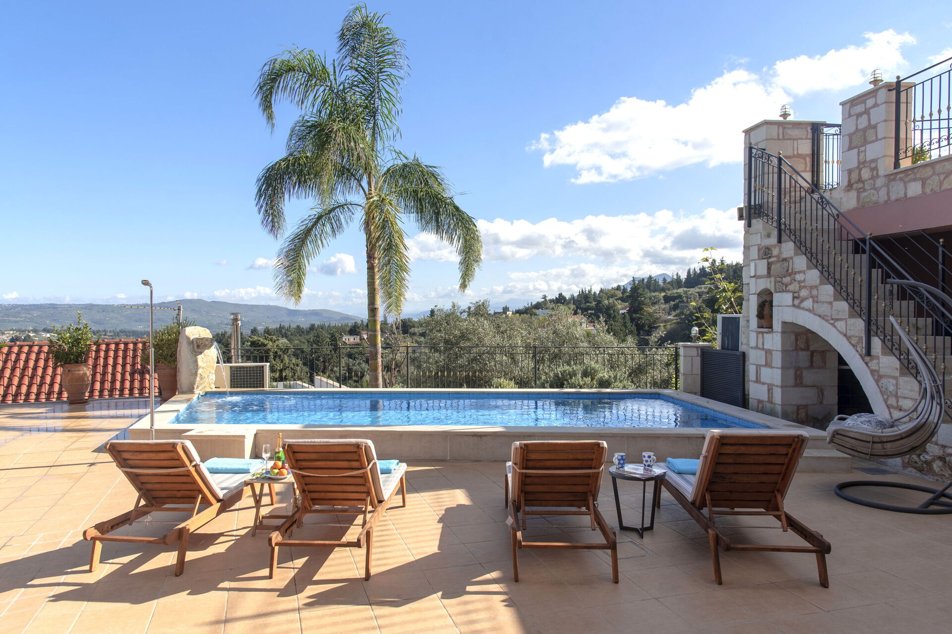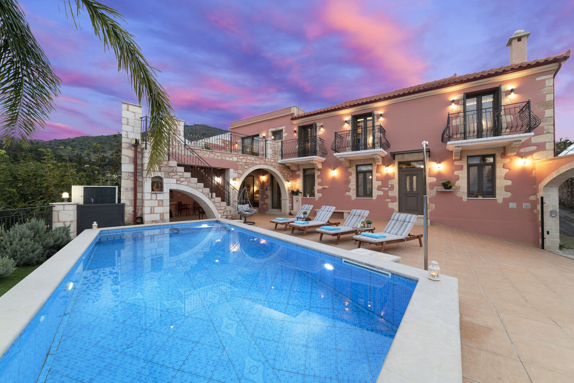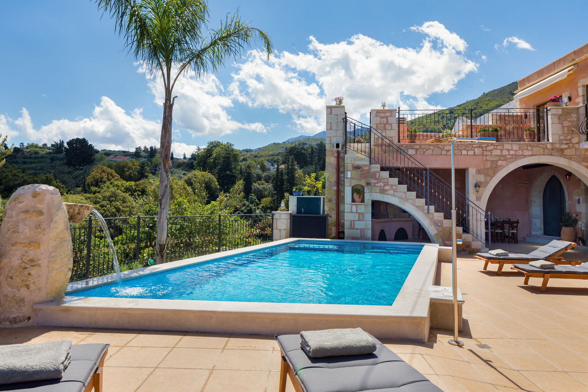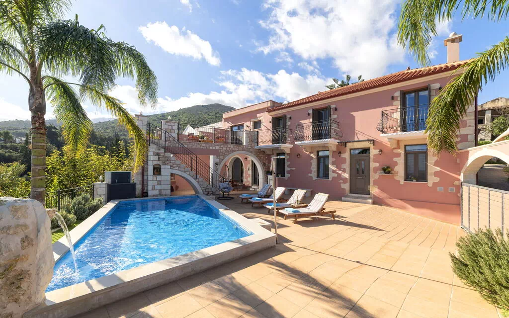 Villa Kois est une élégante villa avec piscine privée à louer pour des vacances en Crète. Elle est située dans le pittoresque village de Tzitzifes, dans la région de La Canée, à Apokoronas.