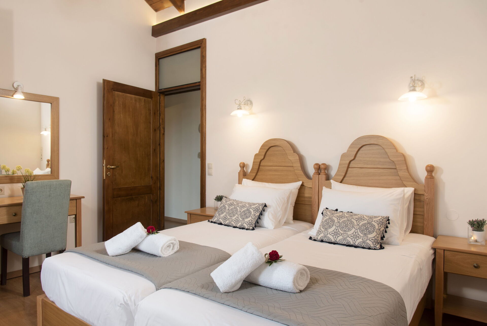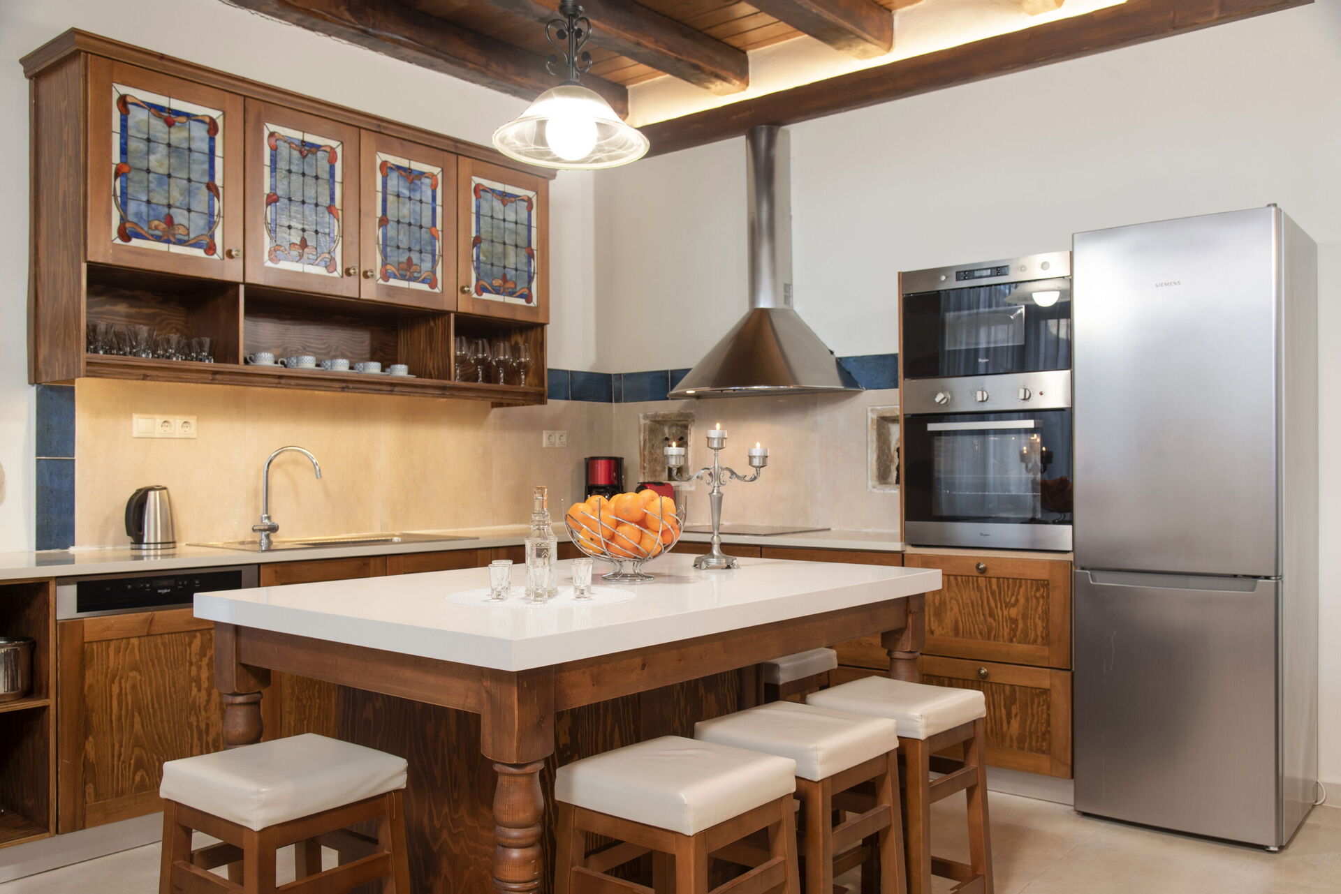 Cette propriété a été récemment rénovée et meublée avec goût; elle est confortable et dotée d'équipements modernes tout en respectant les caractéristiques architecturales d'origine et en utilisant abondamment la pierre locale et les éléments crétois traditionnels.