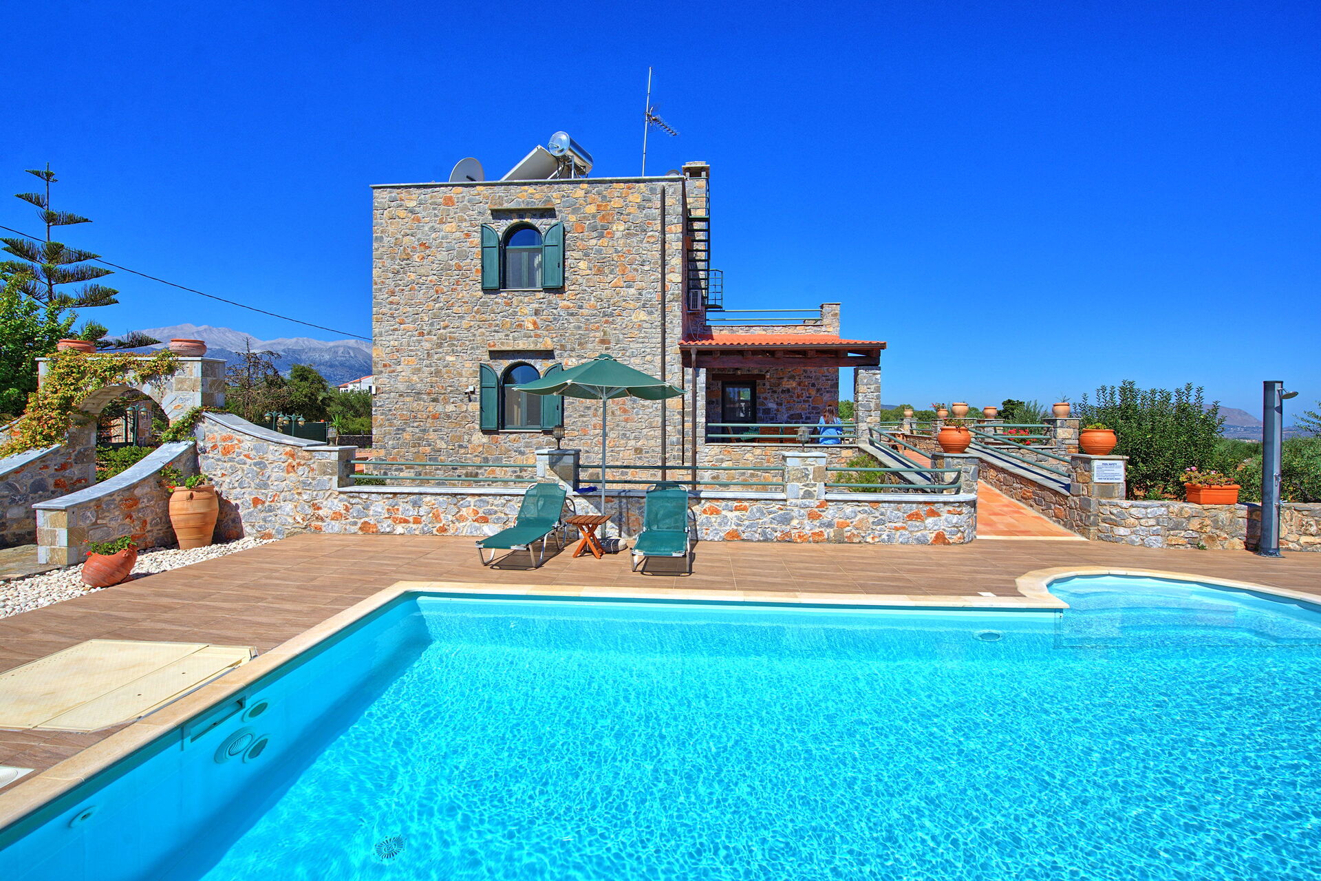 Si vous recherchez une maison à la campagne mais proche de la mer, vous ne serez pas déçu par la Villa Antina. Vous pourrez profiter de vos journées en Crète au bord de la piscine ou sur les nombreuses plages de Crète.