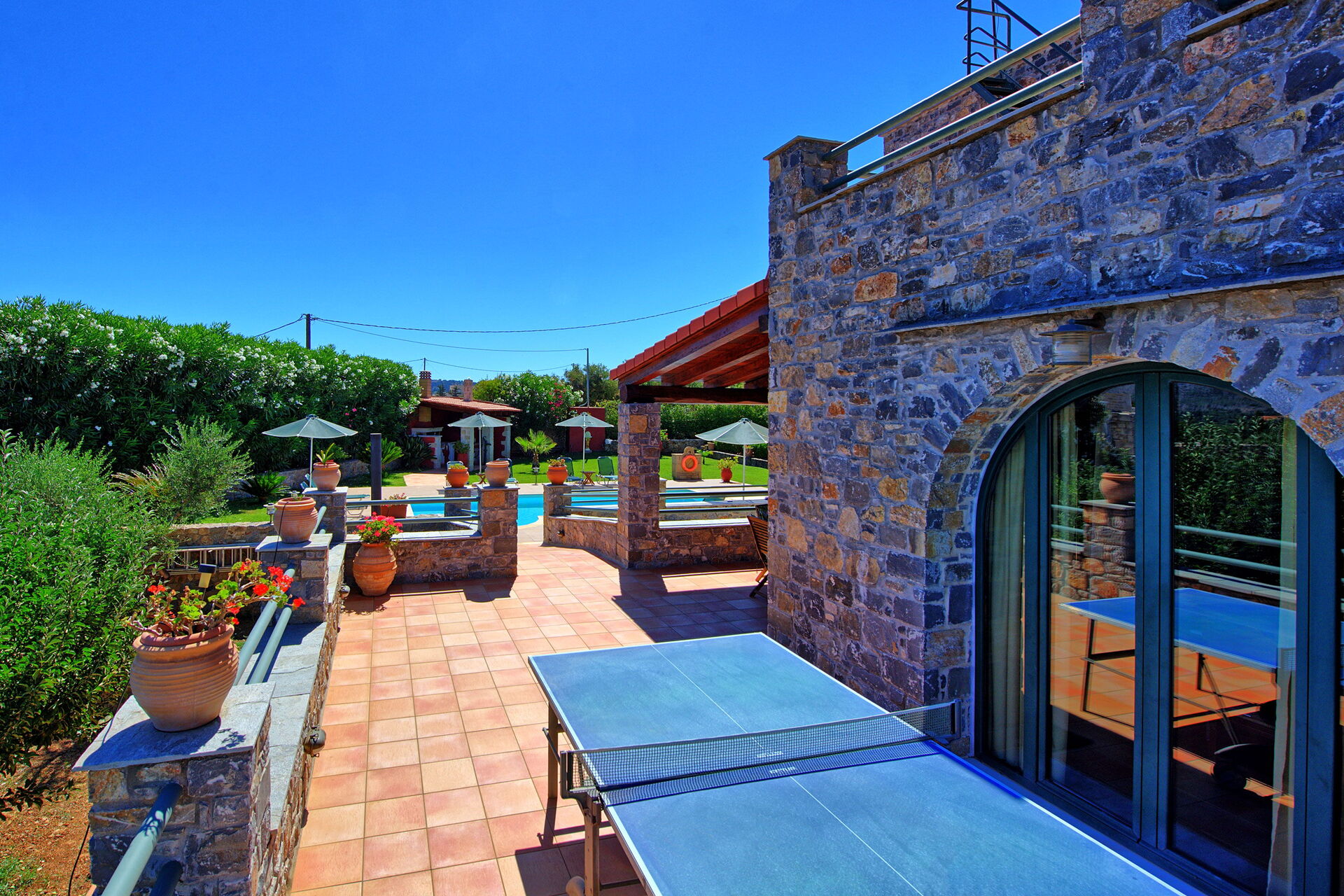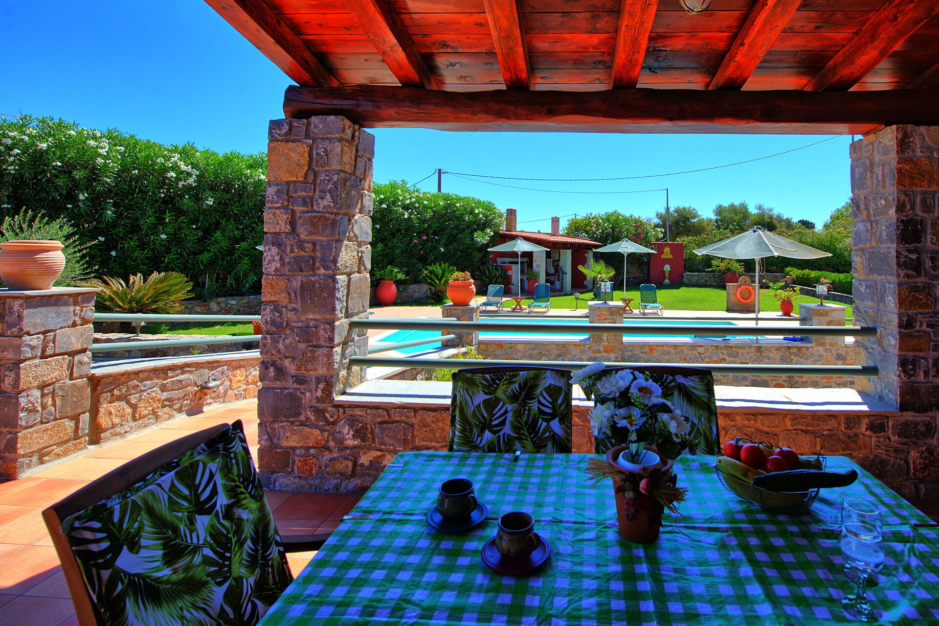 Tony and Debbie were excellent hosts and provided us with a very warm welcome. Their pride in Villa Antina is clear and rightly so. Everything was spotlessly clean and functioning as it should. We spent many happy hours lounging by the superb pool and enjoying the sound of the cicadas. Villa Antina is well equipped and has outstanding gardens. It is well located about five minutes by car from the village of Vamos, which has a supermarket and several restaurants and bars and it is also about a five minute walk to the excellent Pizzeria in Litsarda. There is also a kafenio in Litsarda. We had a great time at Villa Antina and if you are looking to stay in this area we would wholeheartedly recommend a stay here. Mike & Sue