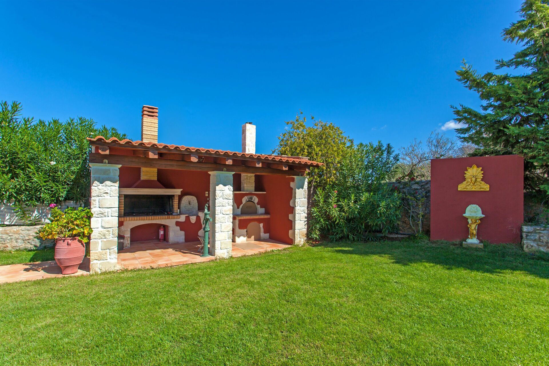 - pergola couverte équipée d'un grand barbecue à bois, d'un four à bois, d'un réfrigérateur et d'un évier