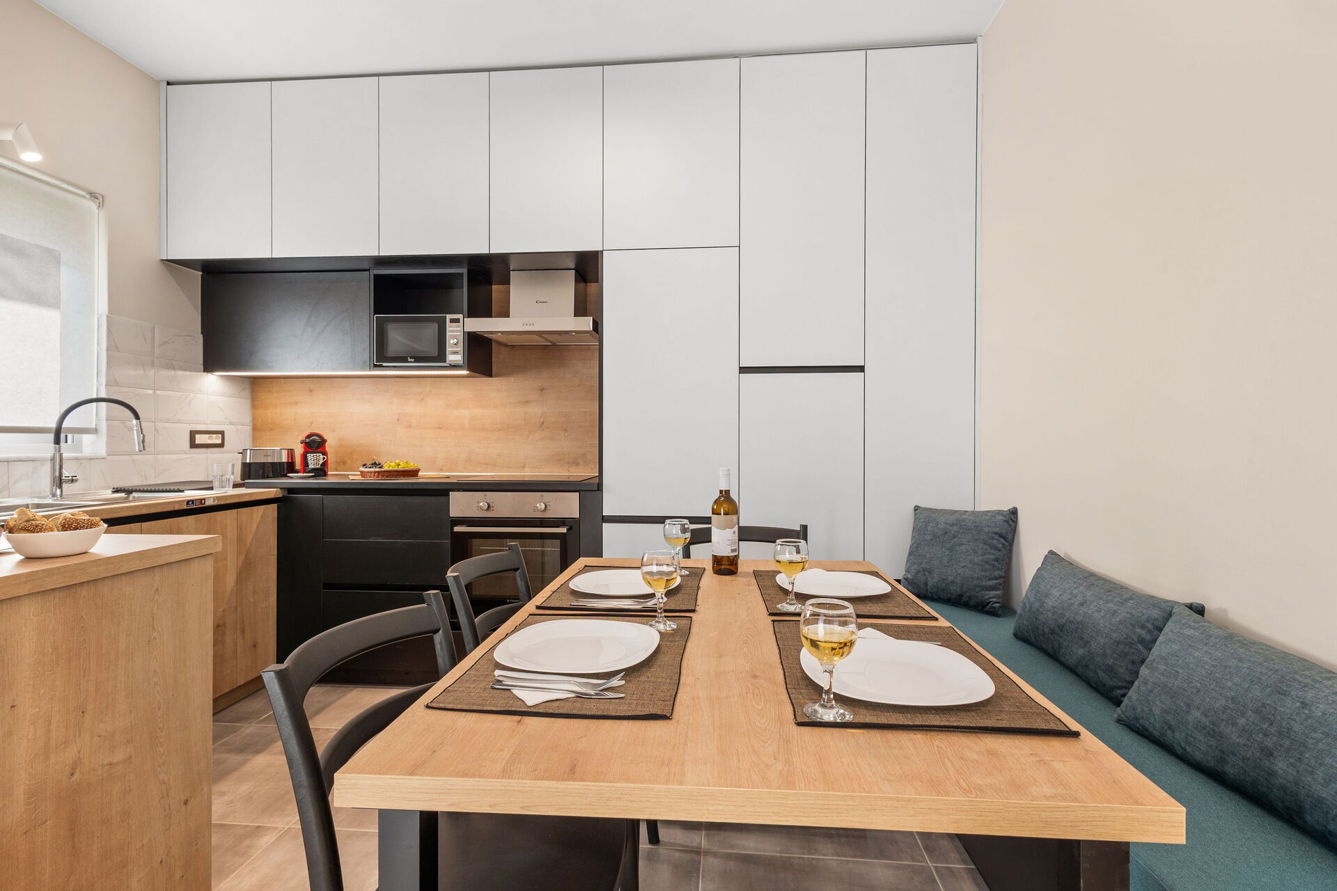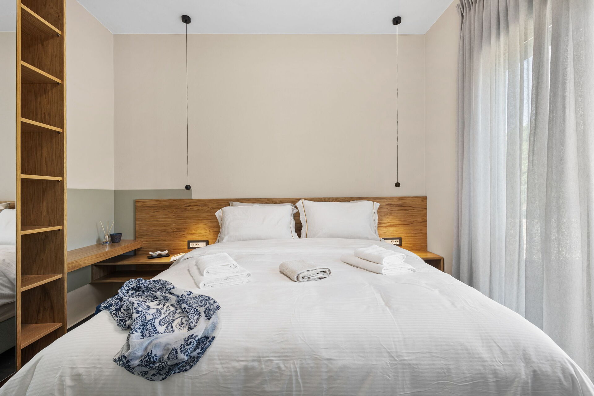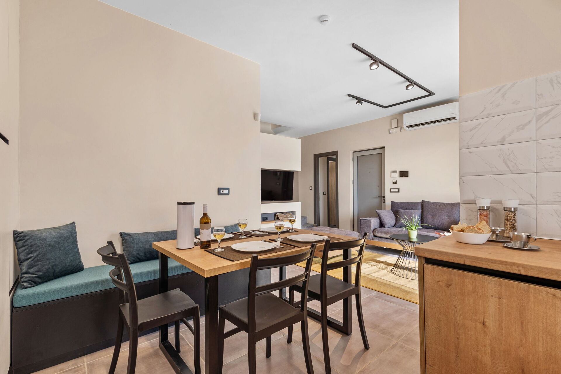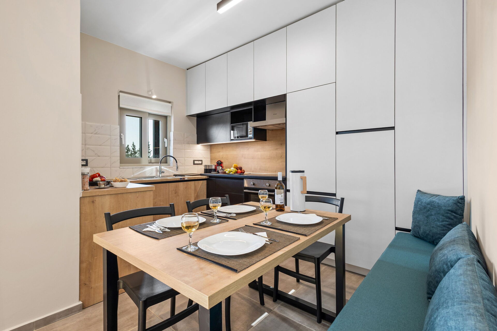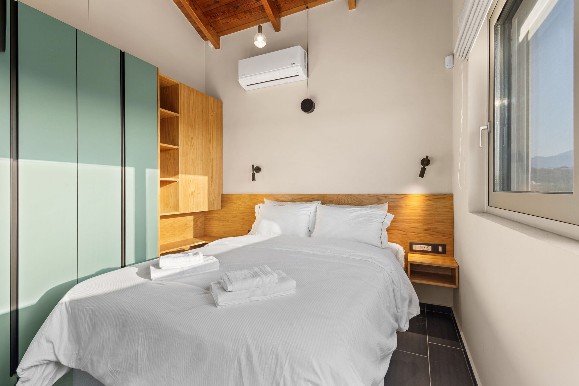 La villa est très accueillante : le mobilier est de style moderne et l'ensemble de l'environnement est lumineux et confortable. Répartie sur deux étages, elle peut accueillir confortablement jusqu'à 6 personnes grâce à ses 3 chambres doubles.