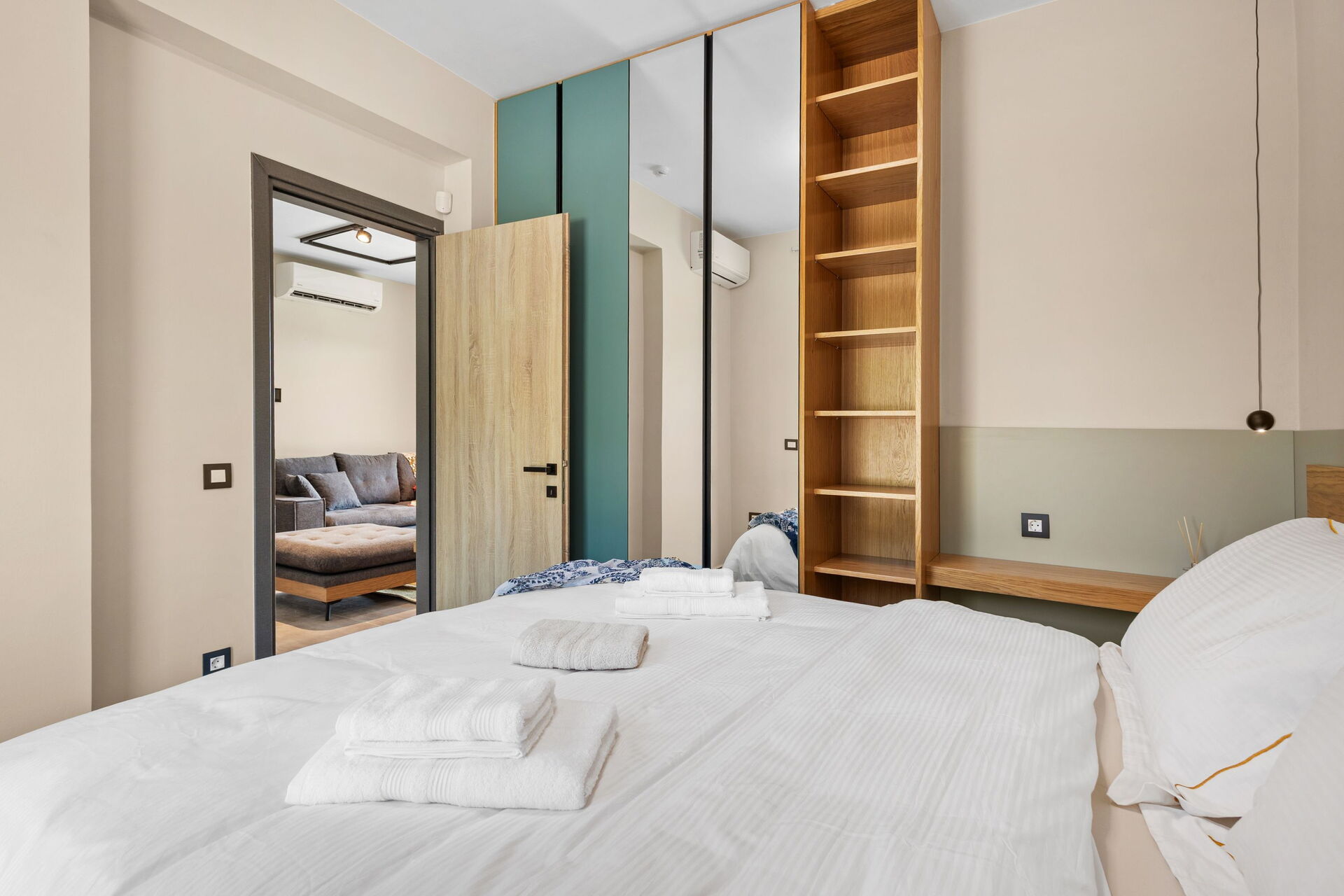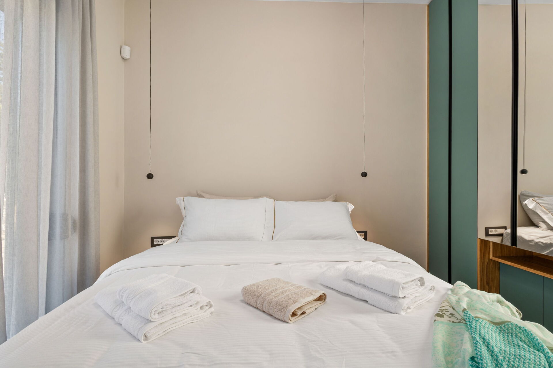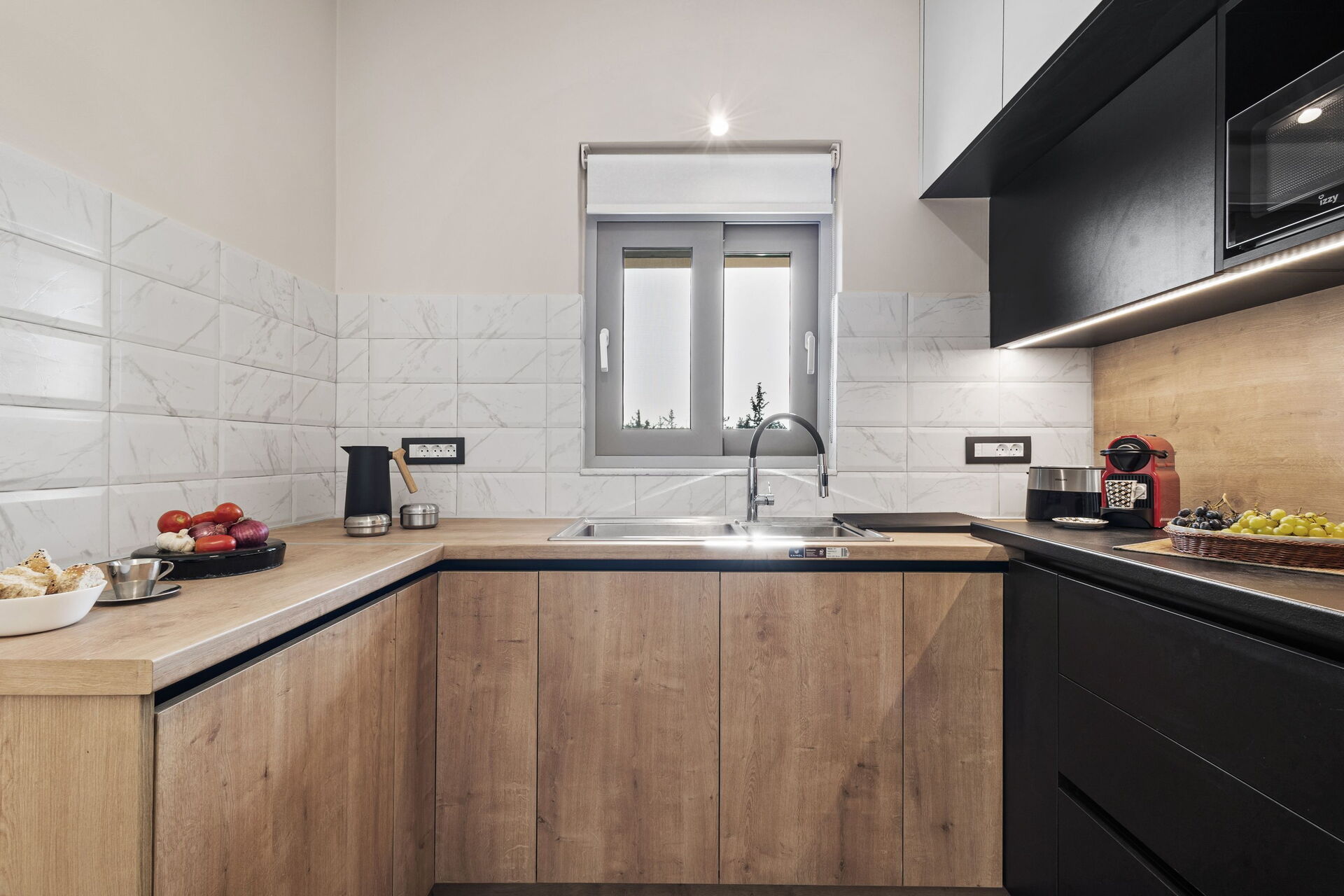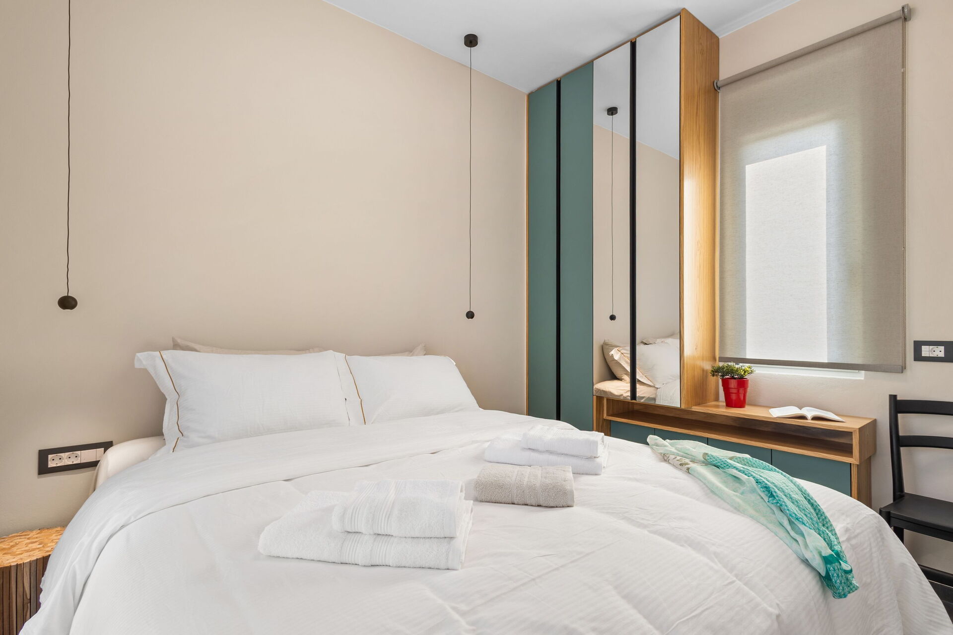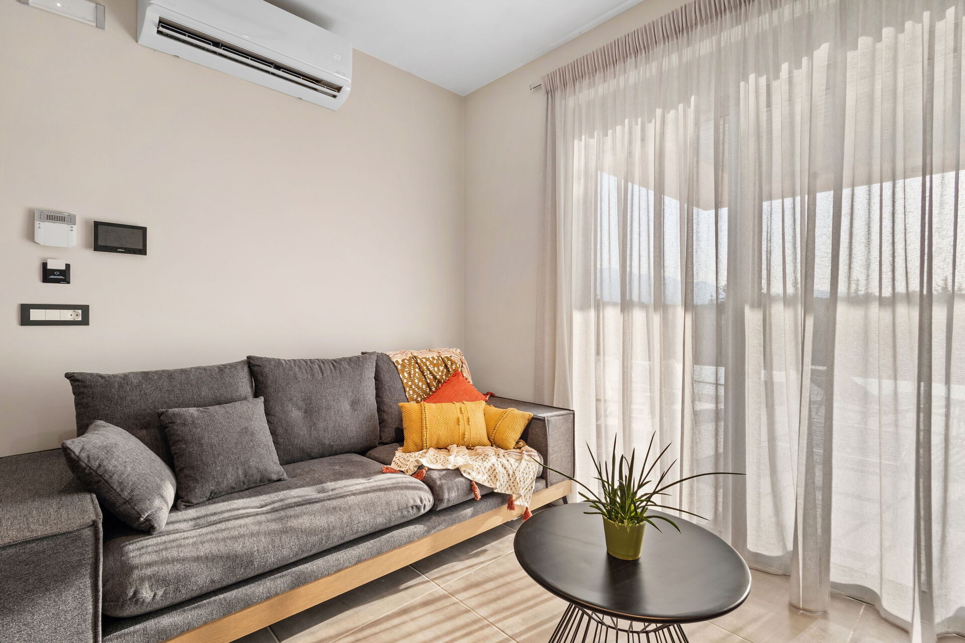 La villa est très accueillante : le mobilier est de style moderne et l'ensemble de l'environnement est lumineux et confortable. Répartie sur deux étages, elle peut accueillir confortablement jusqu'à 6 personnes grâce à ses 3 chambres doubles.