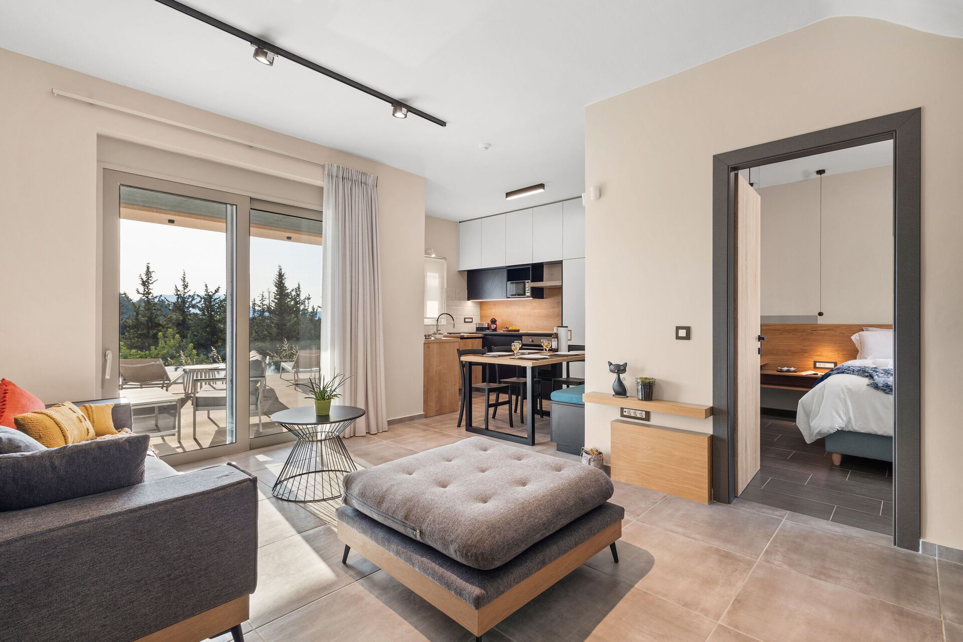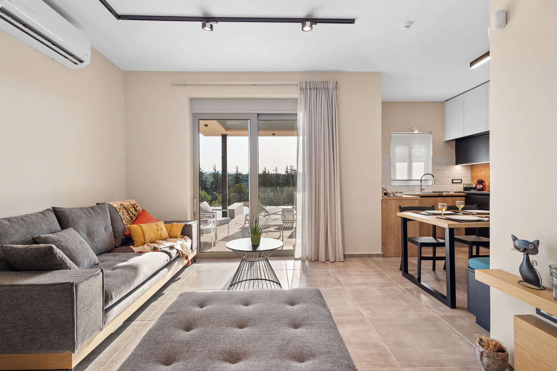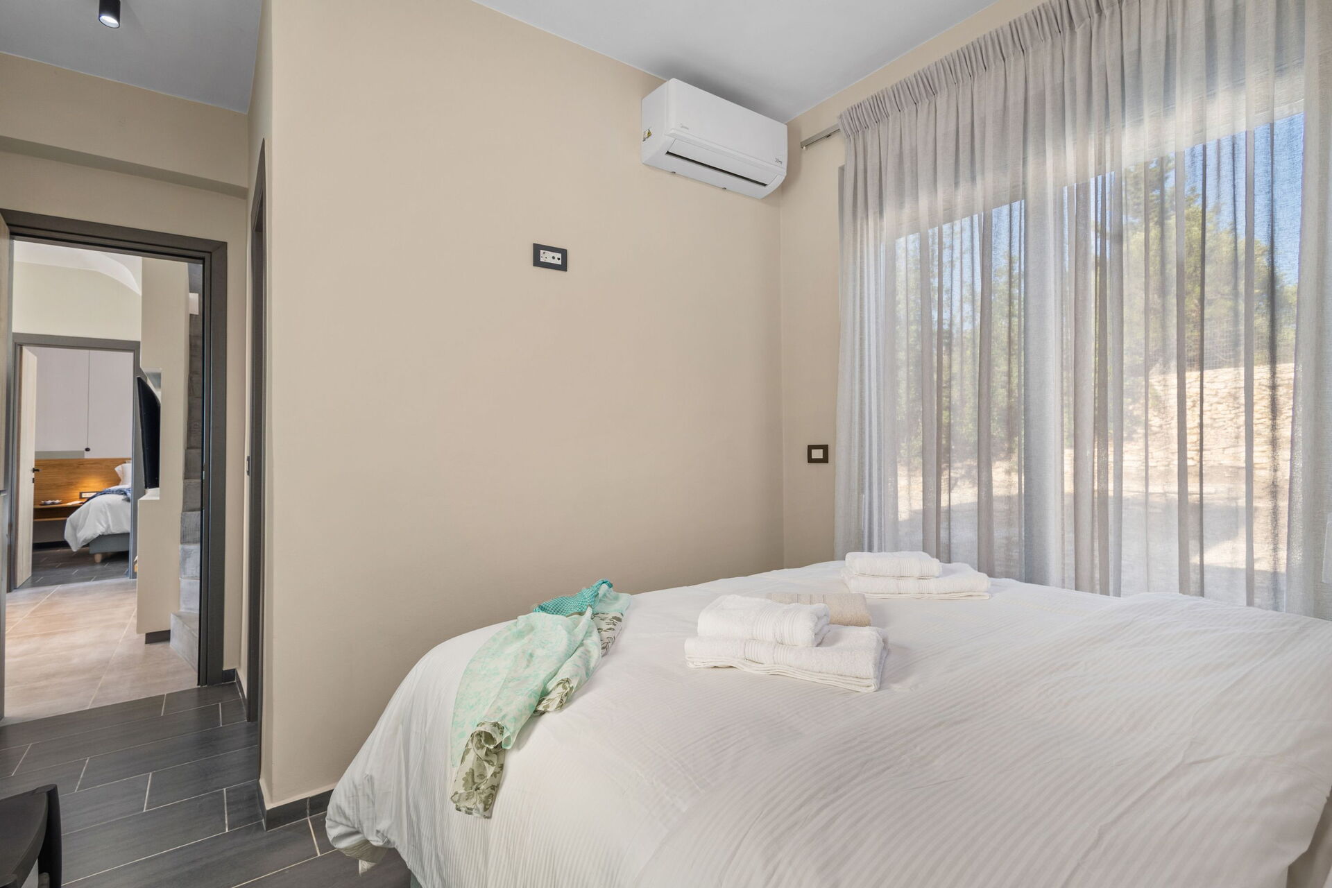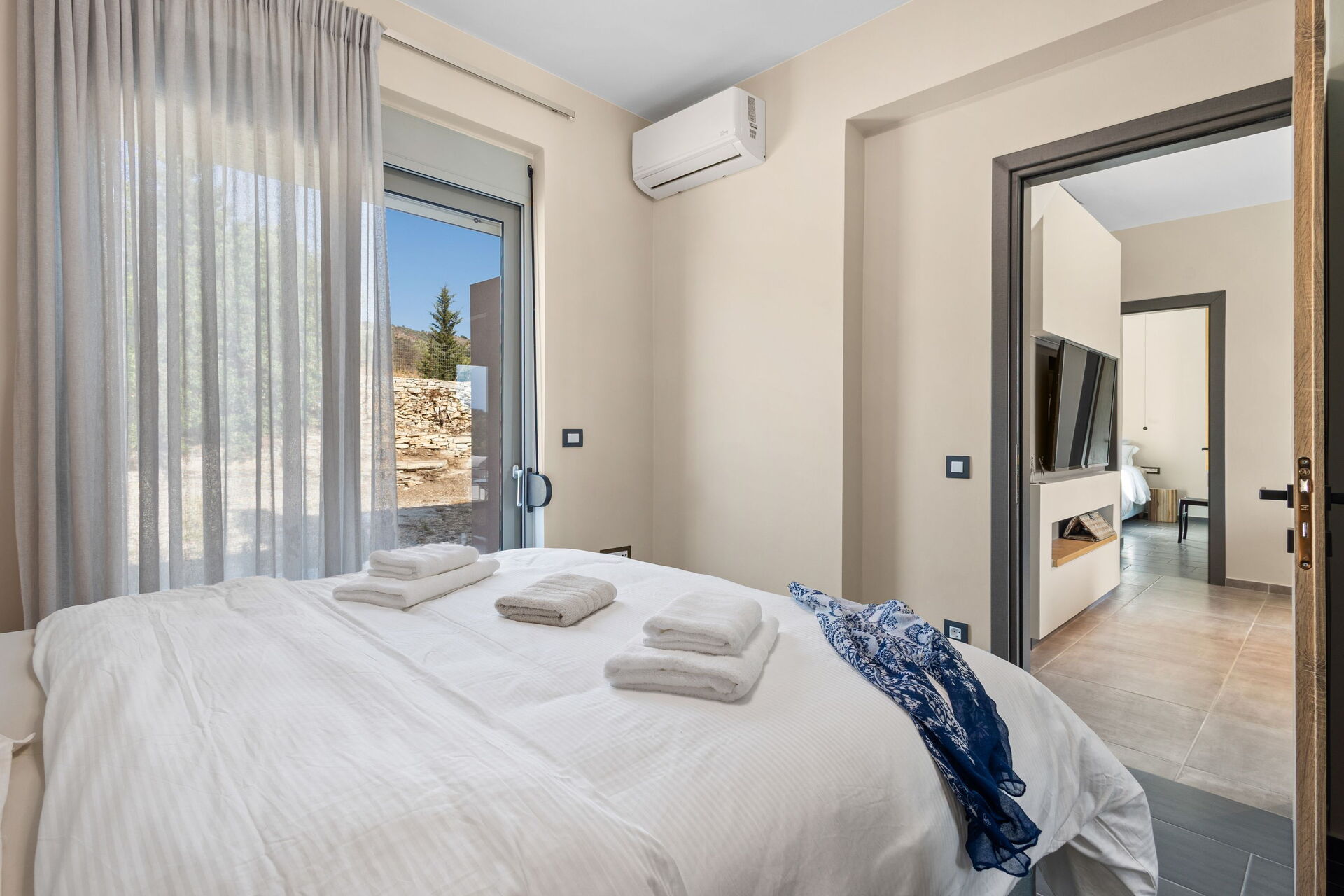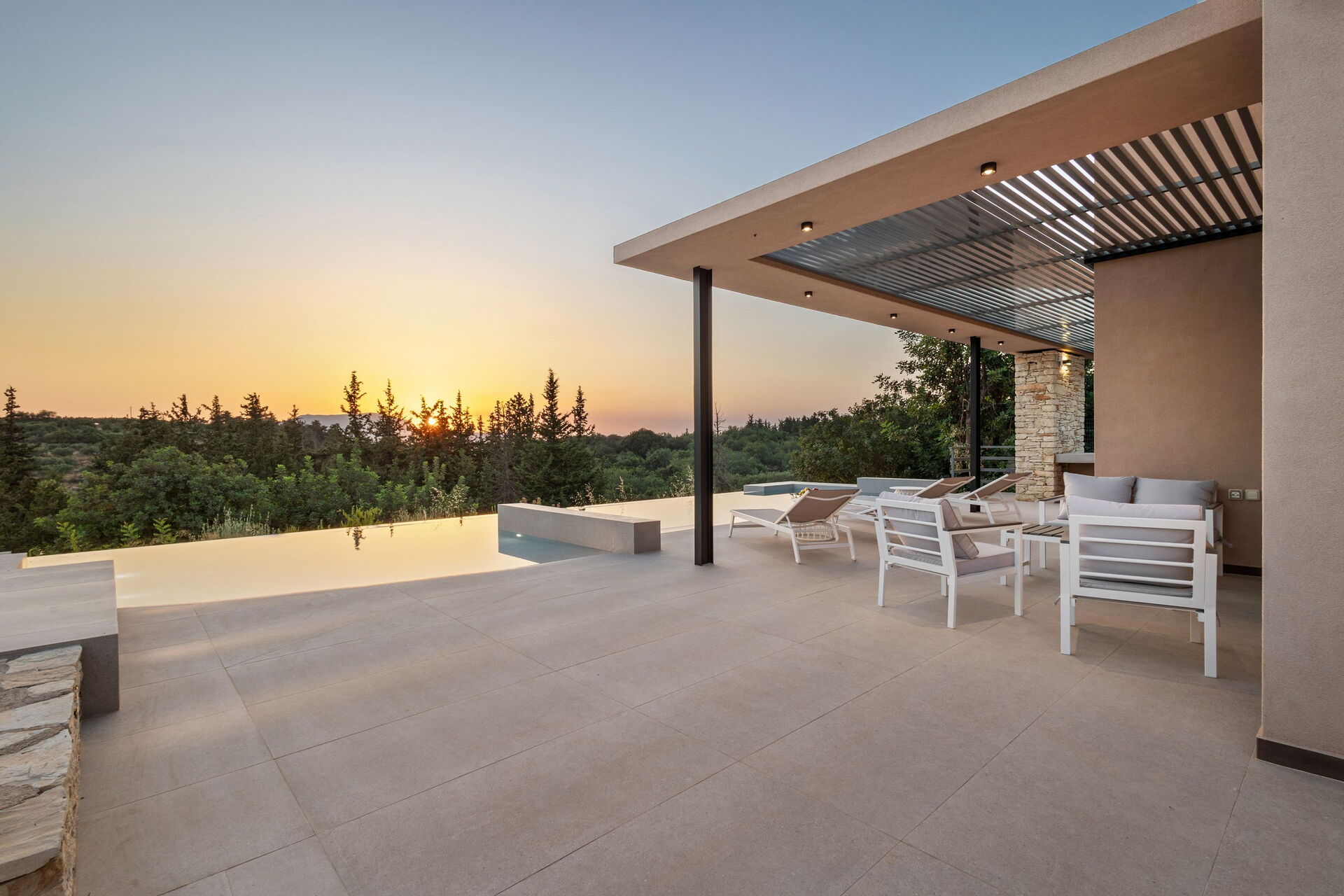À l'extérieur, elle offre un espace panoramique équipé d'un barbecue et d'une table pour manger en plein air, ainsi qu'une magnifique piscine privée pour se rafraîchir lors des journées ensoleillées de l'été crétois. Une vue panoramique splendide sur la campagne environnante agrémentera vos journées : oliveraies, cyprès et arbustes du maquis méditerranéen seront le cadre de moments inoubliables sous le soleil de Grèce.
