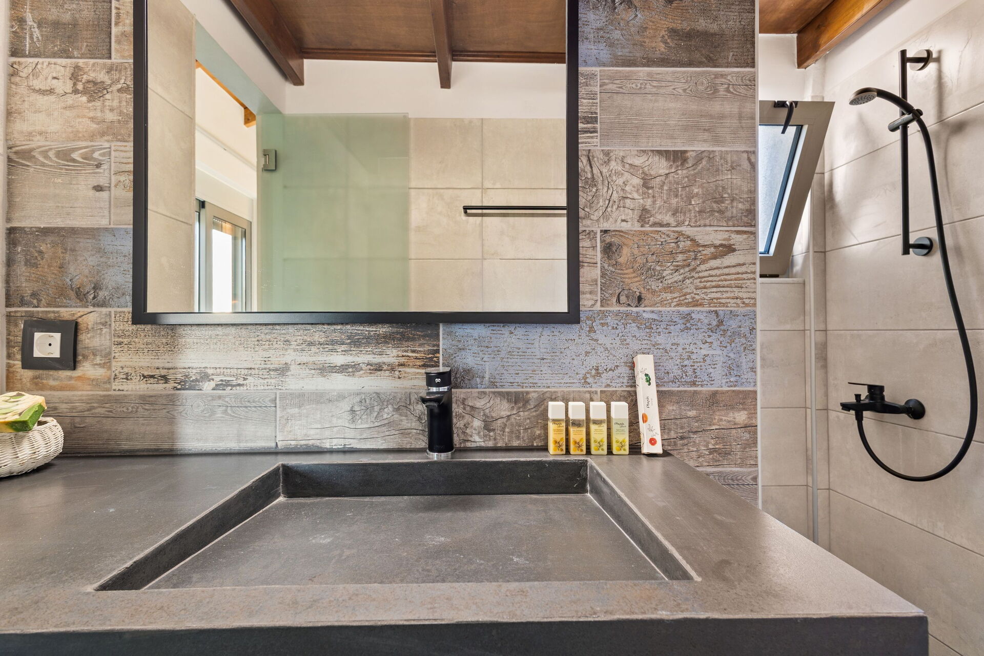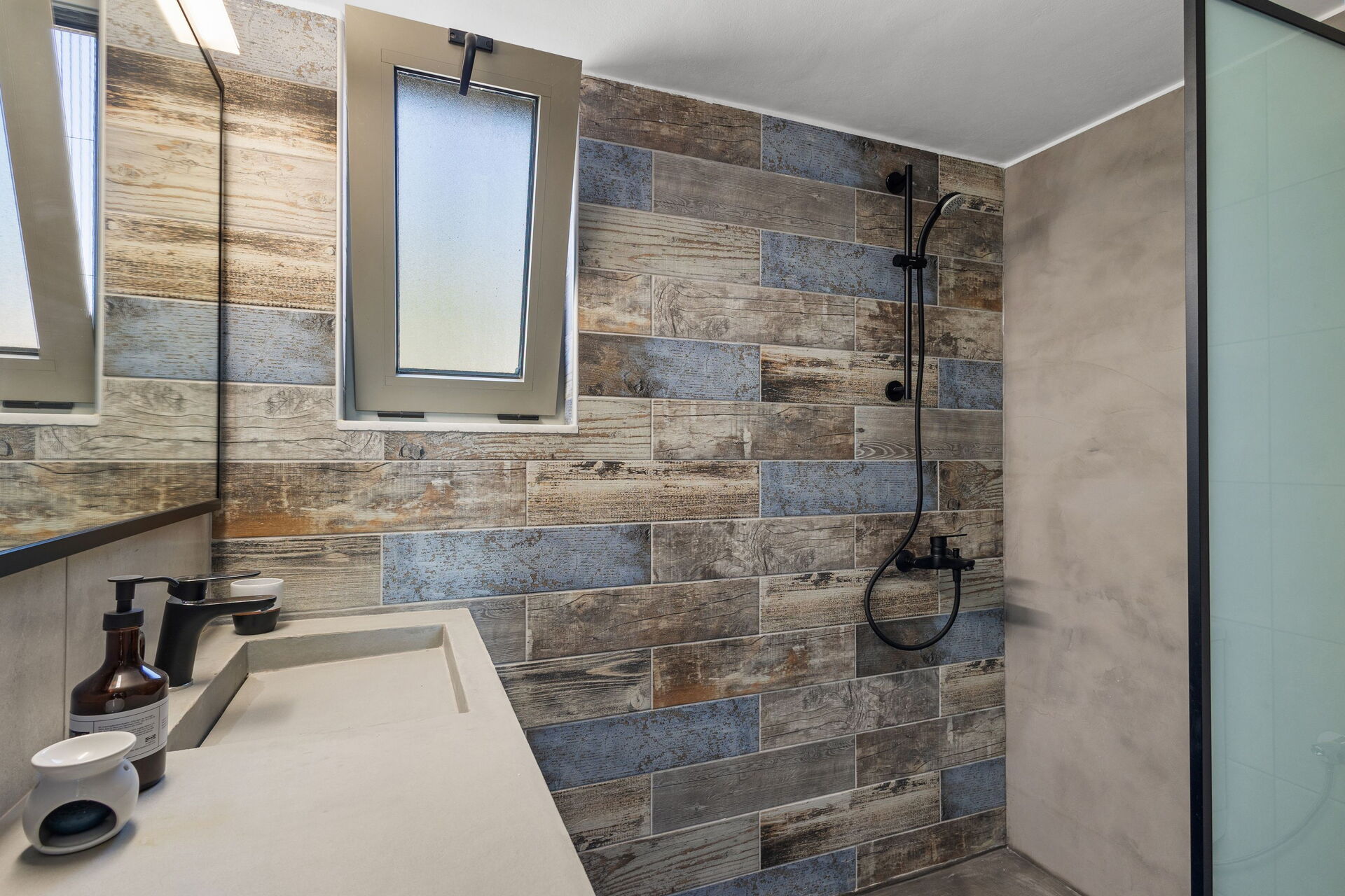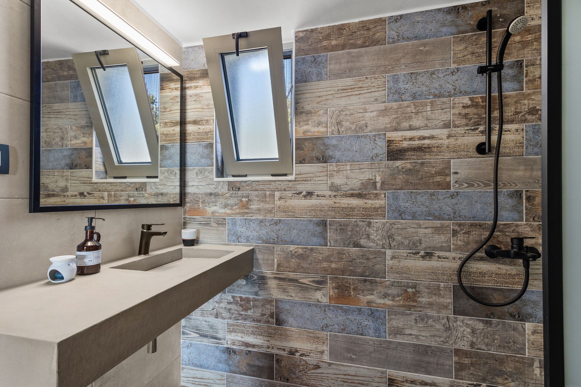 Premier étage : chambre double avec salle de bain privée avec douche, accès à la terrasse.